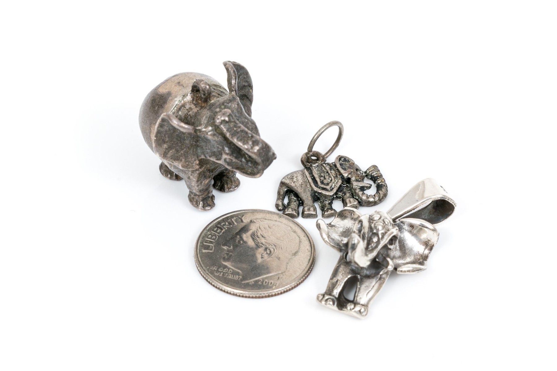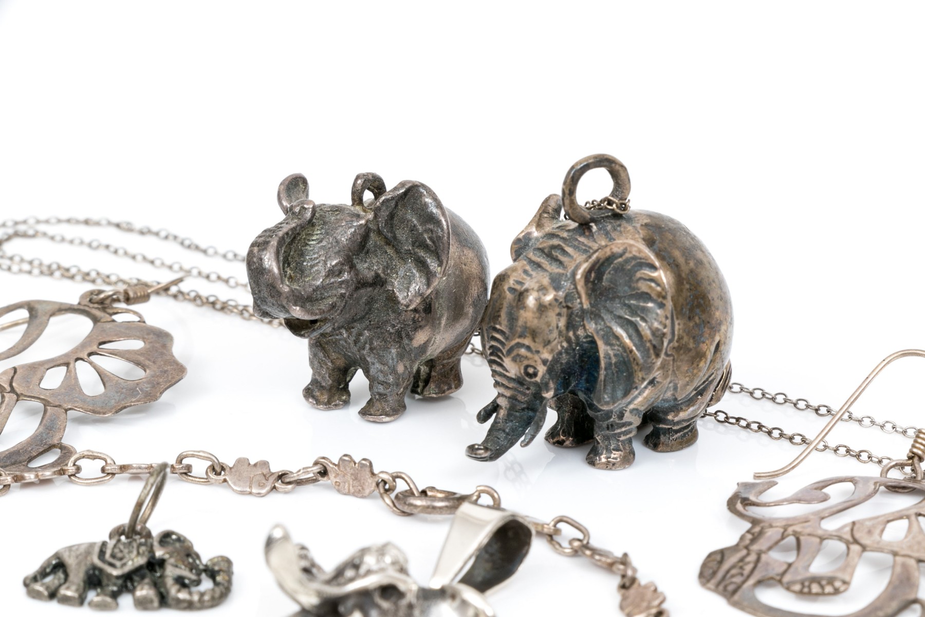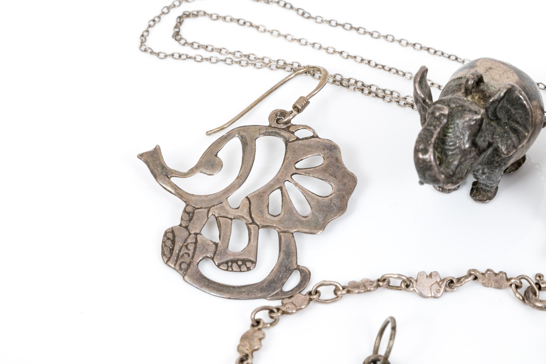 Sterling silver assorted lot of charming elephant motif jewelry pieces