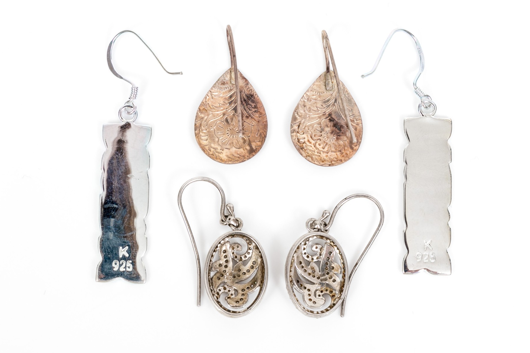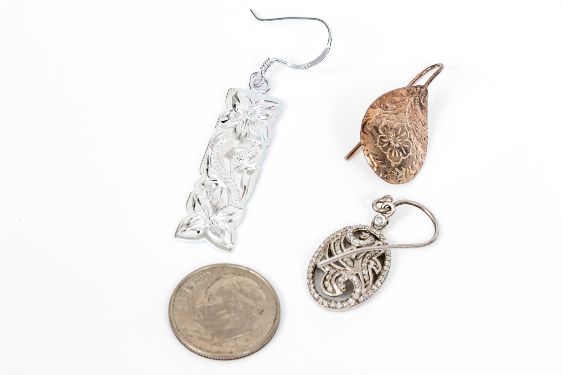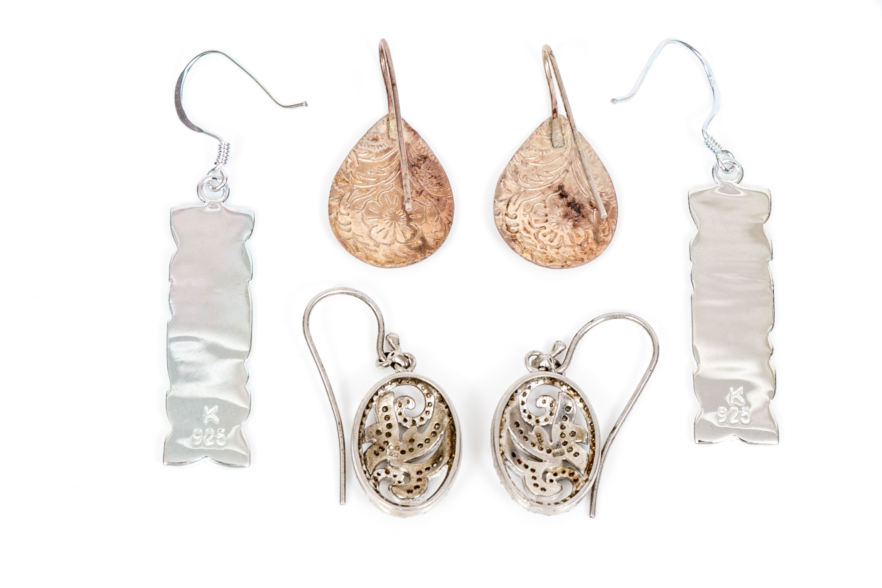 Sterling silver assorted lot of pretty chased floral and CZ motif earrings