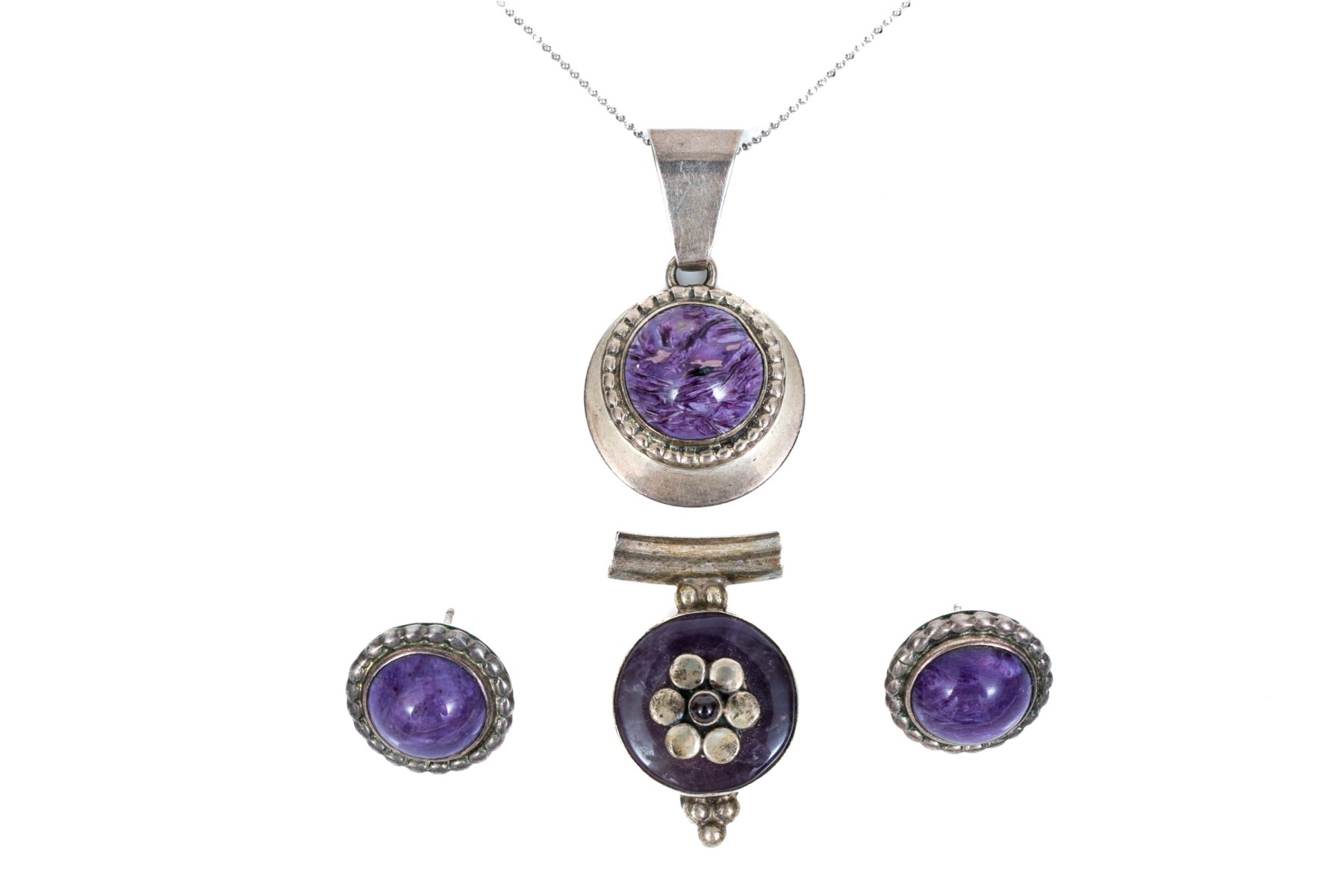 Sterling silver assorted lot of pretty purple charoite jewelry pieces