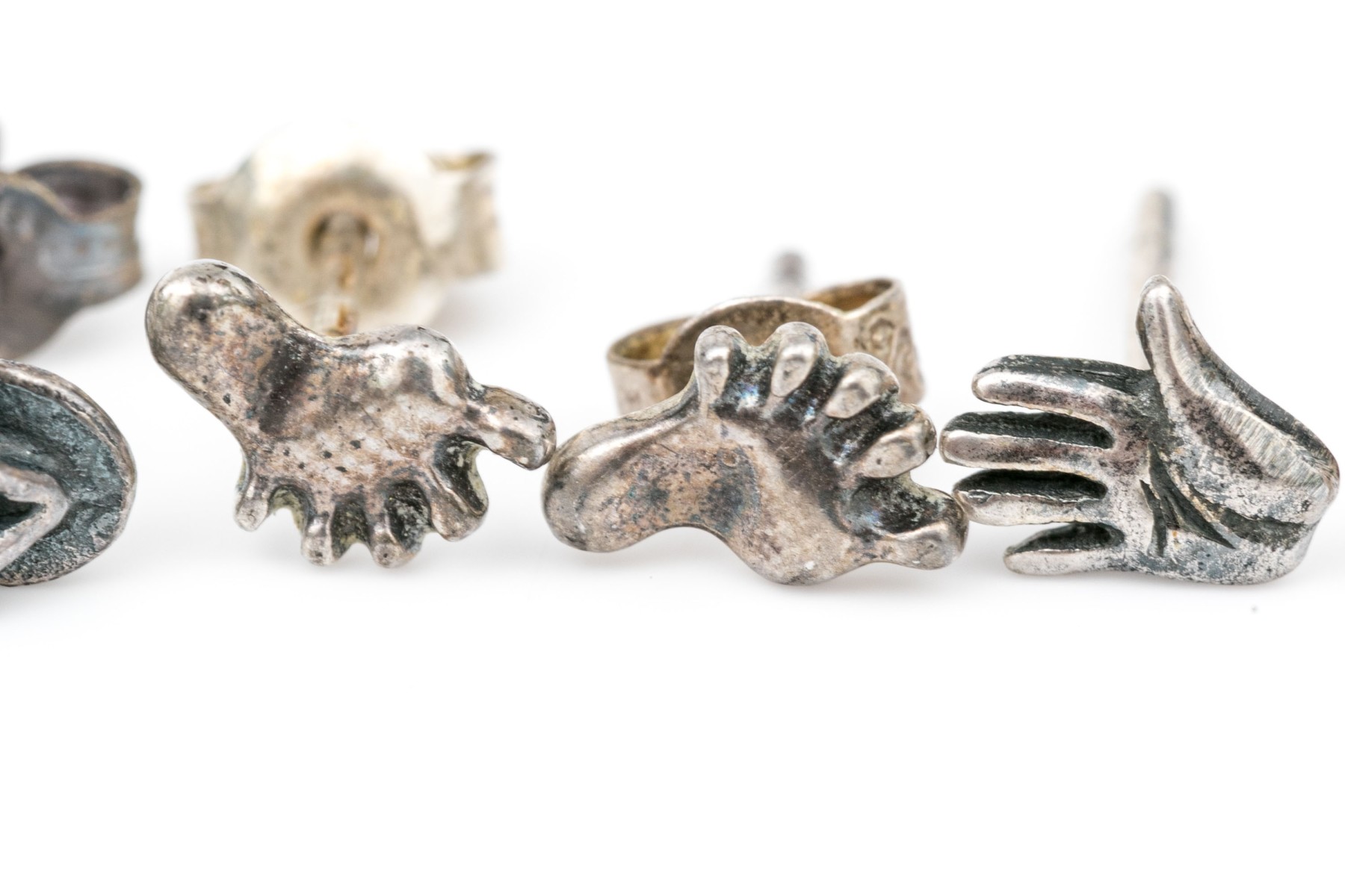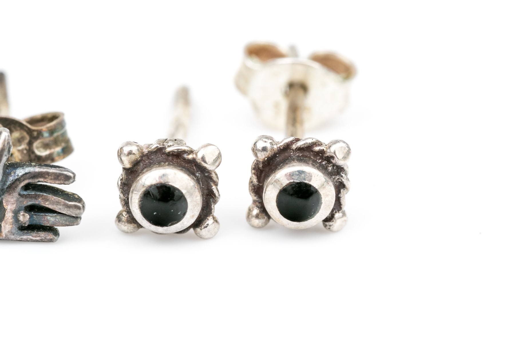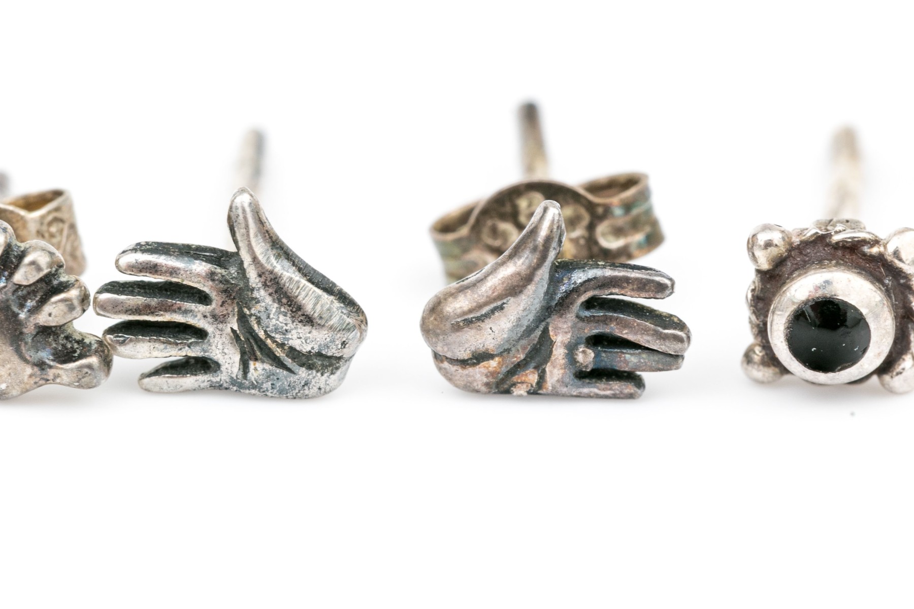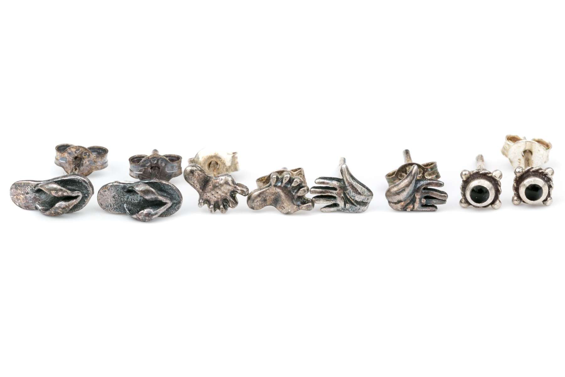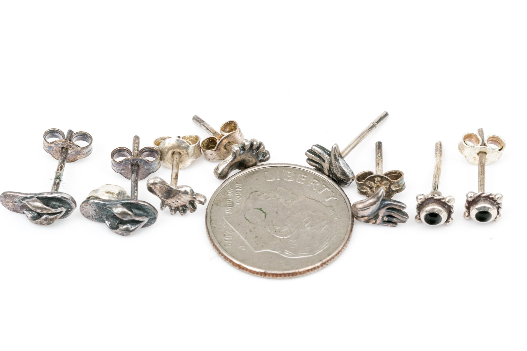 Sterling silver assortment of diminutive stud earrings, finished with posts and clutch style backs