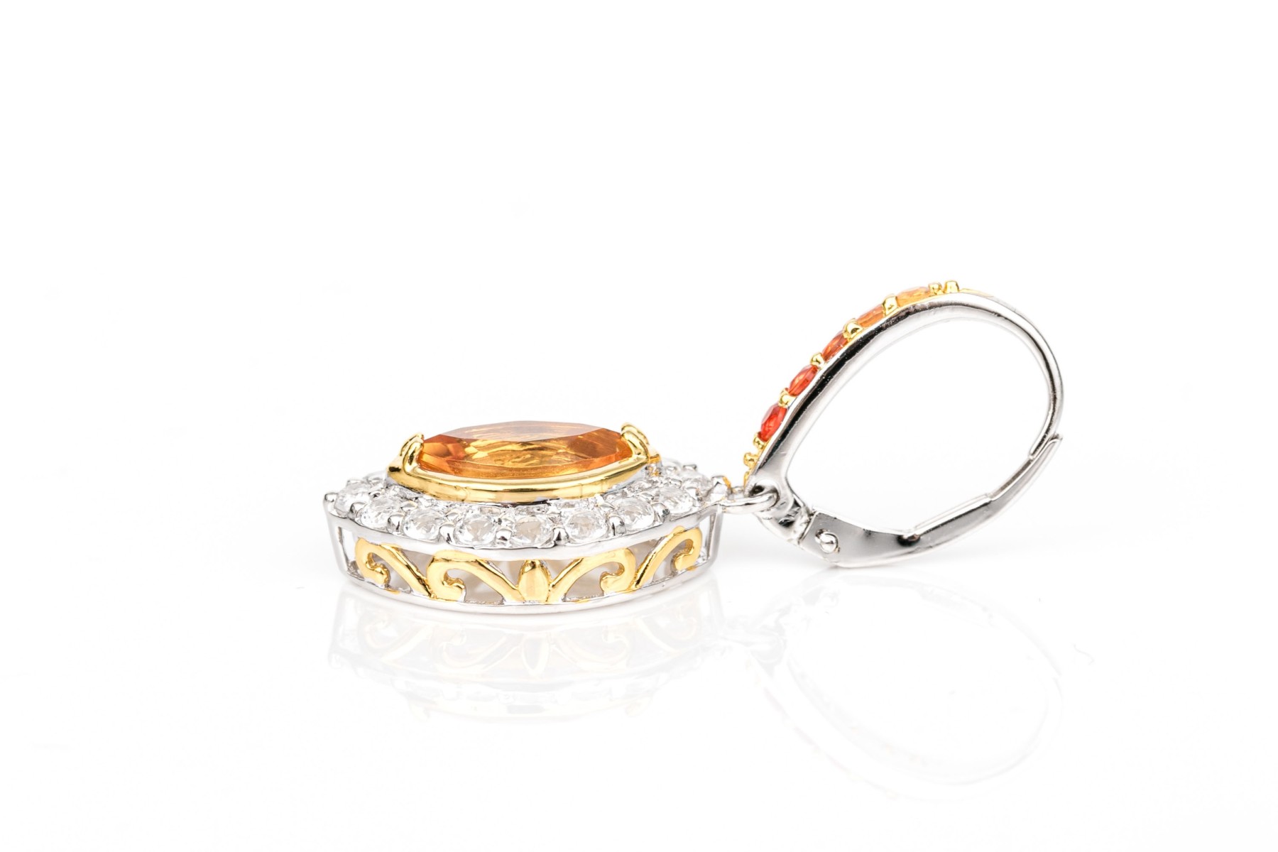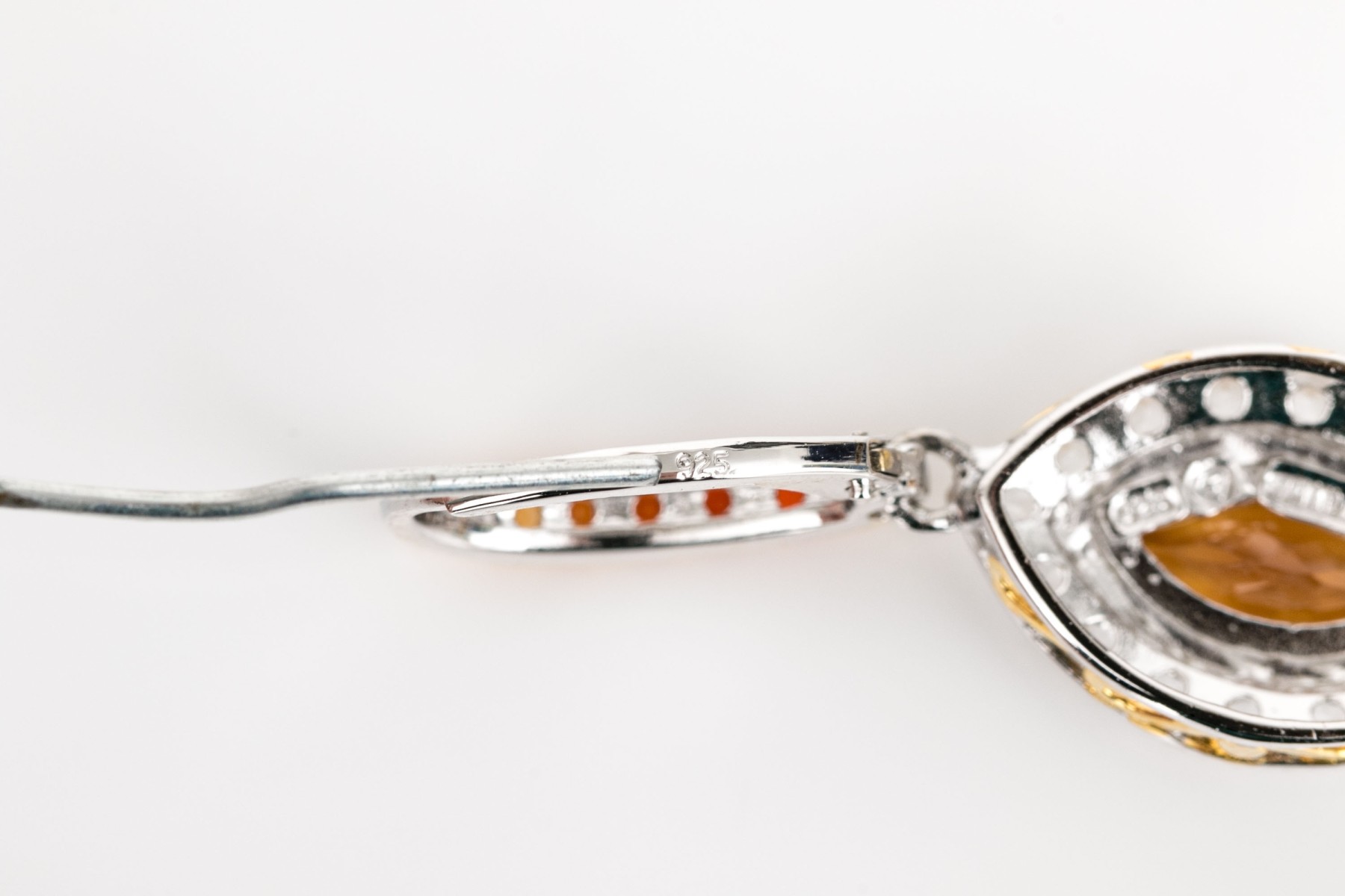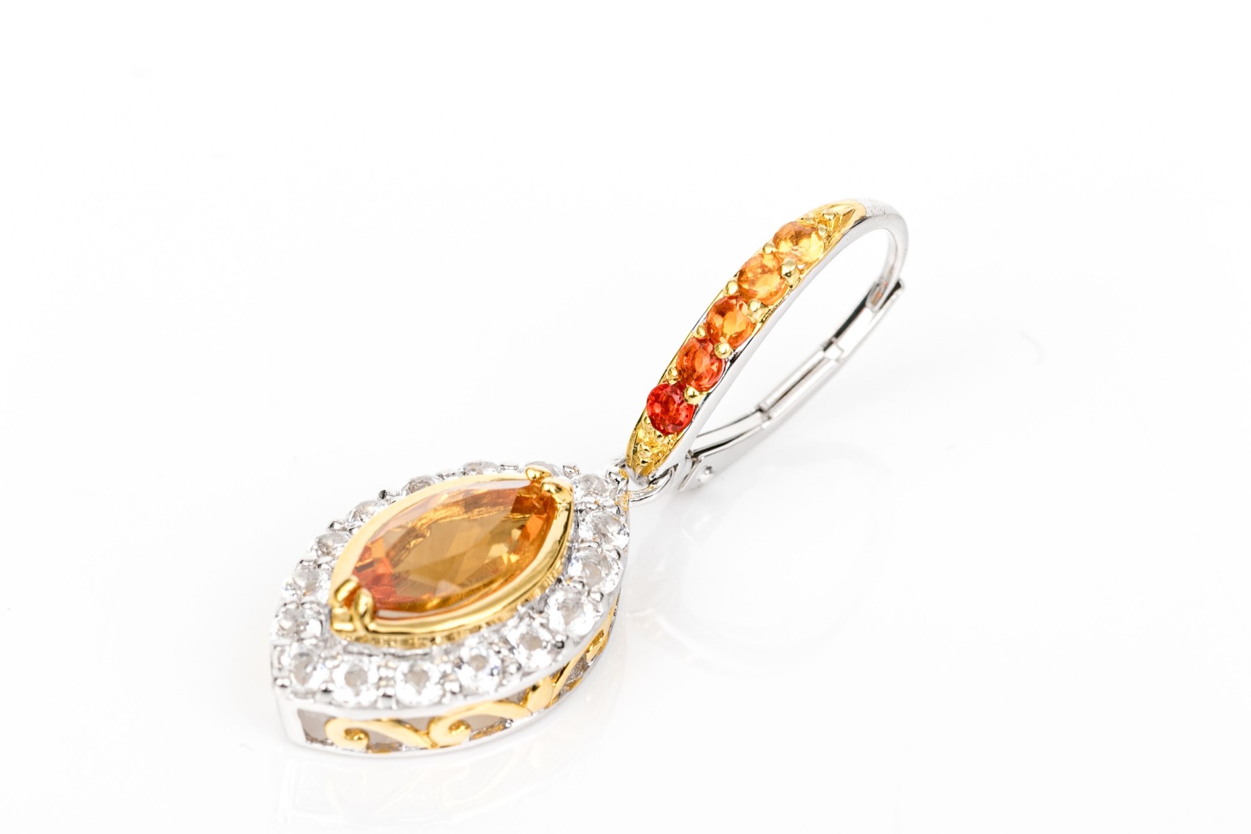 Sterling silver beautiful navette profile yellow and white CZ halo drop pendant earrings, finished with ombre cz set wires and lever style backs