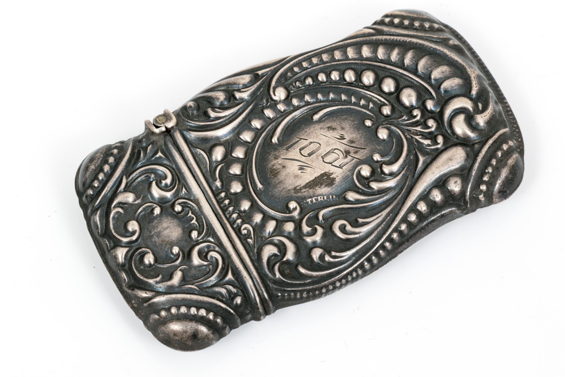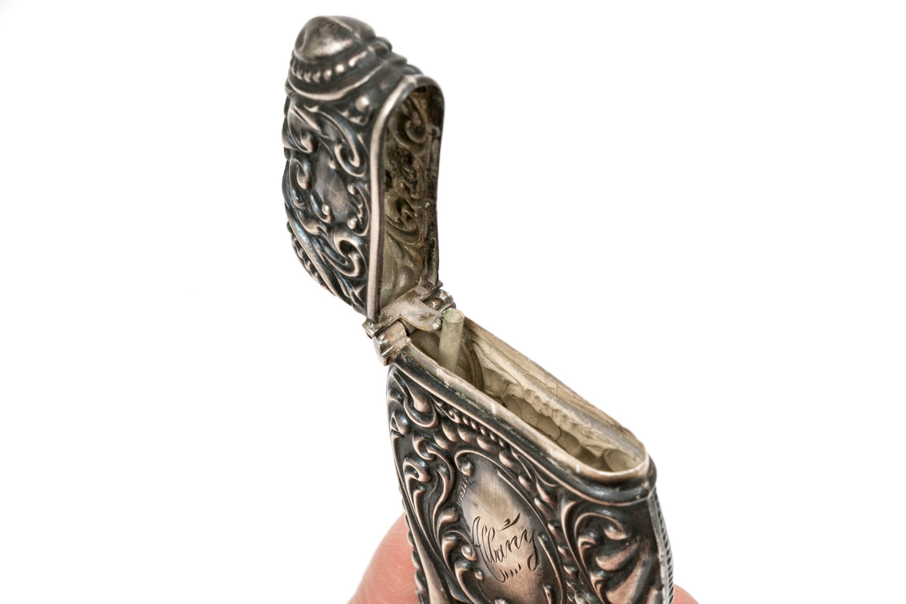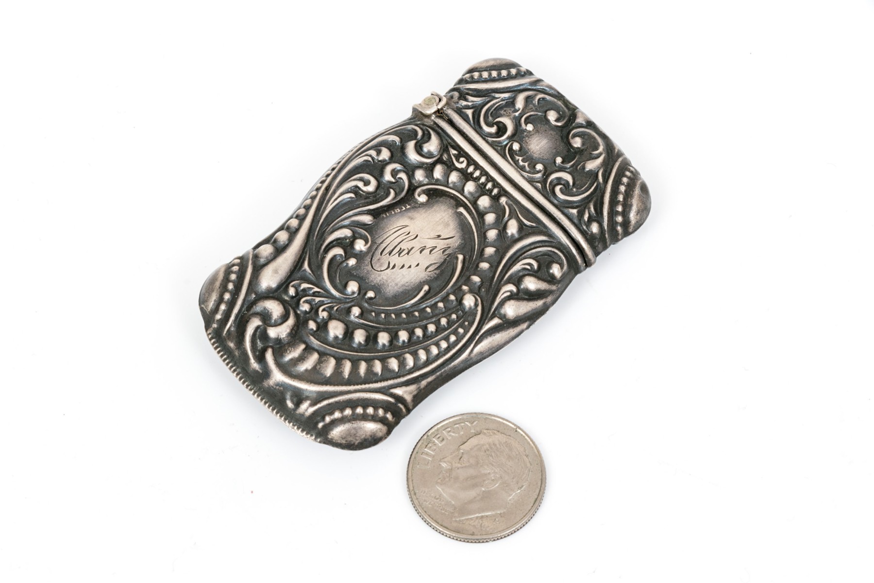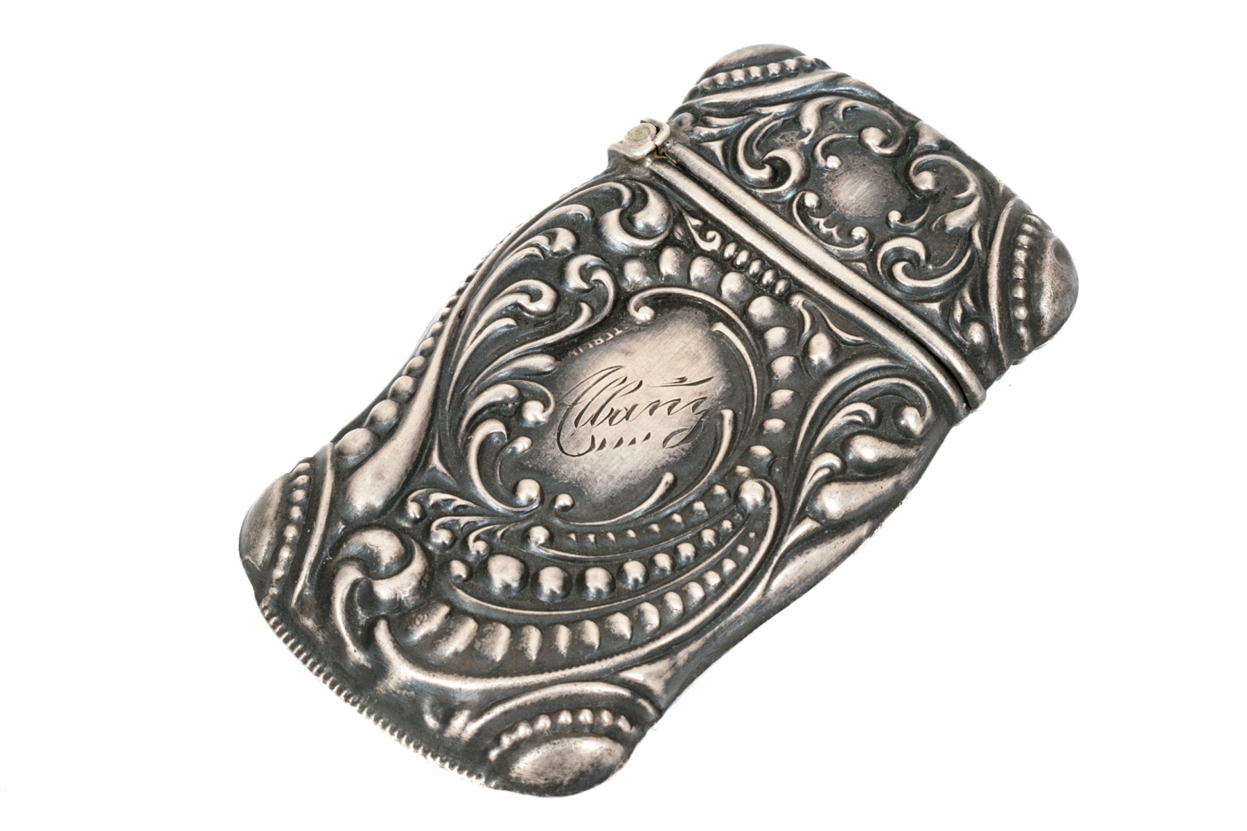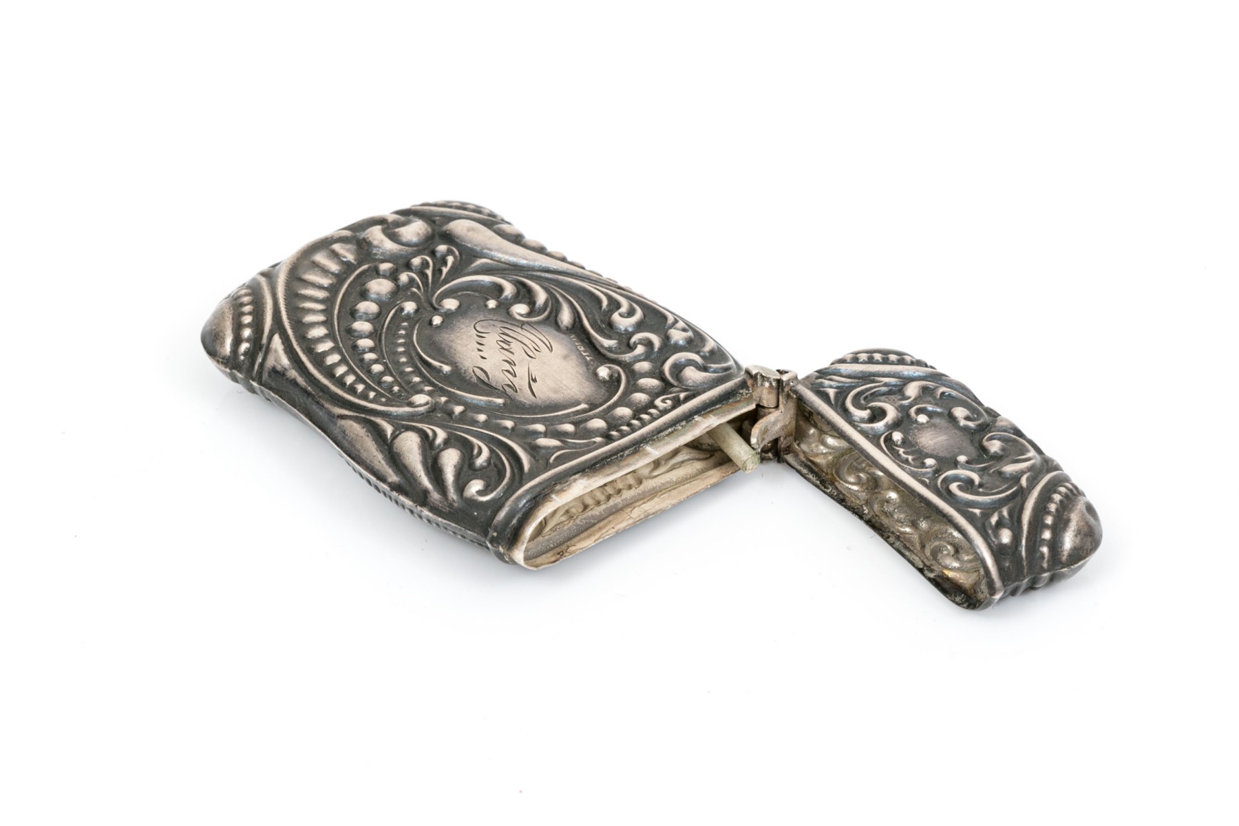Sterling silver beautiful repousse antique match safe