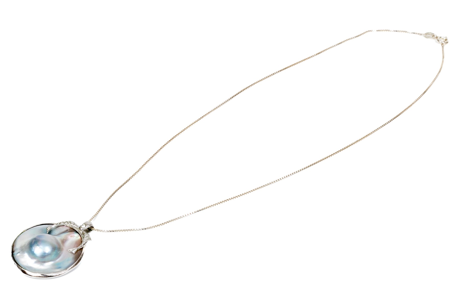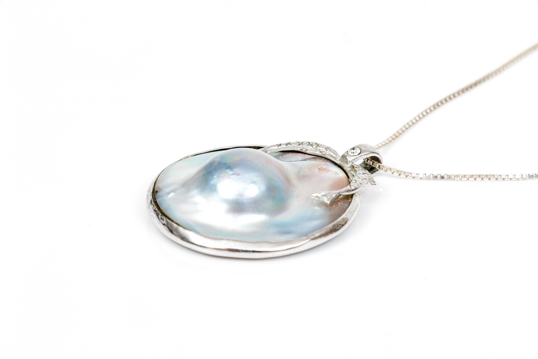 Sterling silver box chain necklace with striking cultured blister pearl pendant