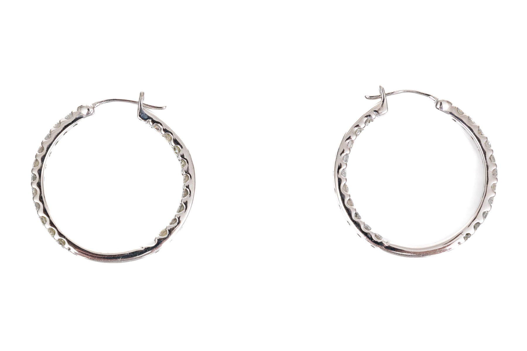 Sterling silver classic round hoop earrings, CZ set, finished with hinged posts and "U" hook closure