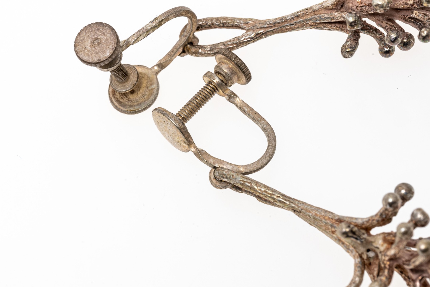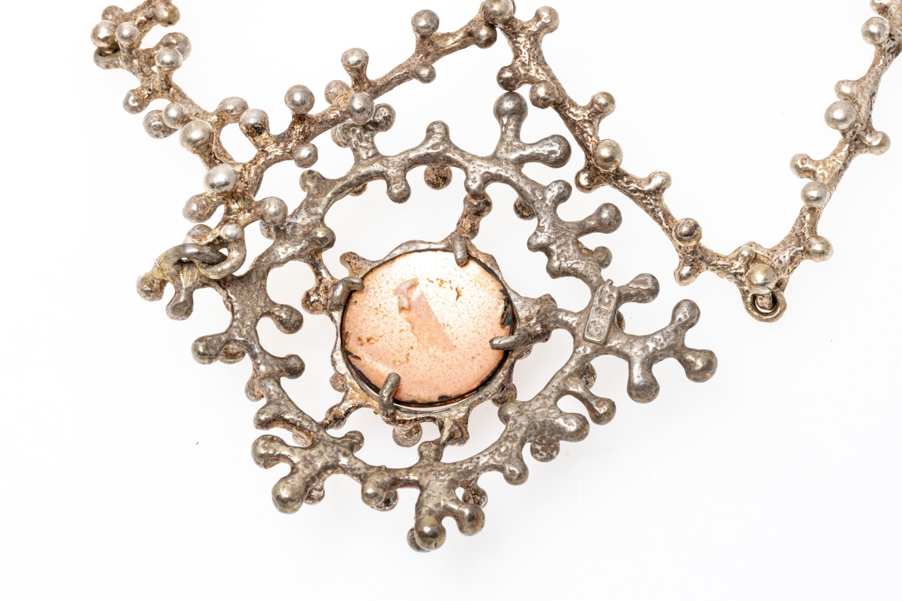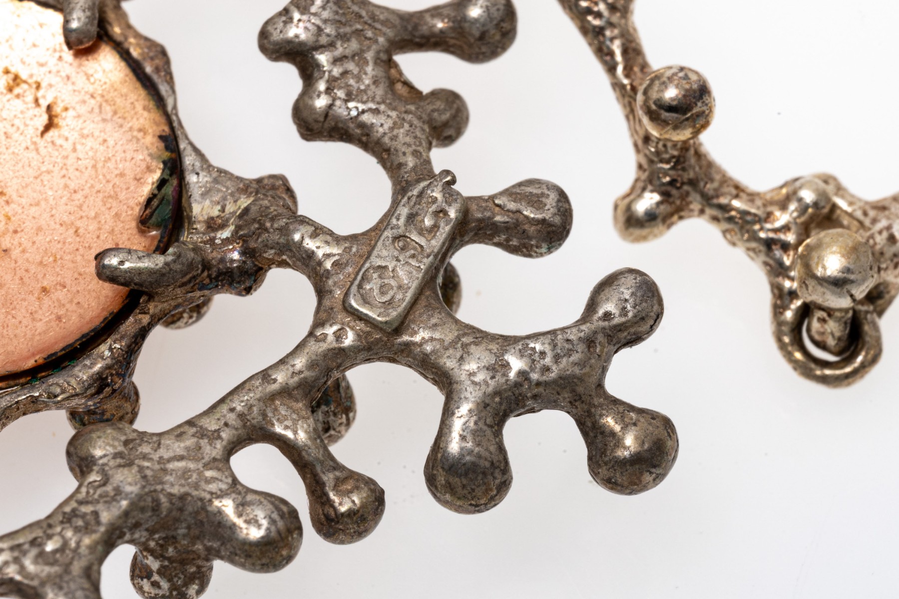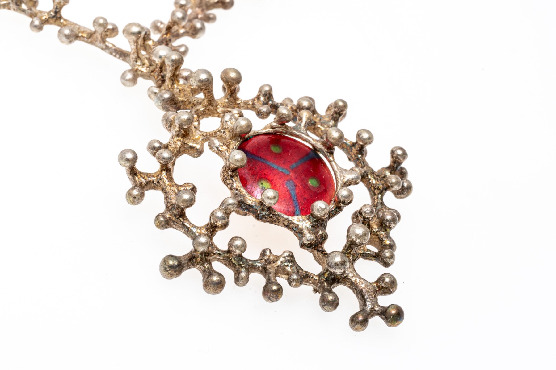 Sterling silver, copper and enamel Brutalist necklace, with earrings, clip on style
