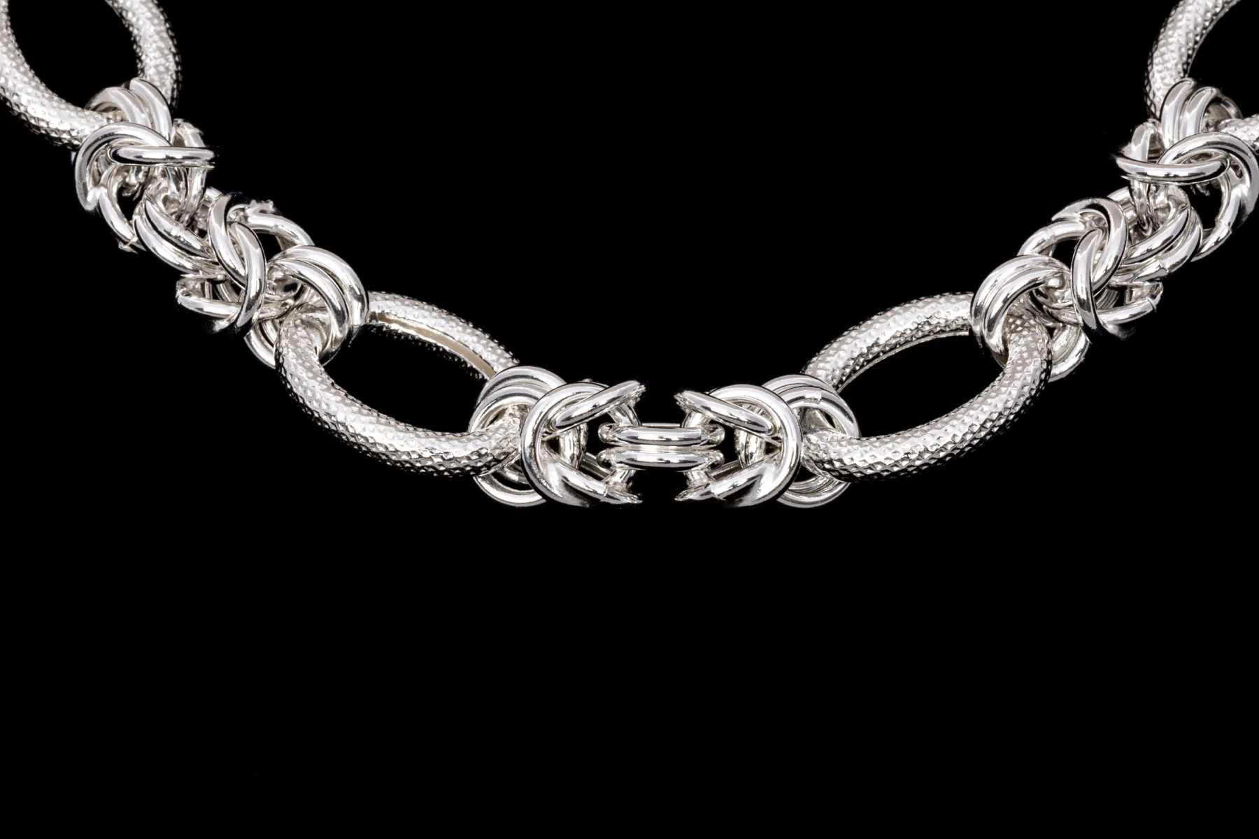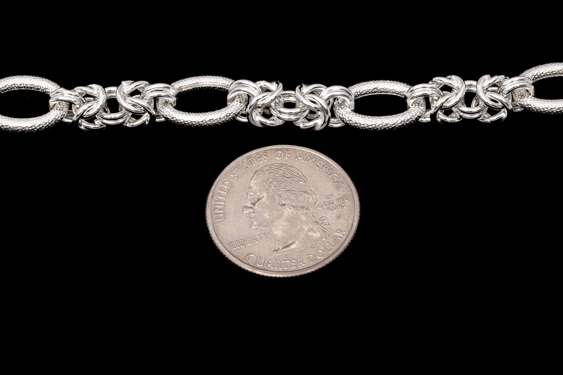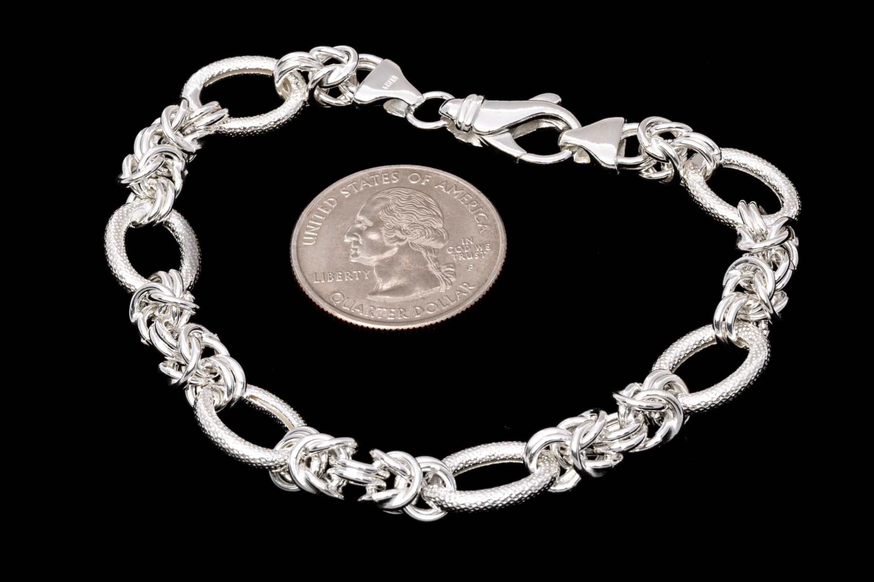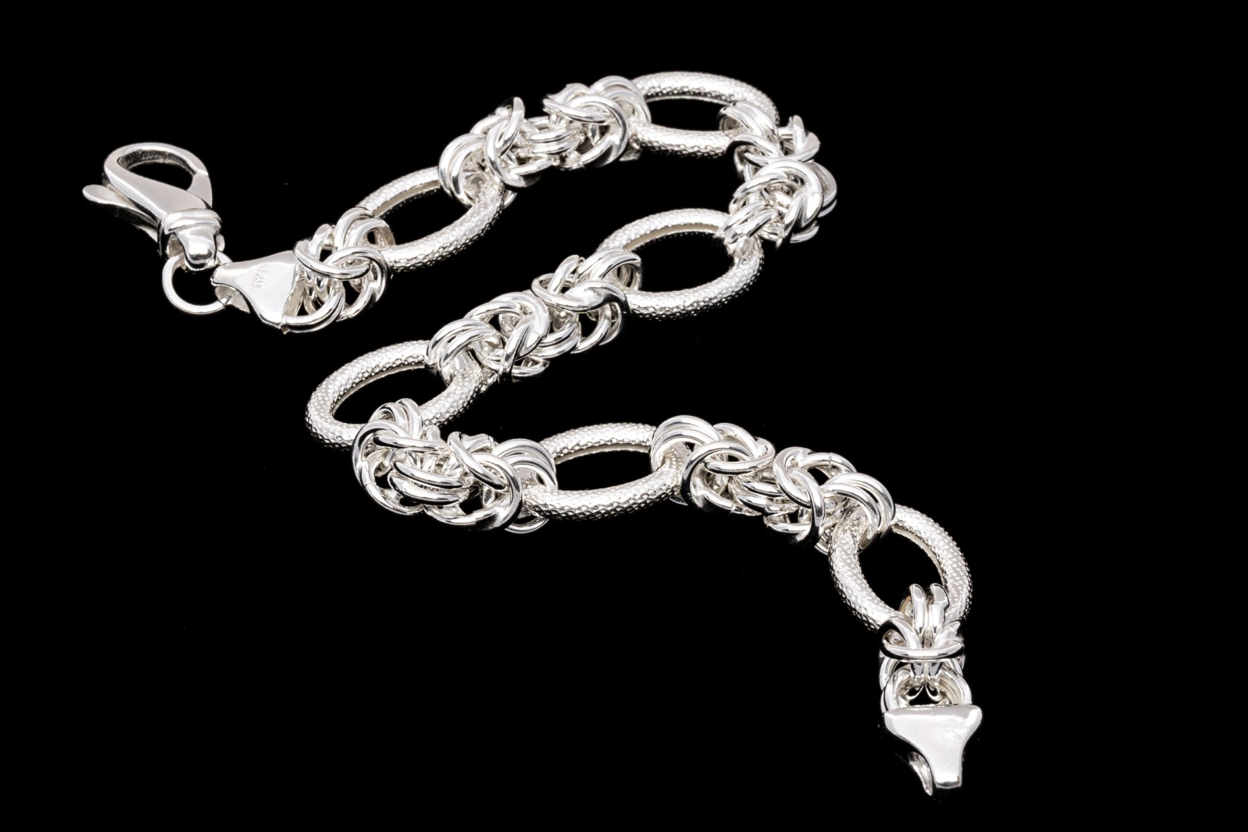 Sterling Silver Elegant Matte Finish Oval Link And Alternating Byzantine Link Bracelet #165456. Black Rock Galleries provides high end estate liquidation services through online estate auctions and a 50,000 sq ft designer showroom. estate liquidator, estate sale, online auction, antiques, fine art, liquidation, clean outs, auction, consignment, interior design, fine jewelry, collectibles, appraisals, estate appraisals, estate services, decor, furniture, furniture consignment, antique center, consignment shop. We offer appraisal services and specialize in fine art, jewelry, antiques and decorative arts. Sell with us. Black Rock Galleries is the tri-state's largest estate liquidator serving New England and the greater New York City area. We are the trusted source for expert appraisals, auction services, estate sales, and consignments. Black Rock Galleries is the east coast's largest and most trusted estate liquidator, with locations in Connecticut, greater Boston, MA and Raleigh, NC, Fairfield, Southport, Apex, TX. We are the best source for expert appraisals, auction services, estate sales and consignments. We have served thousands of families and estates with compassion, professionalism and expertise. BRG works with attorneys, executors, realtors and families to bring the greatest return on personal and estate property in the current market. Our unique combination of services make us the easy choice to get the job done in a timely and stress-free manner. We are with you from the initial consultation to the final clean out. Our house-built online auction software platform offers clients a dynamic approach to liquidating their personal property. This venue is most successful in bringing the best return with the least amount of disruption for our clients. See our services page for a complete description of this offering. Sterling Silver Elegant Matte Finish Oval Link And Alternating Byzantine Link Bracelet #165456
