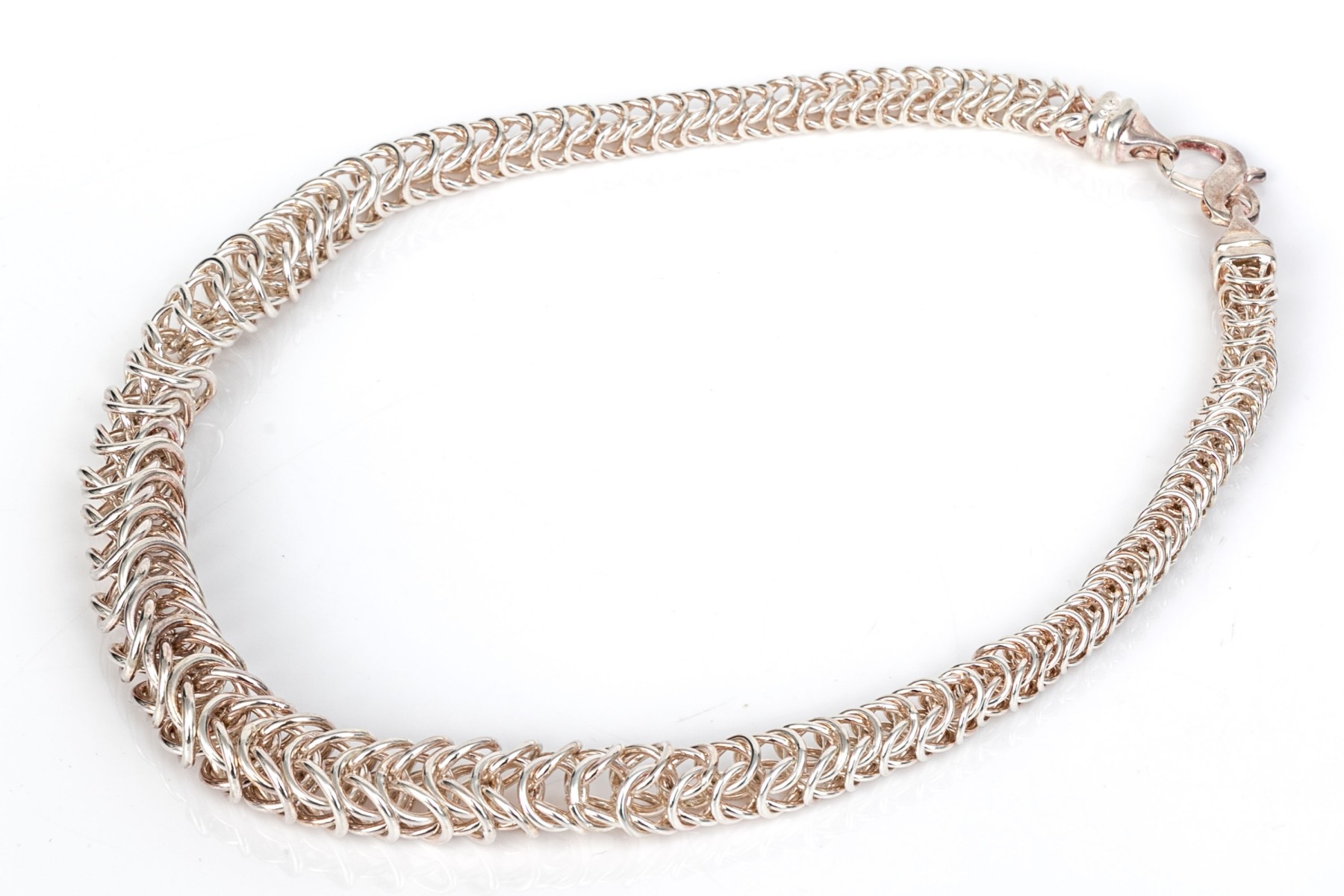 Sterling silver fabulous graduated interlocking ring necklace, finished with a lobster claw style clasp