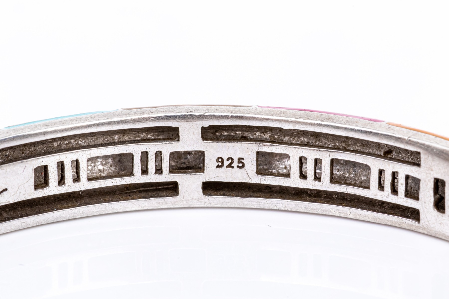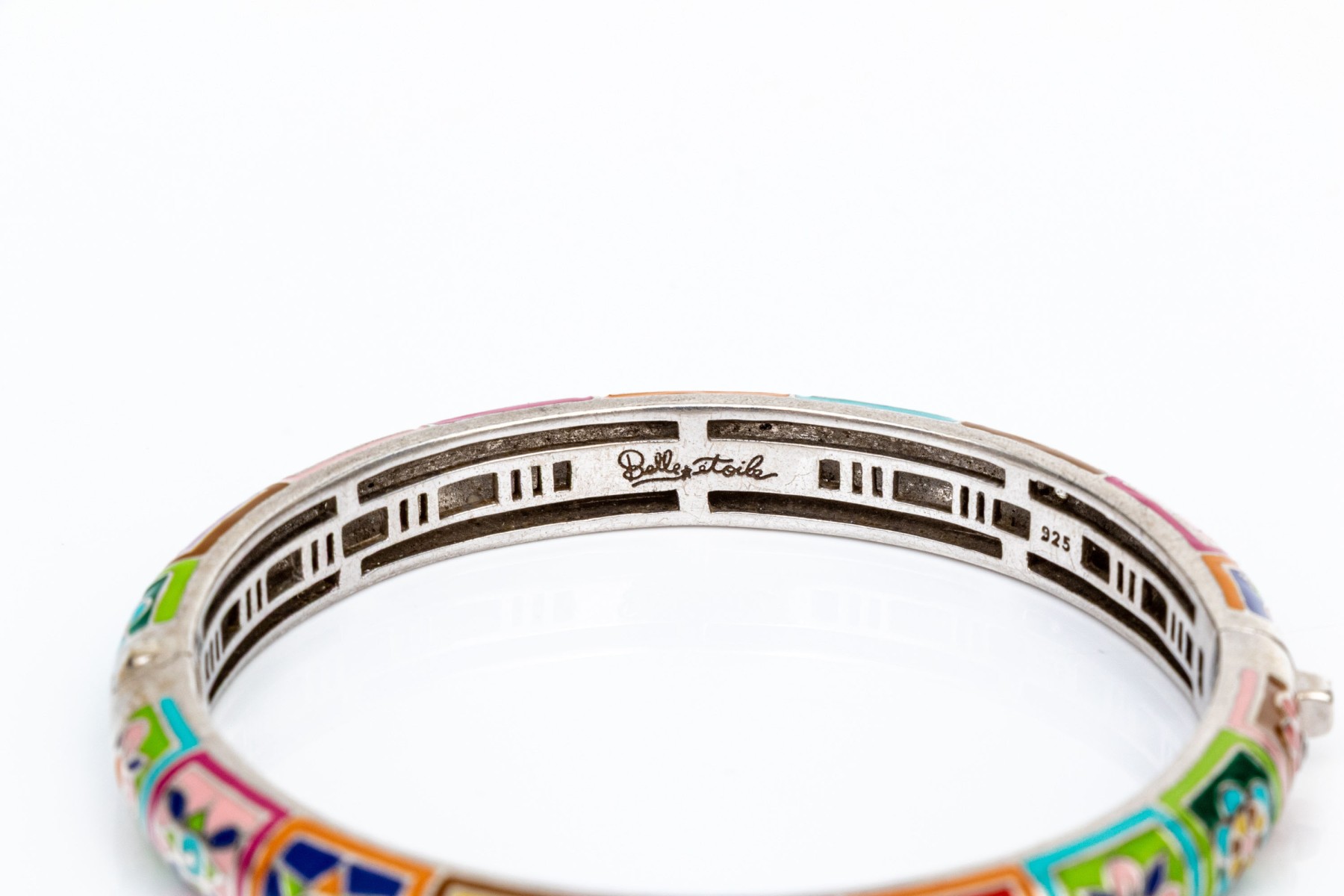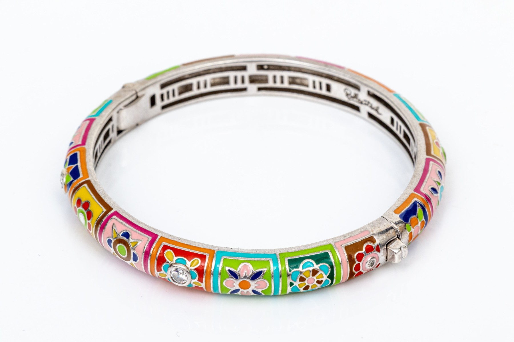 Sterling silver fun colorful enamel floral hinged bangle bracelet, please see note