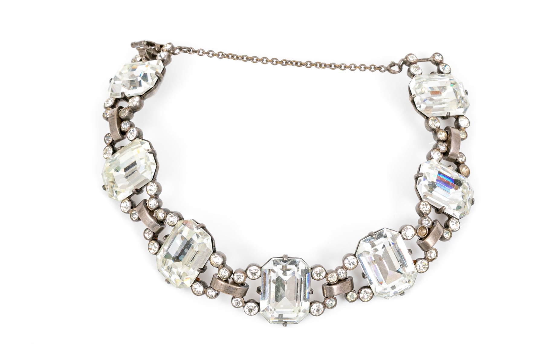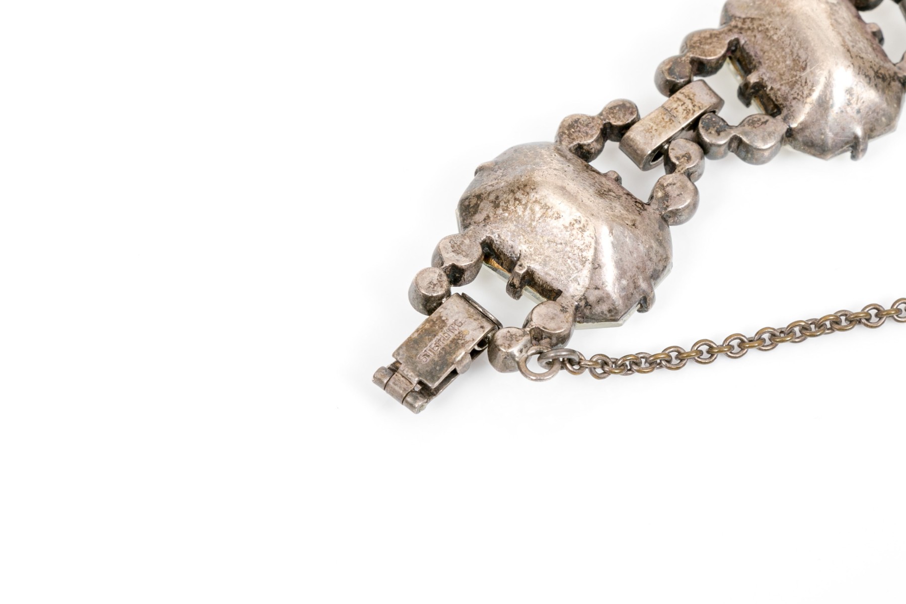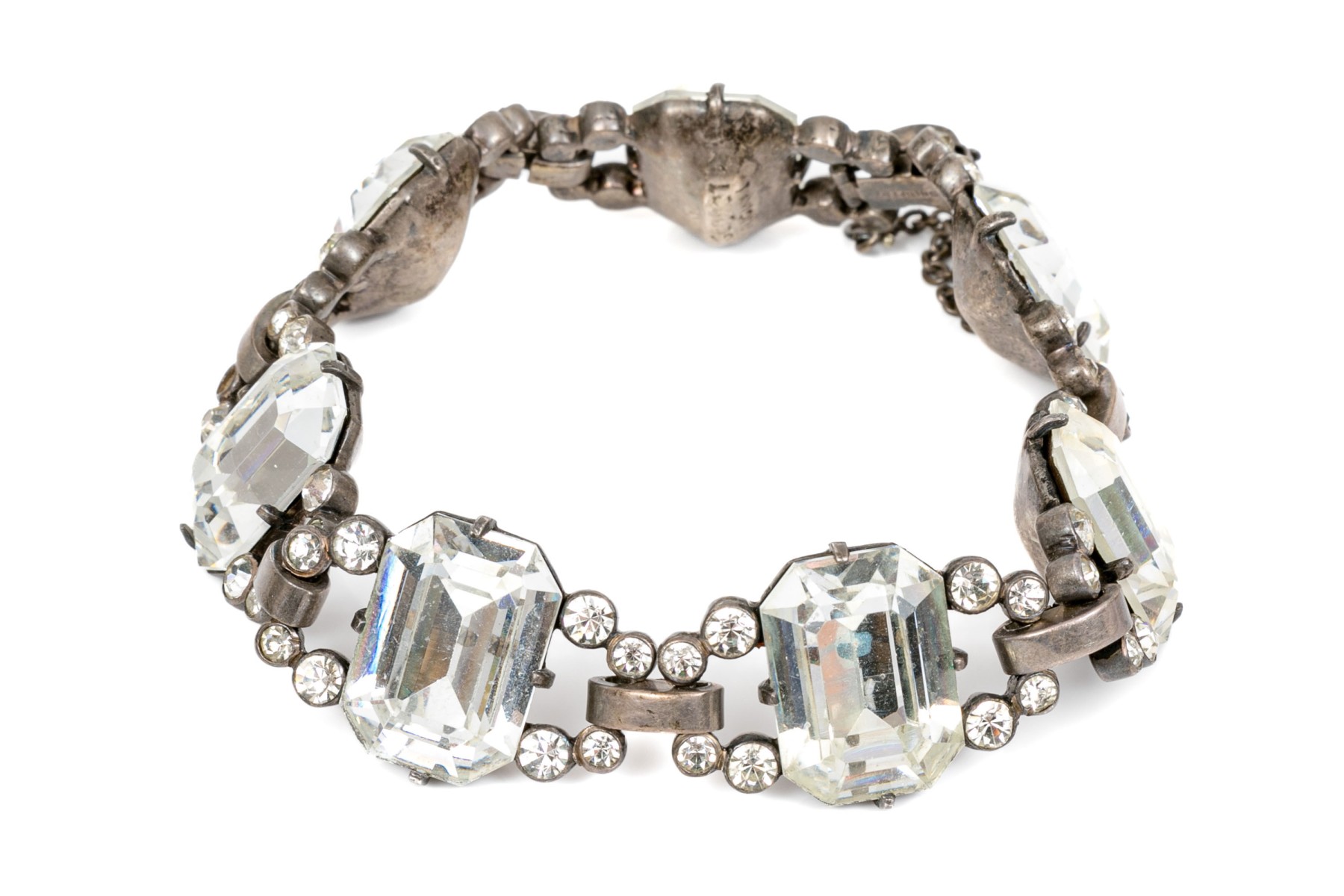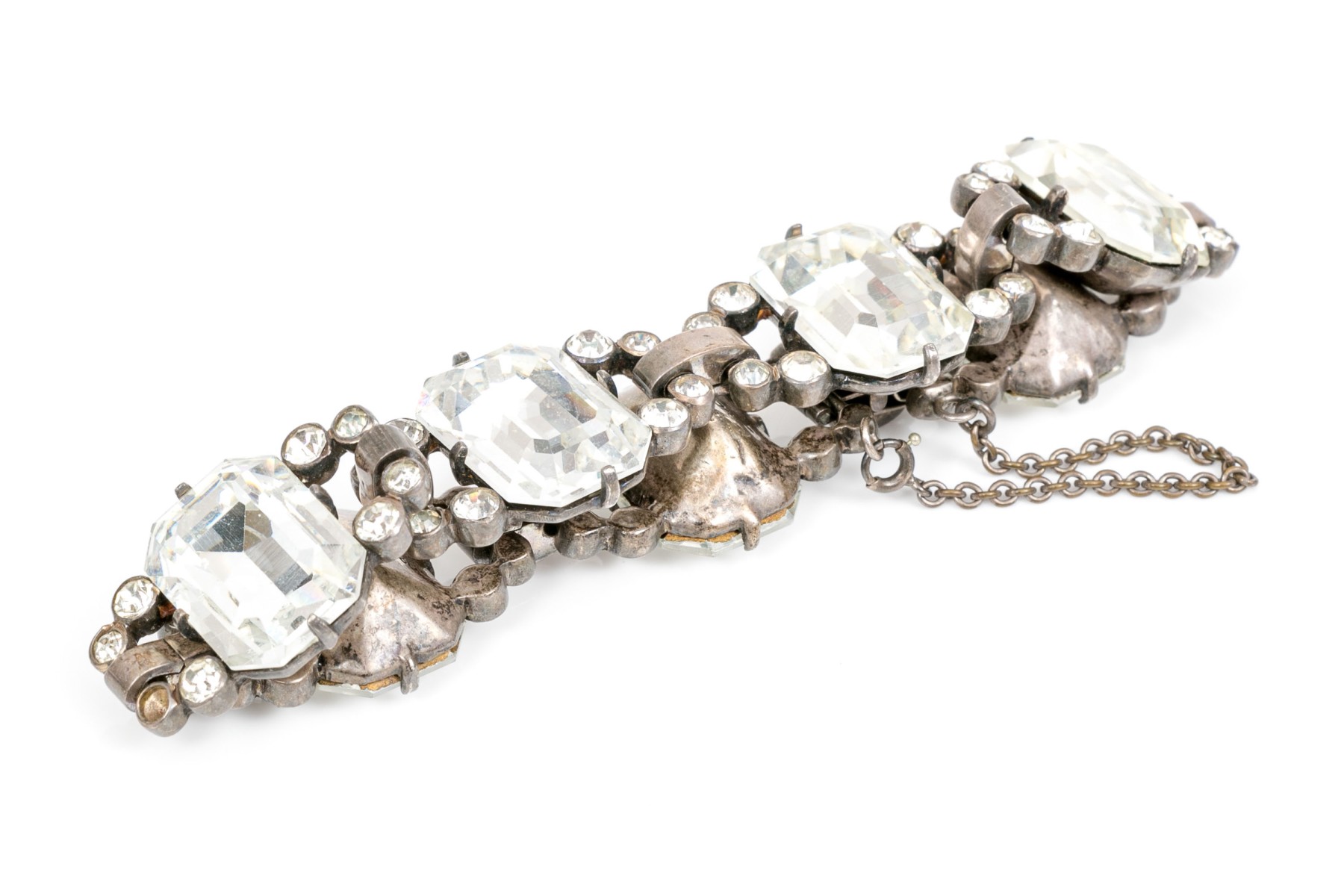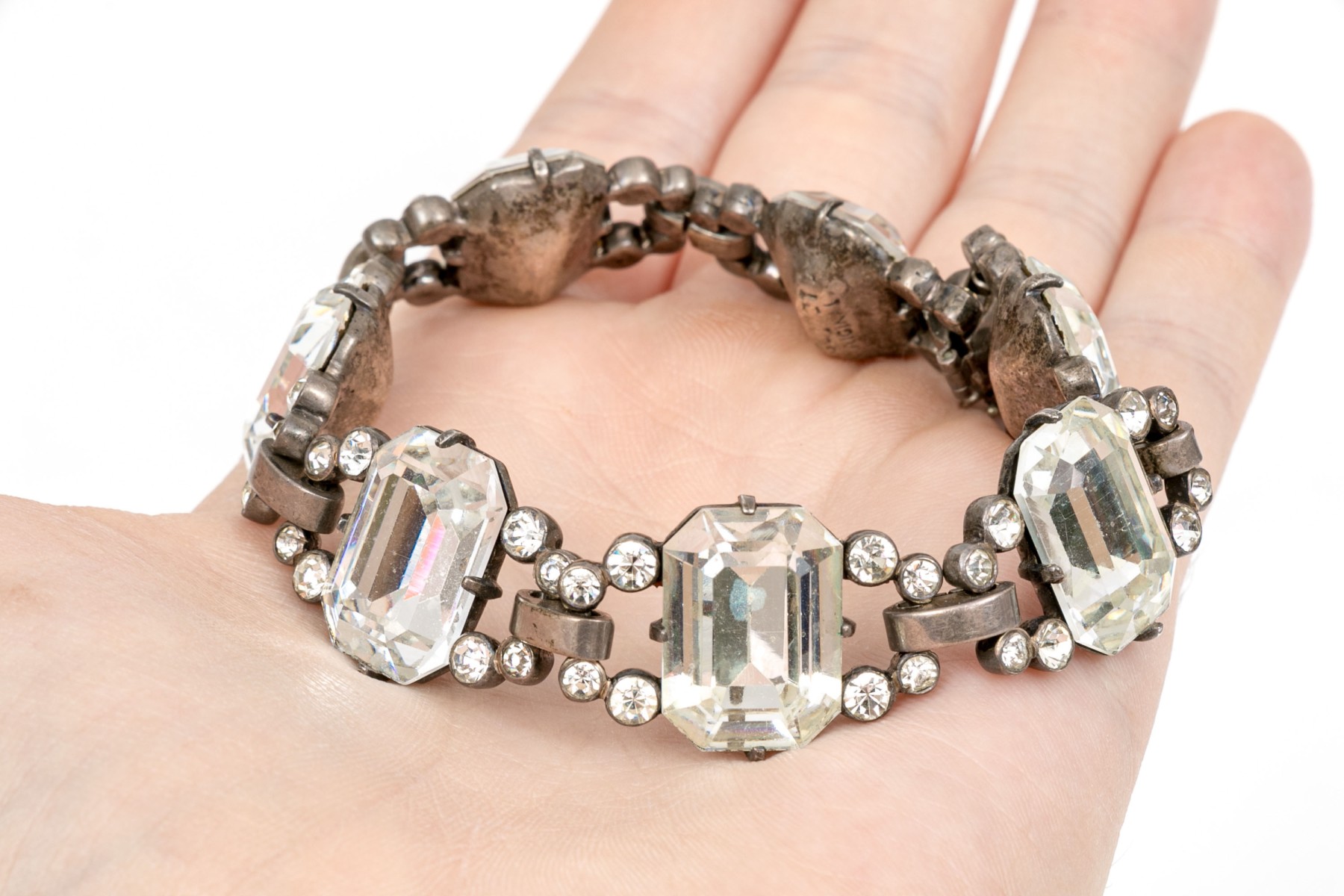 Sterling silver fun impactful vintage chunky rhinestone bracelet, with box clasp and safety chain