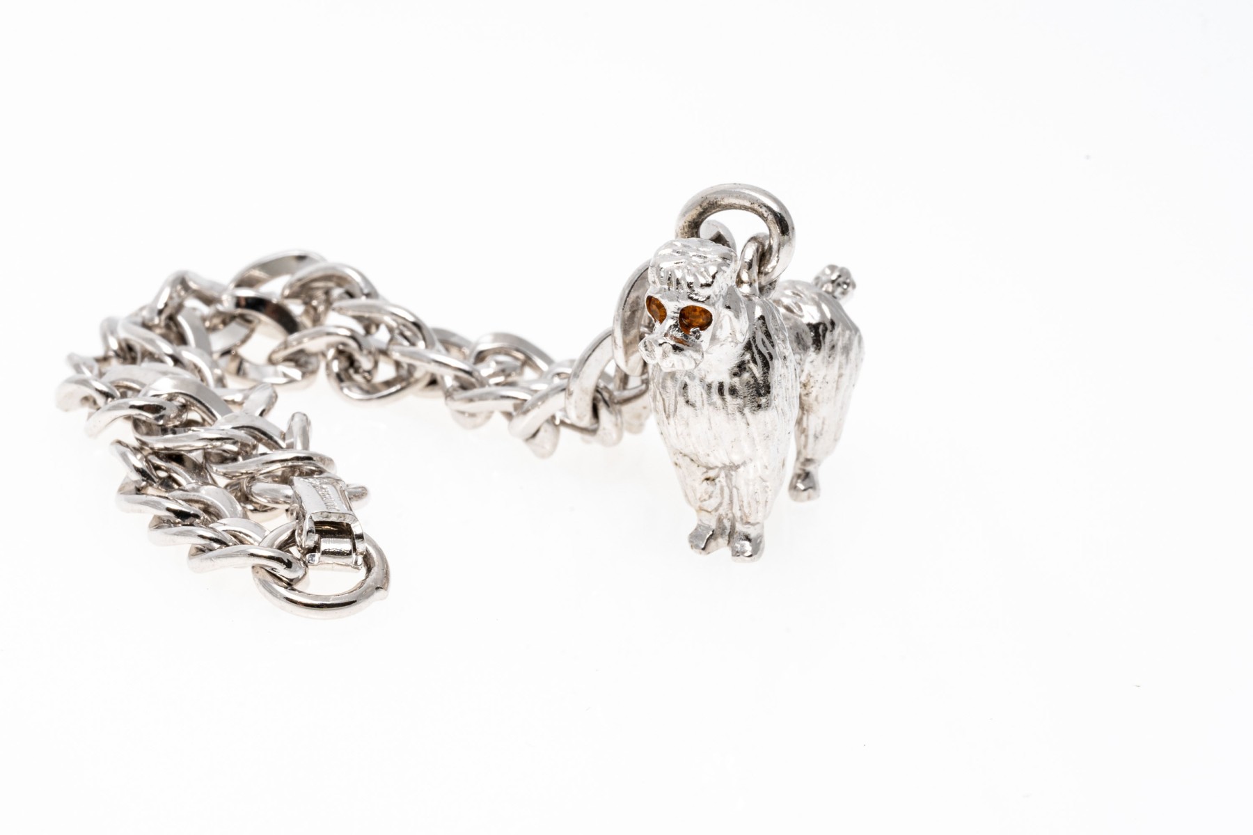 Sterling silver fun poodle charm bracelet, finished with a foldover style clasp