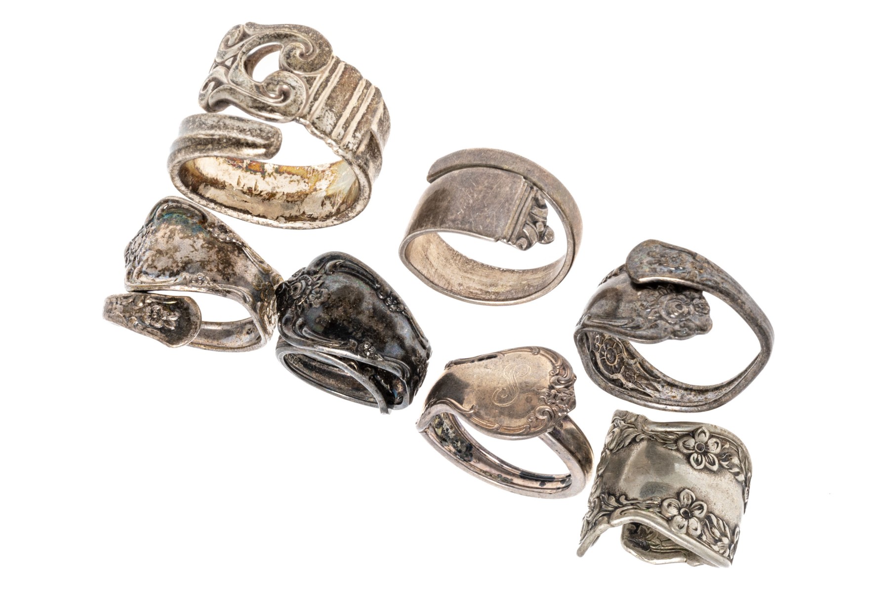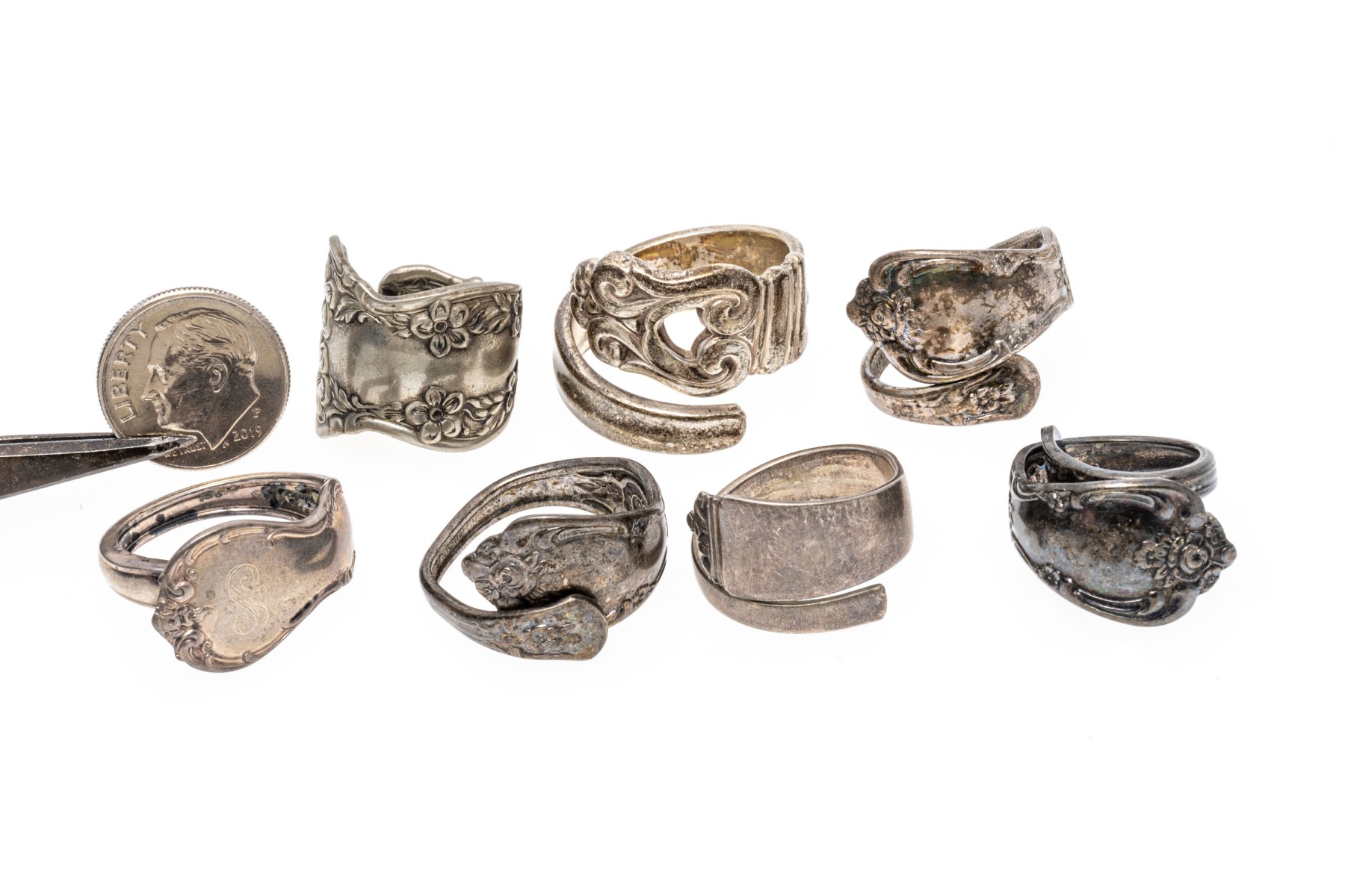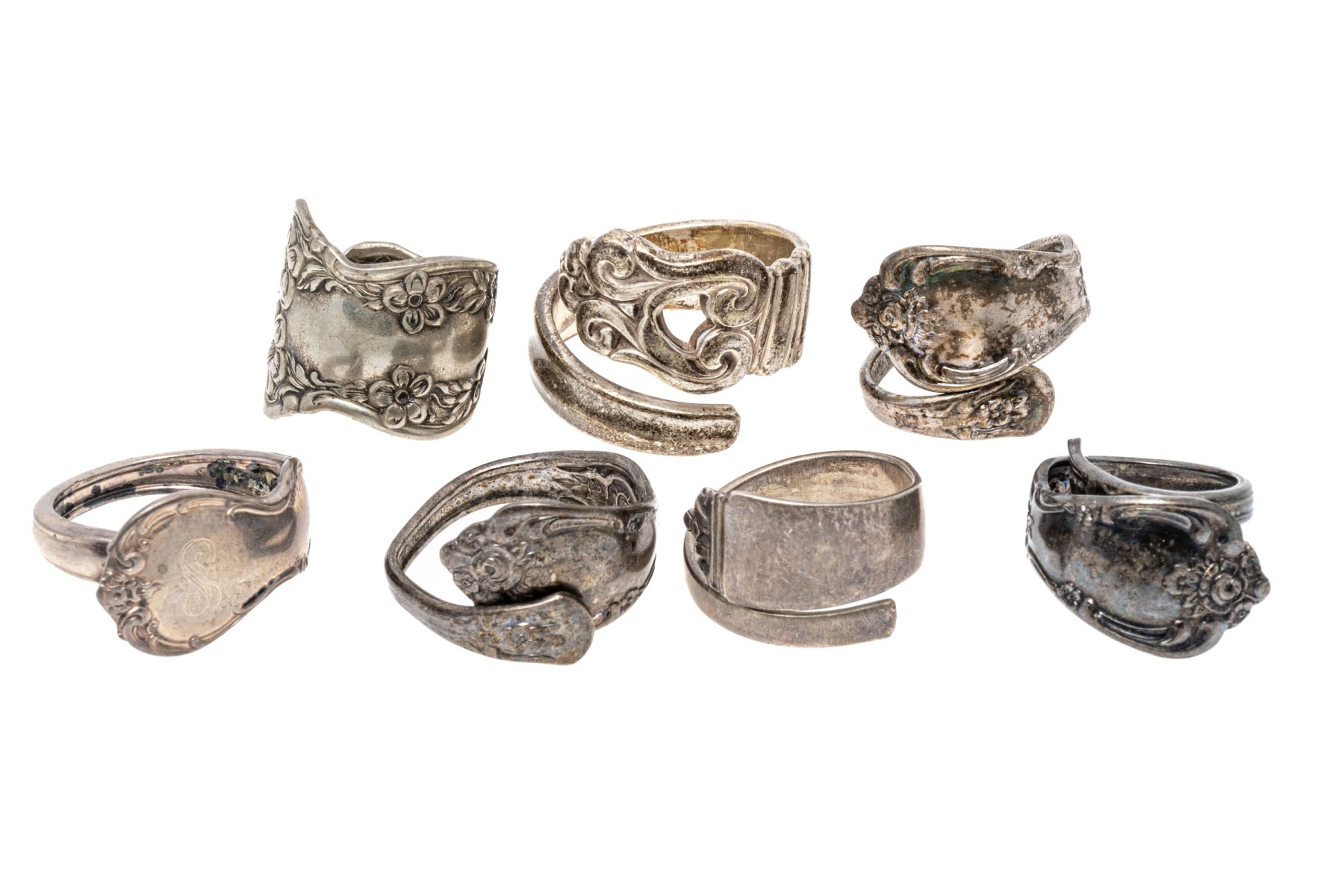 Sterling silver fun retro lot of spoon rings, adjustable sizes