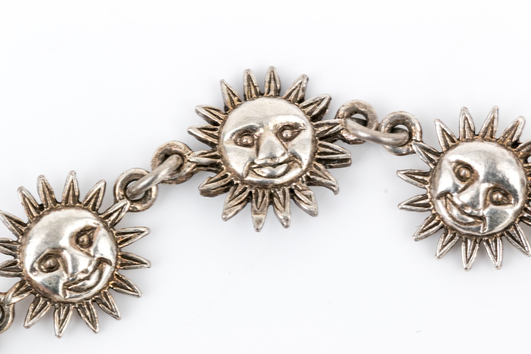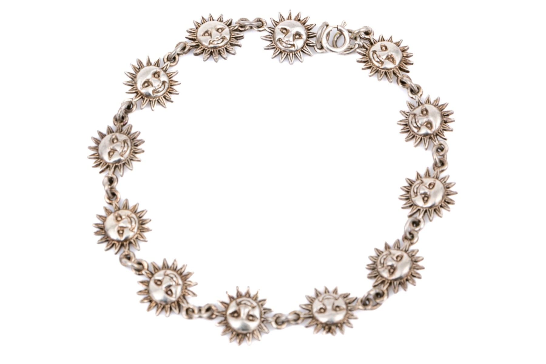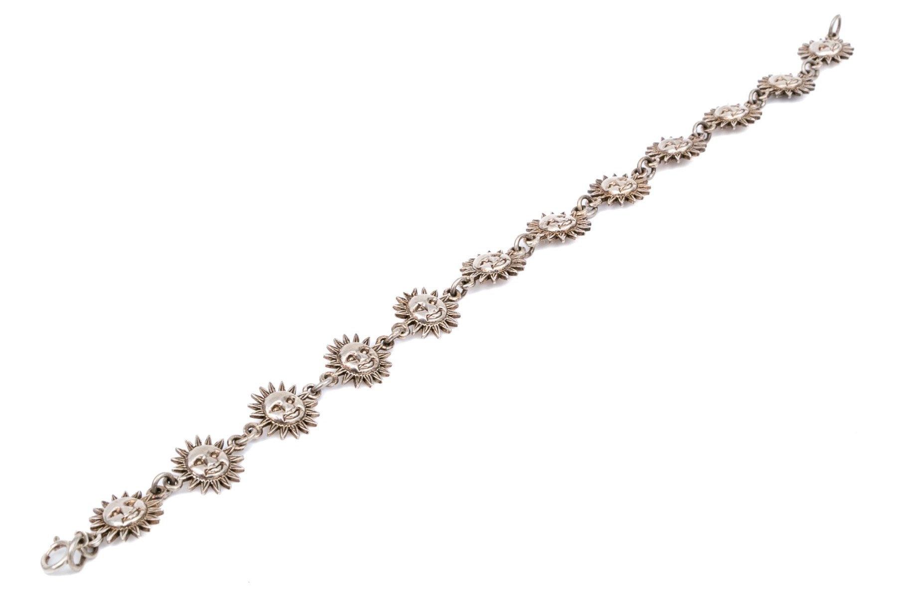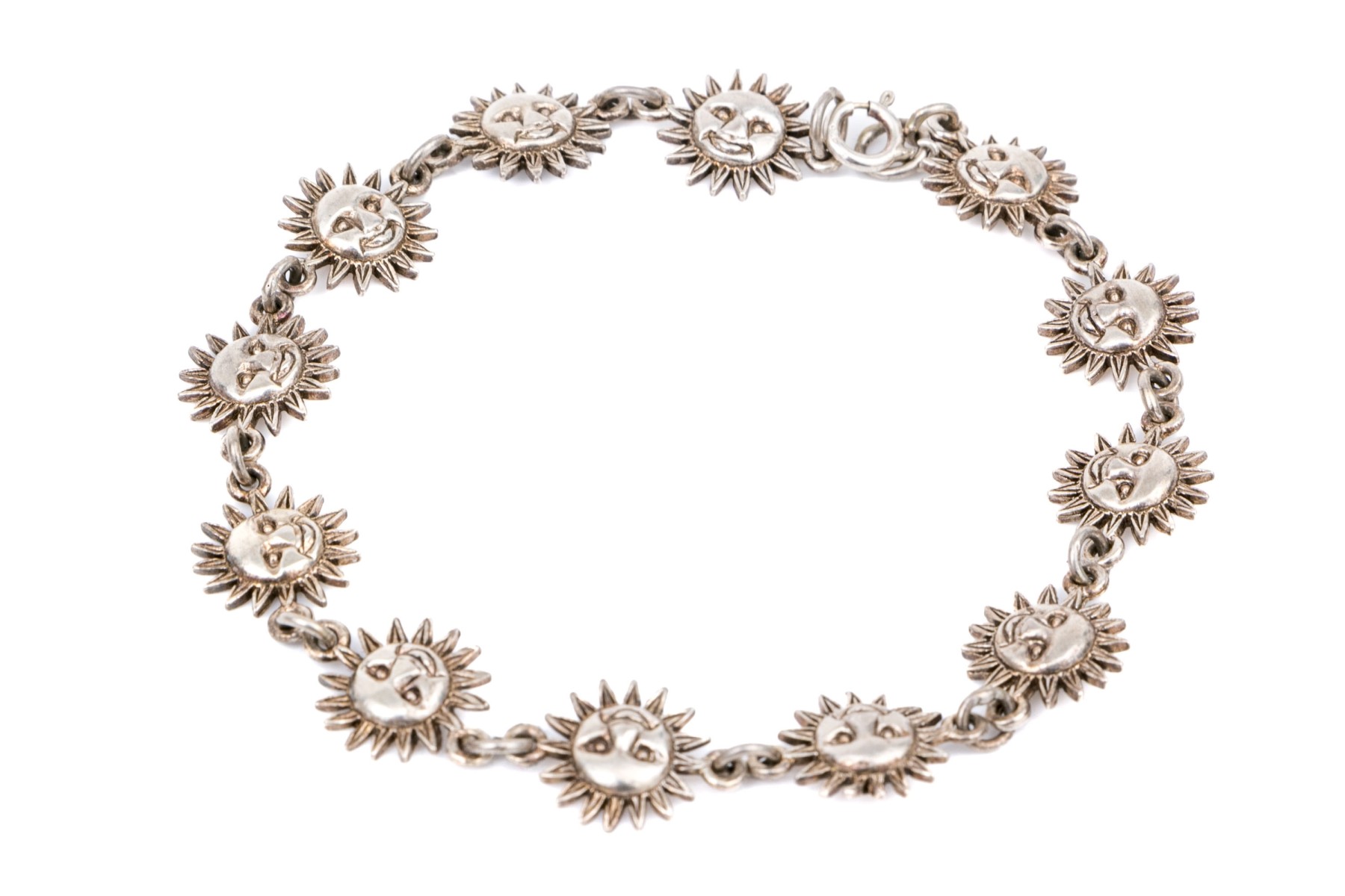 Sterling silver fun sun motif link bracelet, finished with a spring ring style clasp