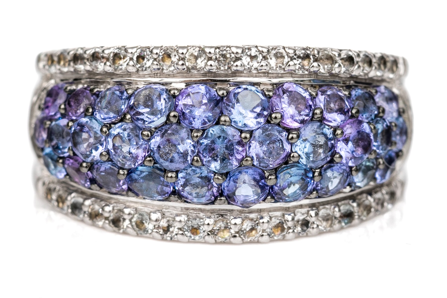 Sterling silver gorgeous periwinkle blue and white cz dome ring, size 7+