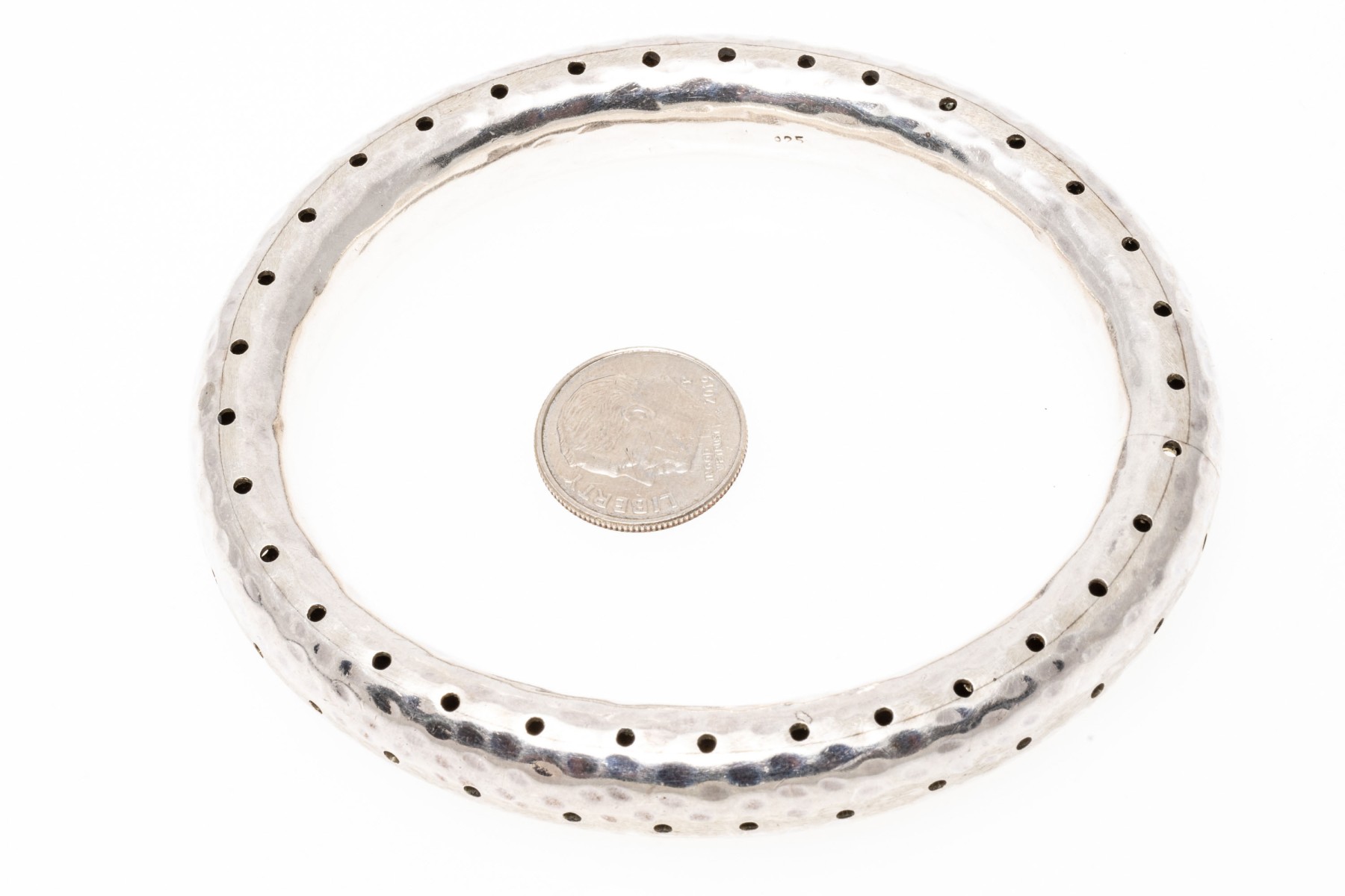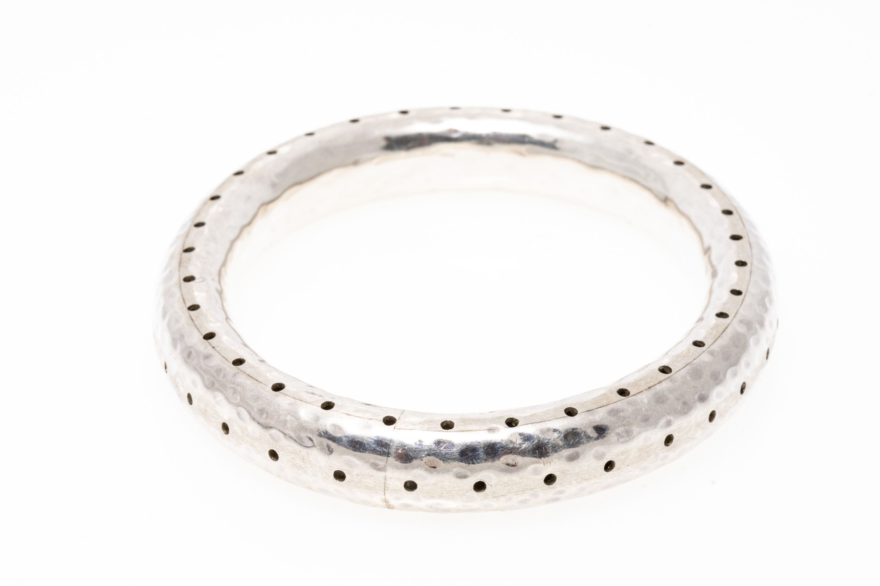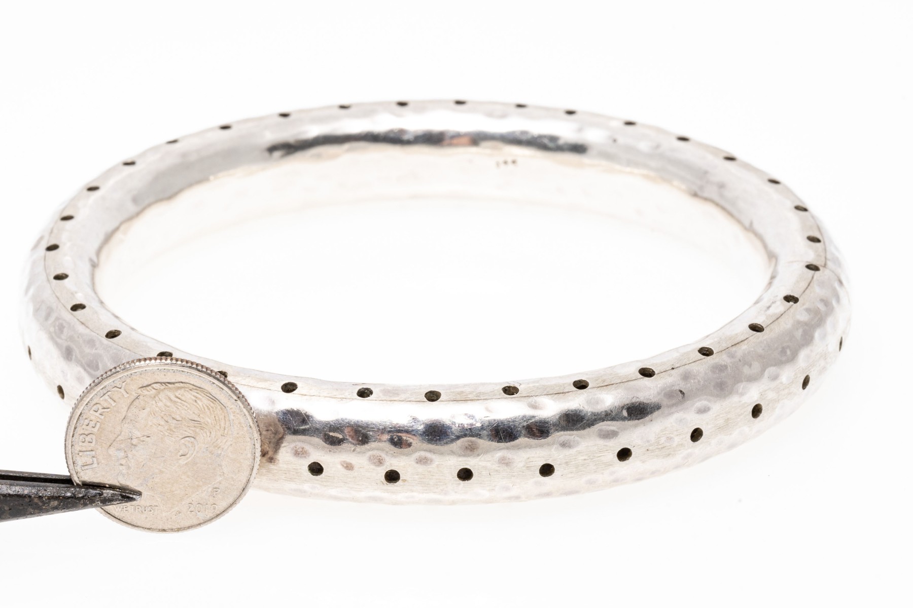 Sterling silver impactful hammered and perforated patterned slip on bangle bracelet