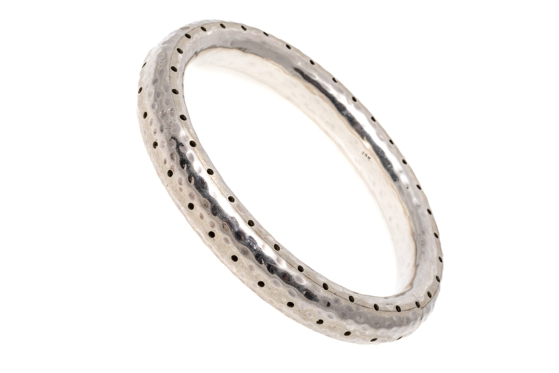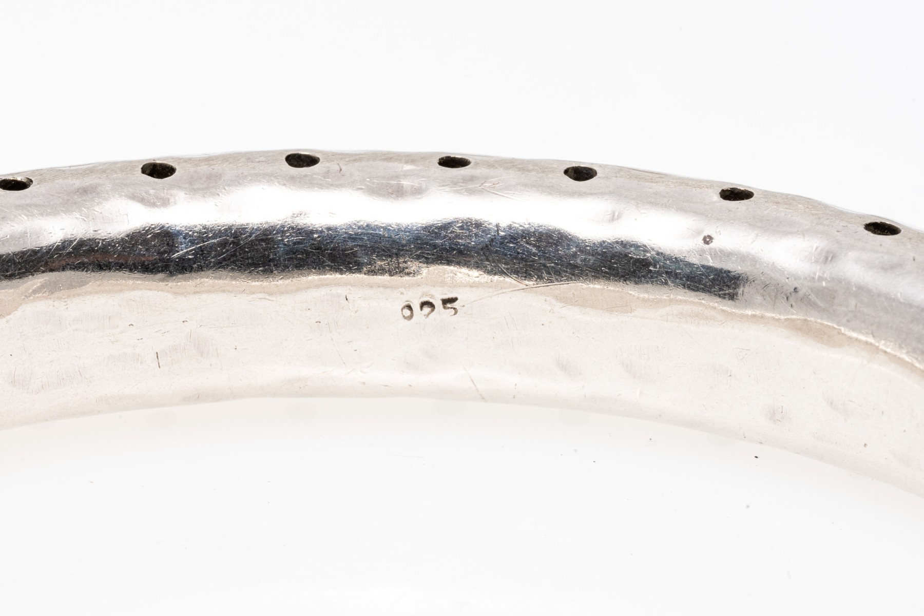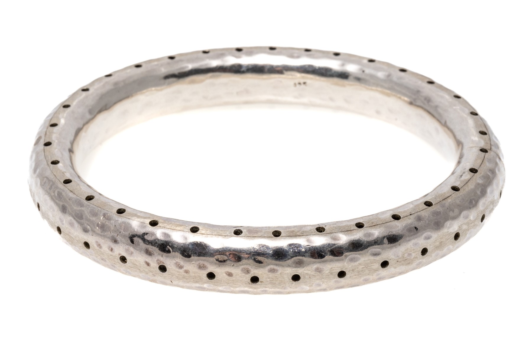 Sterling silver impactful hammered and perforated patterned slip on bangle bracelet