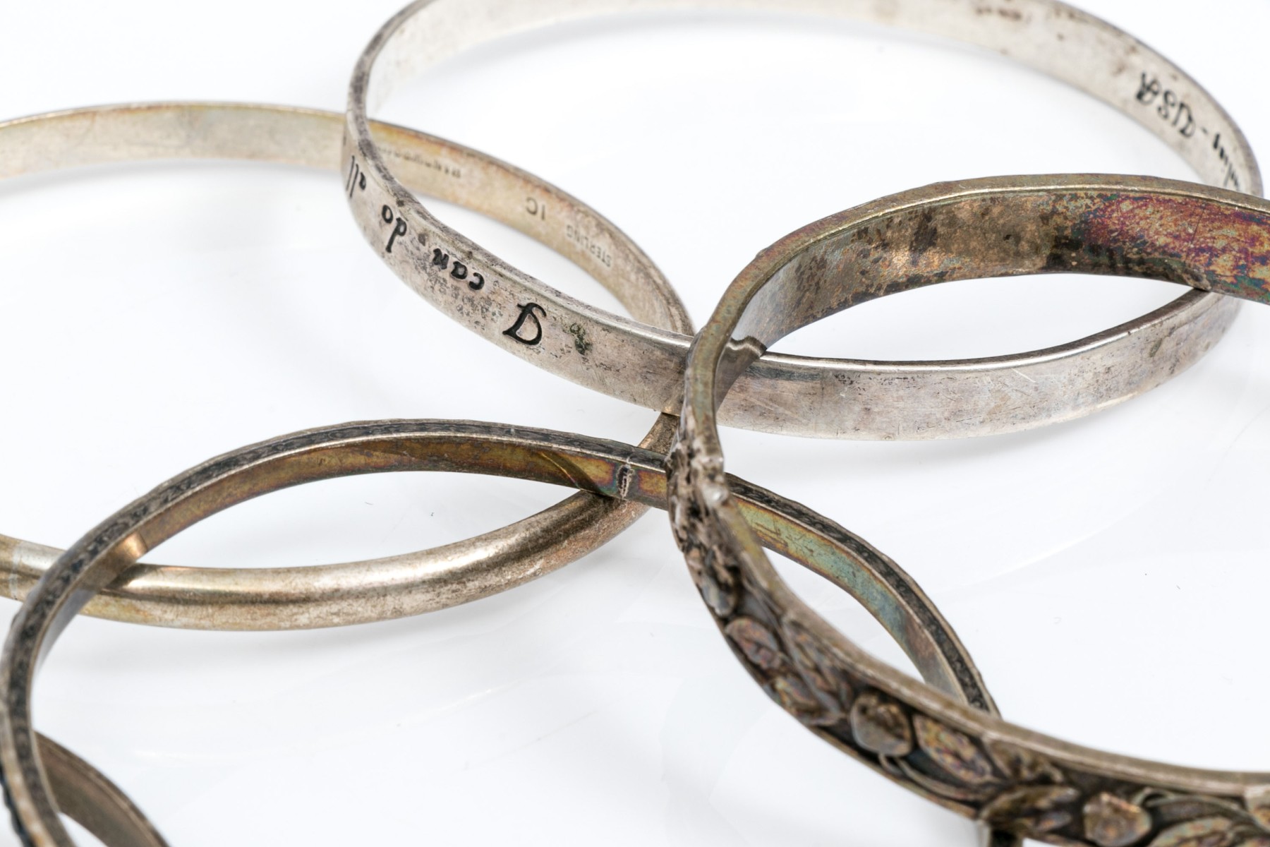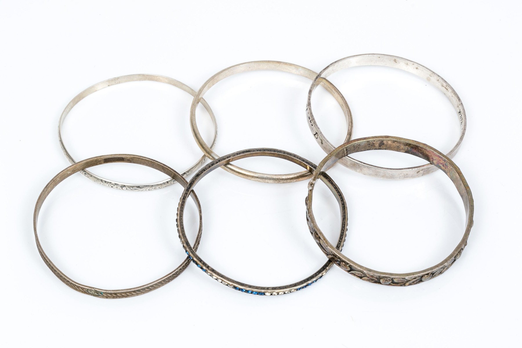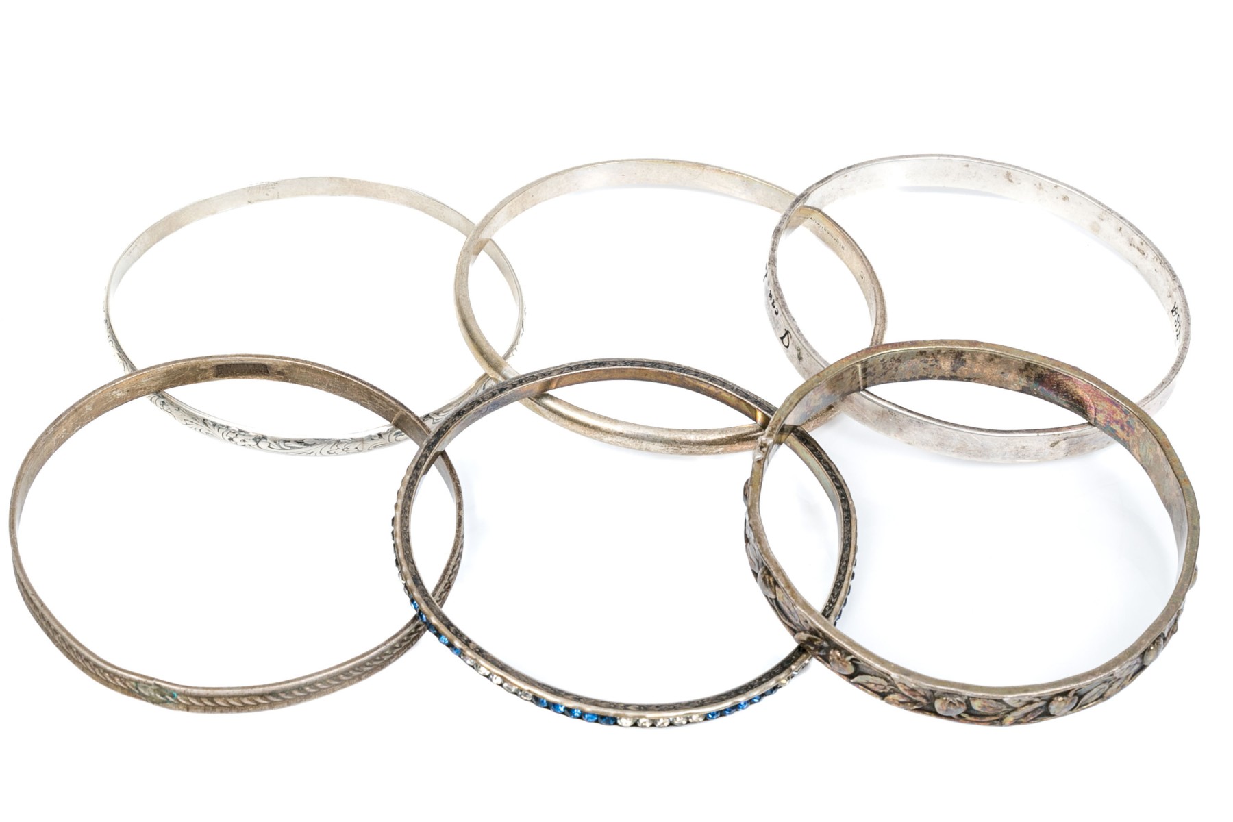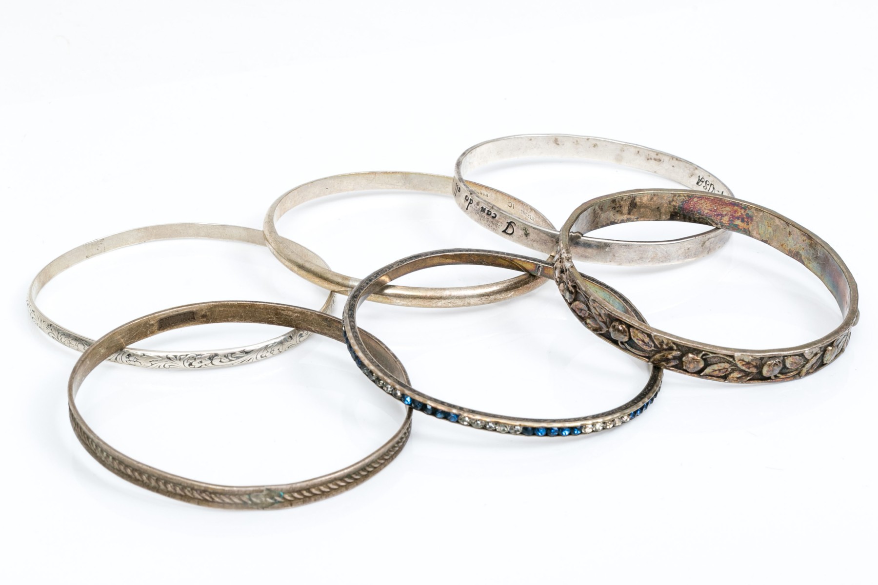 Sterling silver lot of six assorted slip on bangle bracelets, assorted styles