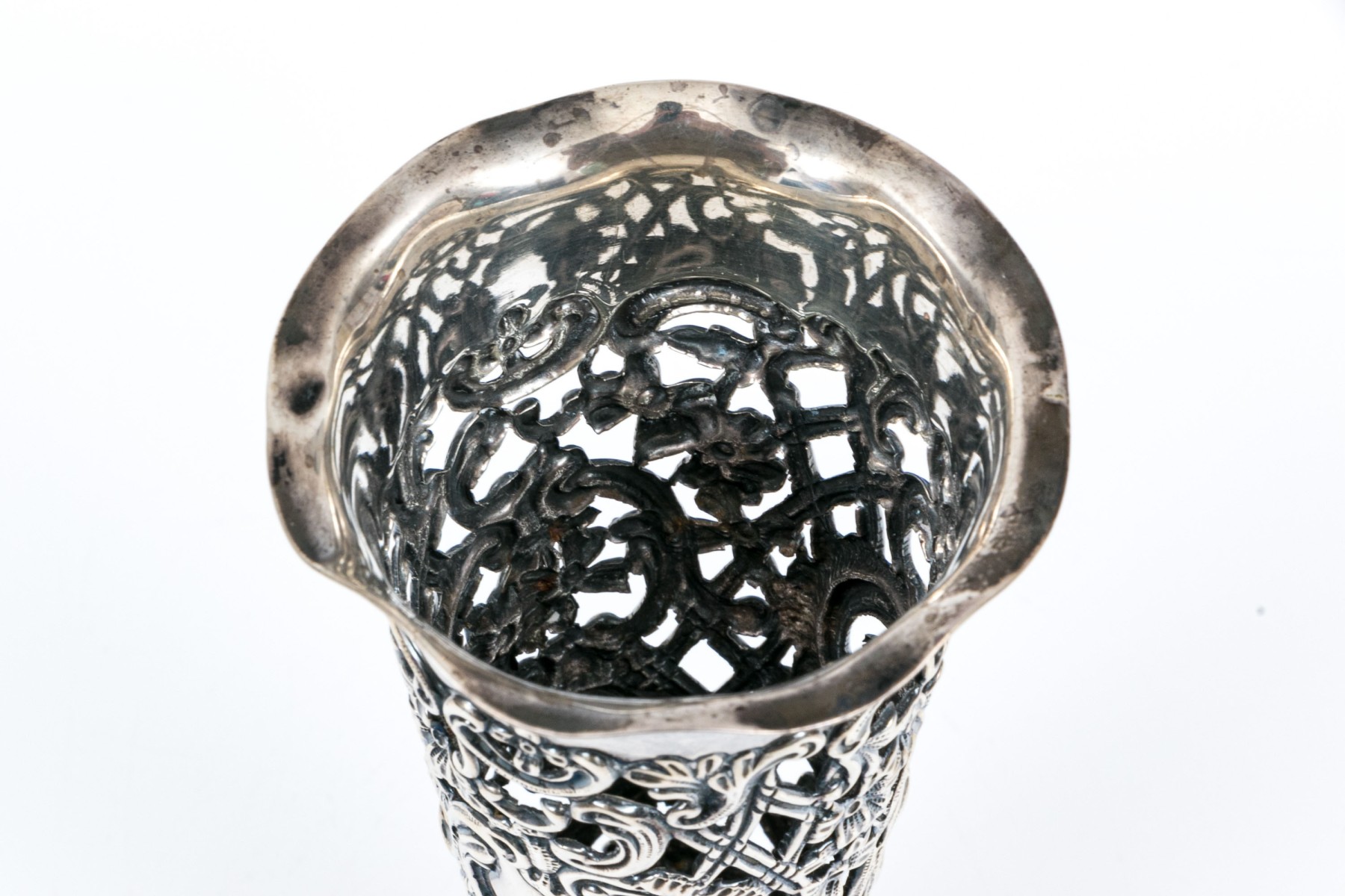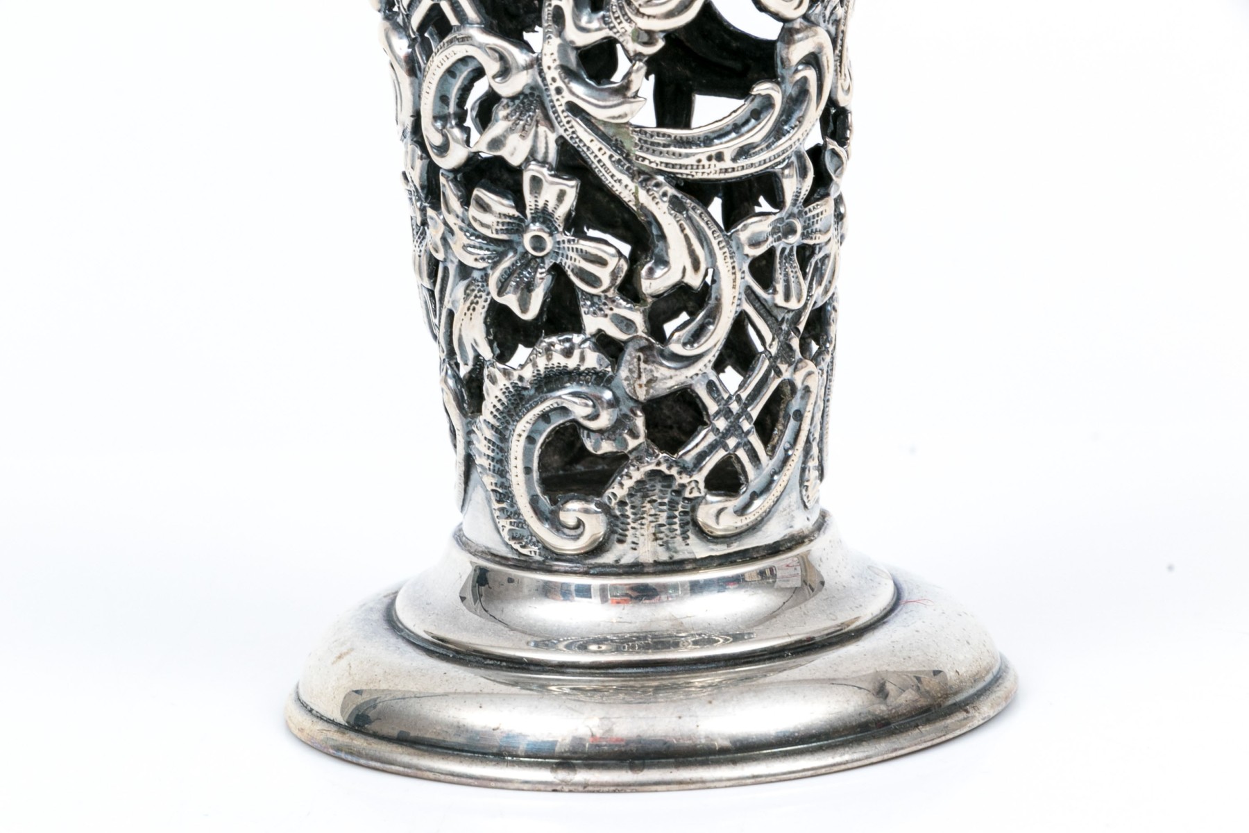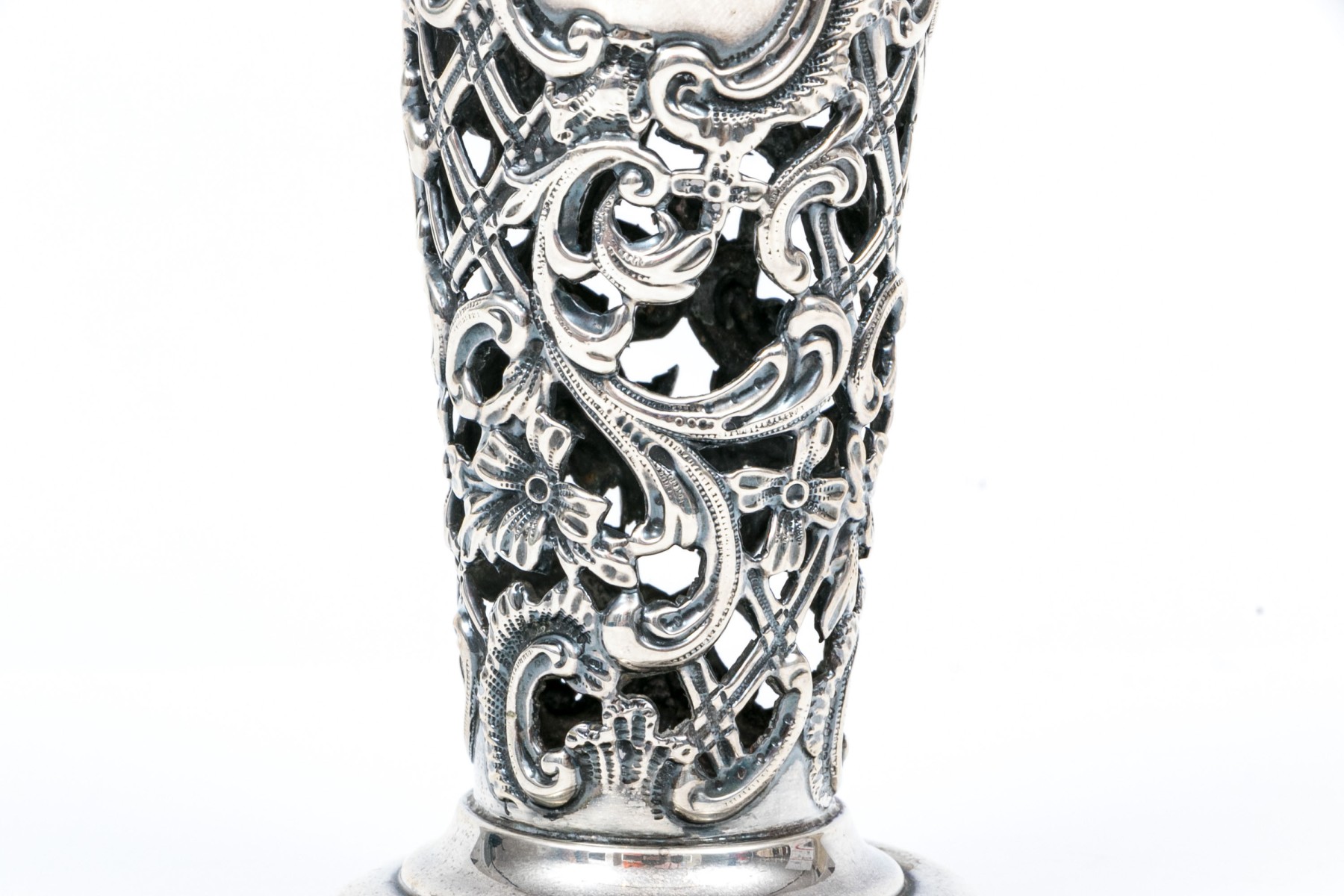 Sterling silver lovely antique Gorham lattice trumpet vase, circa 1898, no glass insert