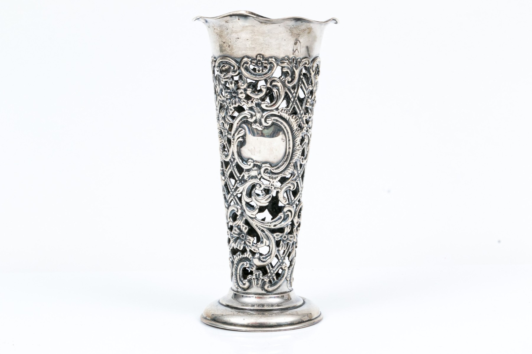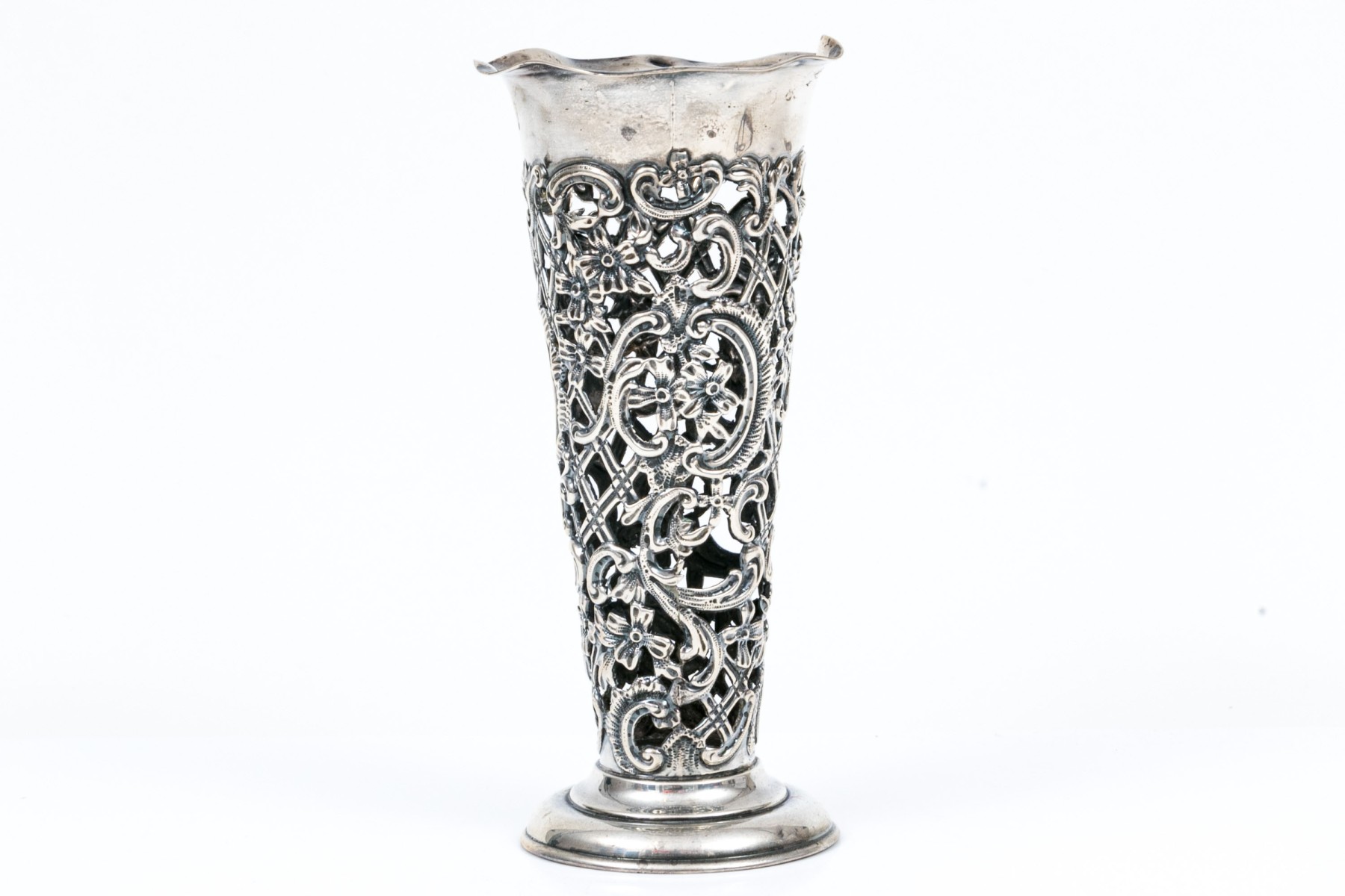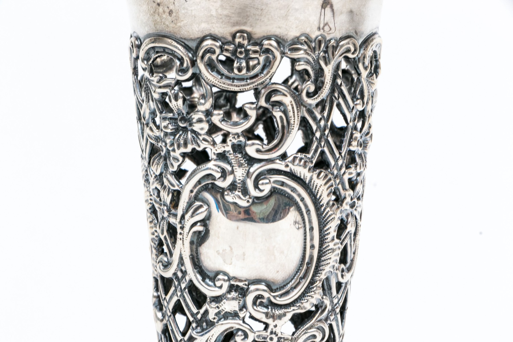 Sterling silver lovely antique Gorham lattice trumpet vase, circa 1898, no glass insert