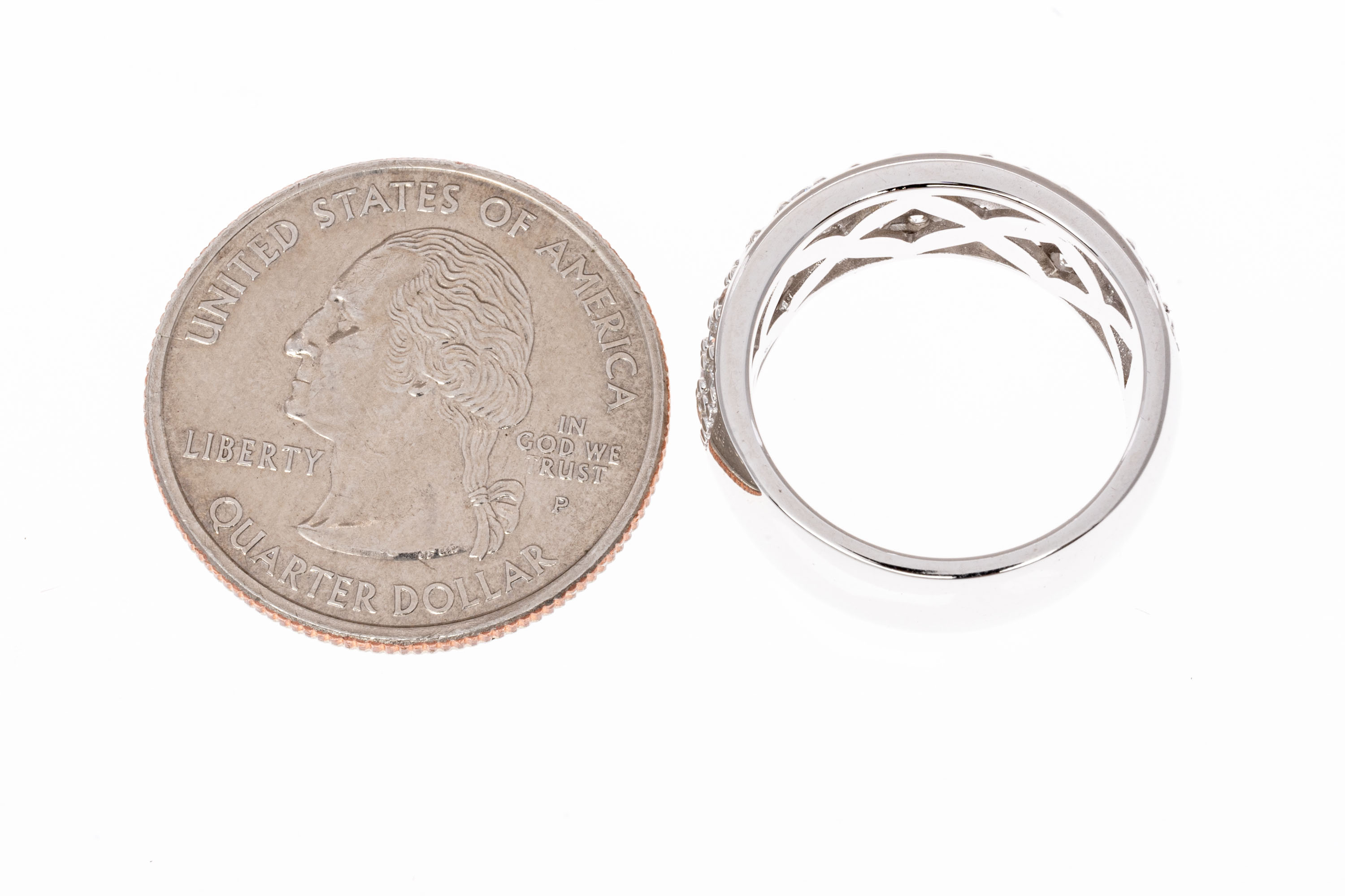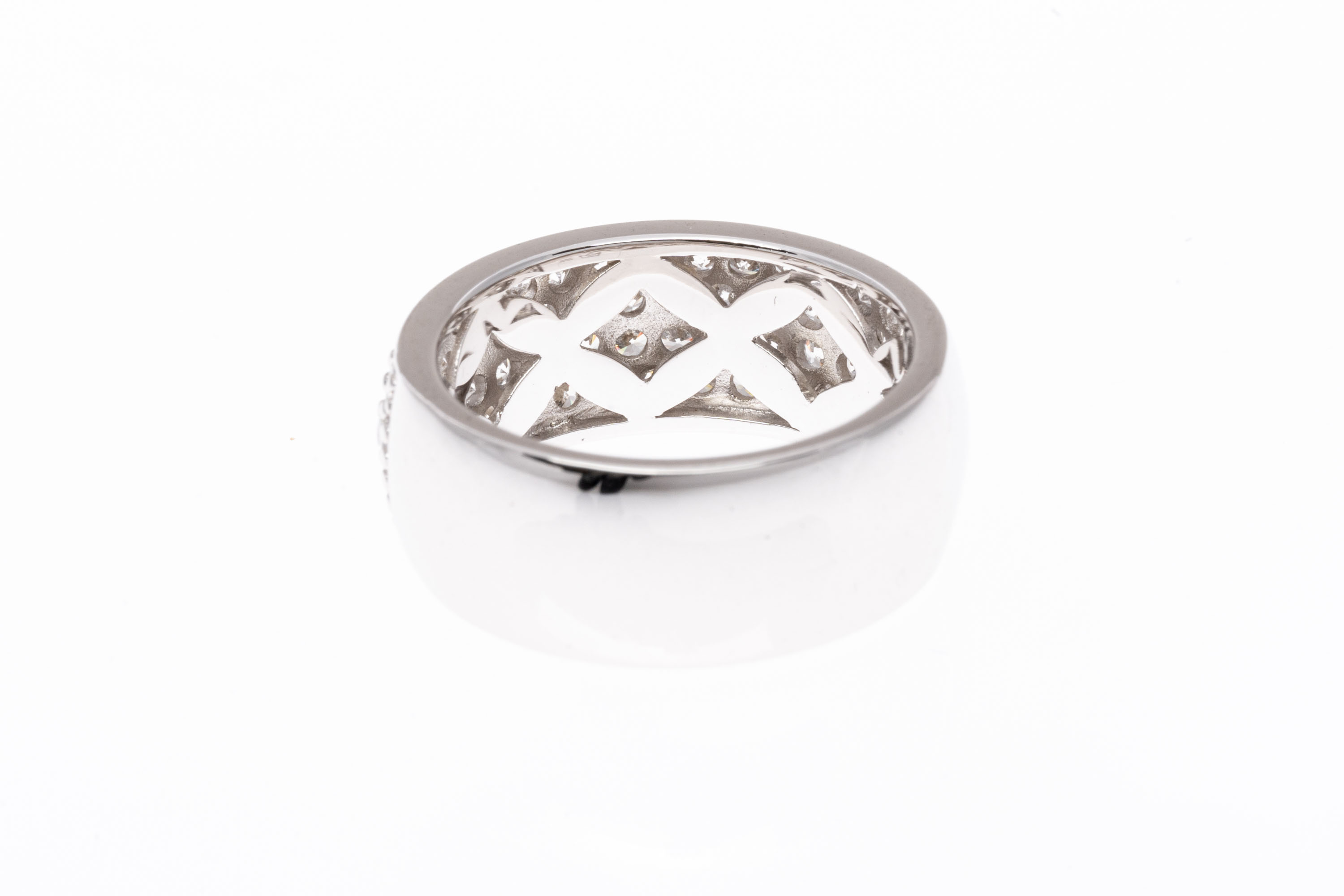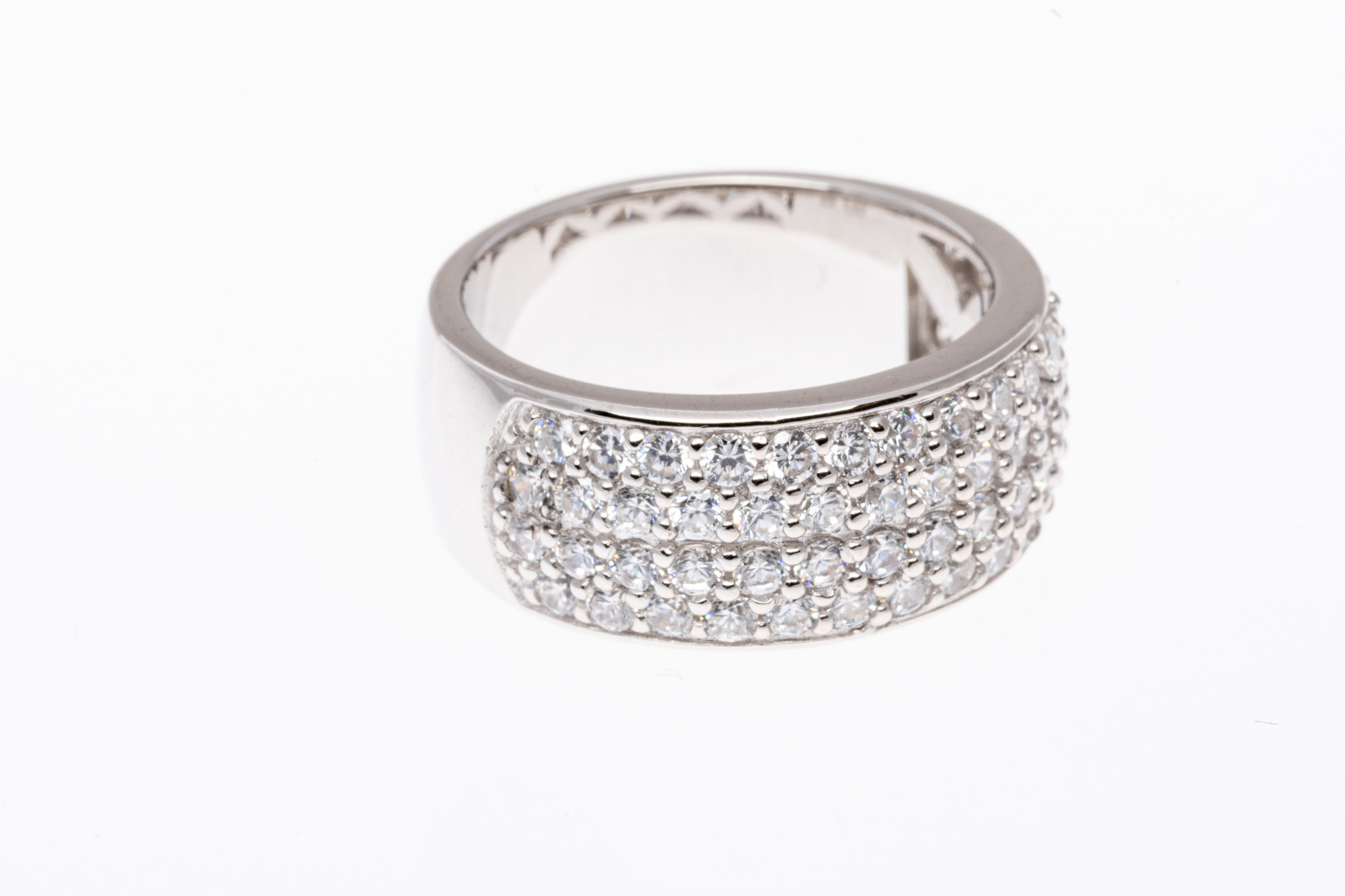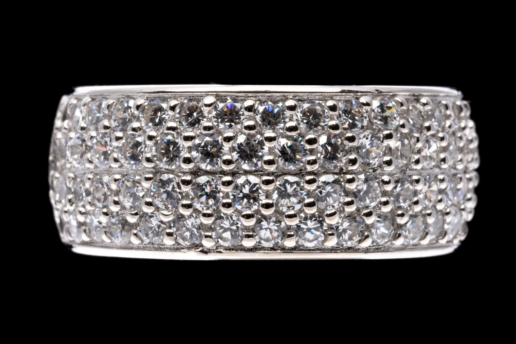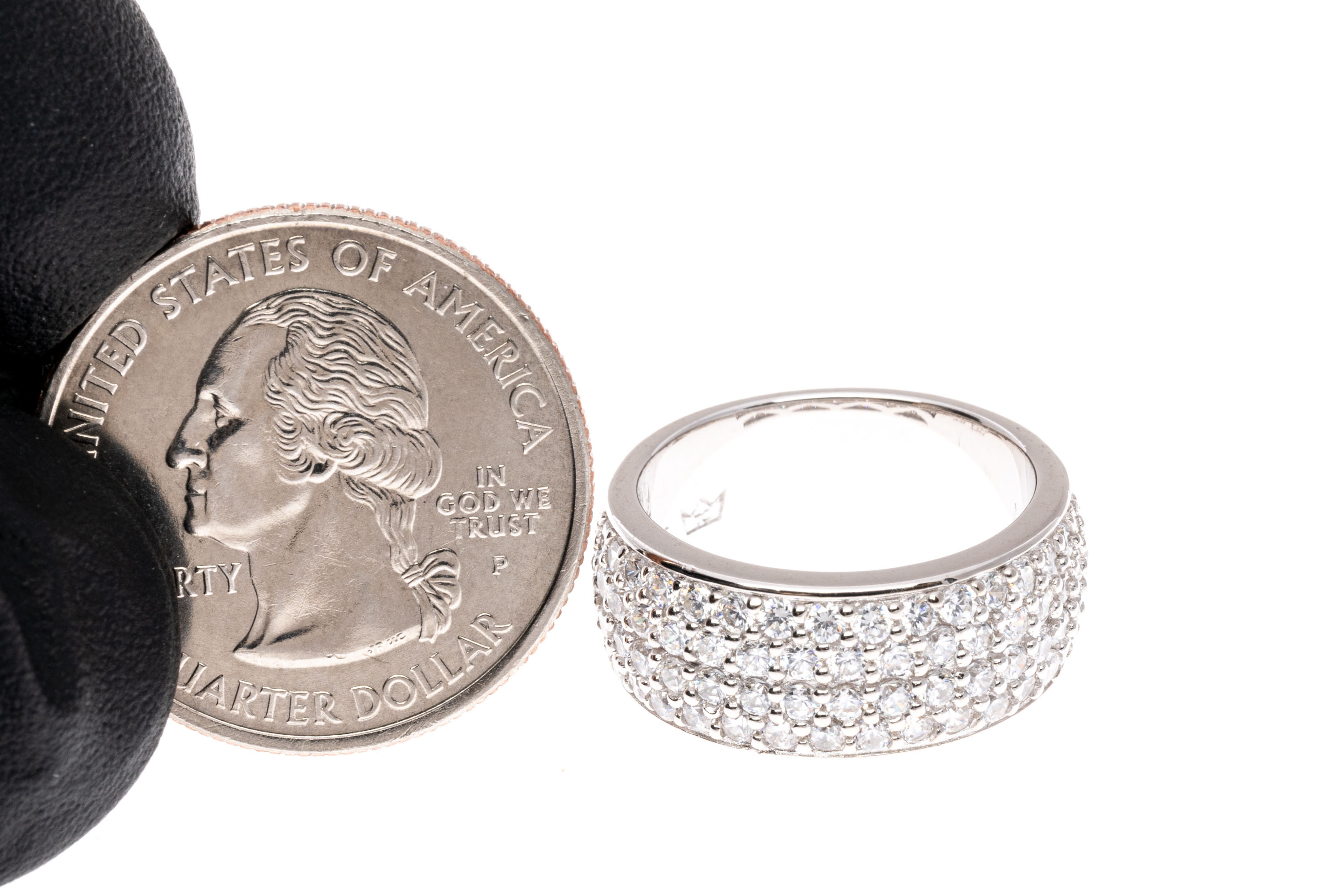 Sterling silver ring. This lovely ring is a wide, high polished finish, four row, round brilliant faceted, clear white color cz stone band ring, pave set.