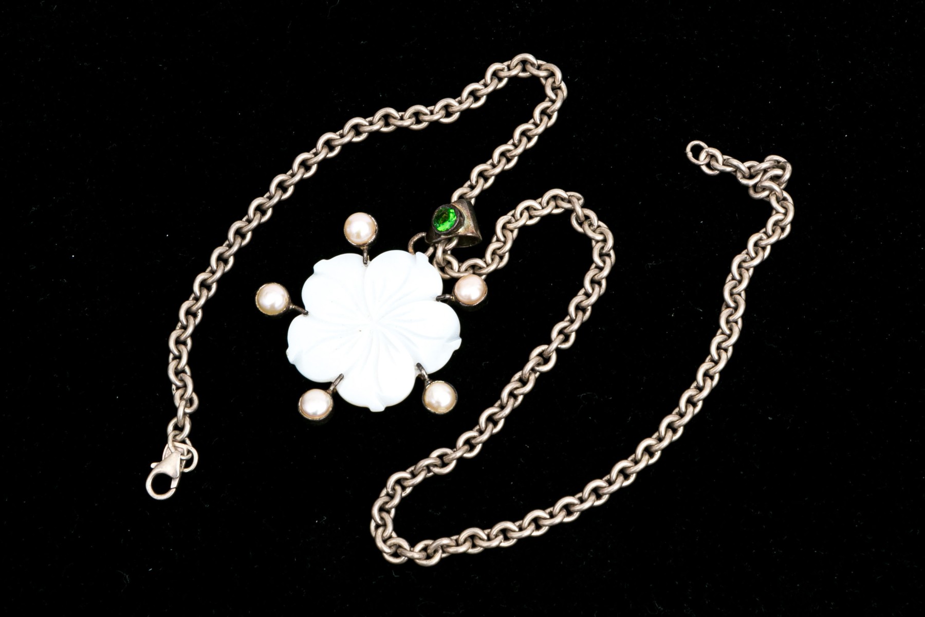 Sterling Silver Lovely Mother-of-pearl Flower Pendant, On Chunky Curb Chain #310075. Black Rock Galleries provides high end estate liquidation services through online estate auctions and a 50,000 sq ft designer showroom. estate liquidator, estate sale, online auction, antiques, fine art, liquidation, clean outs, auction, consignment, interior design, fine jewelry, collectibles, appraisals, estate appraisals, estate services, decor, furniture, furniture consignment, antique center, consignment shop. We offer appraisal services and specialize in fine art, jewelry, antiques and decorative arts. Sell with us. Black Rock Galleries is the tri-state's largest estate liquidator serving New England and the greater New York City area. We are the trusted source for expert appraisals, auction services, estate sales, and consignments. Black Rock Galleries is the east coast's largest and most trusted estate liquidator, with locations in Connecticut, greater Boston, MA and Raleigh, NC, Fairfield, Southport, Apex, TX. We are the best source for expert appraisals, auction services, estate sales and consignments. We have served thousands of families and estates with compassion, professionalism and expertise. BRG works with attorneys, executors, realtors and families to bring the greatest return on personal and estate property in the current market. Our unique combination of services make us the easy choice to get the job done in a timely and stress-free manner. We are with you from the initial consultation to the final clean out. Our house-built online auction software platform offers clients a dynamic approach to liquidating their personal property. This venue is most successful in bringing the best return with the least amount of disruption for our clients. See our services page for a complete description of this offering. Sterling Silver Lovely Mother-of-pearl Flower Pendant, On Chunky Curb Chain #310075