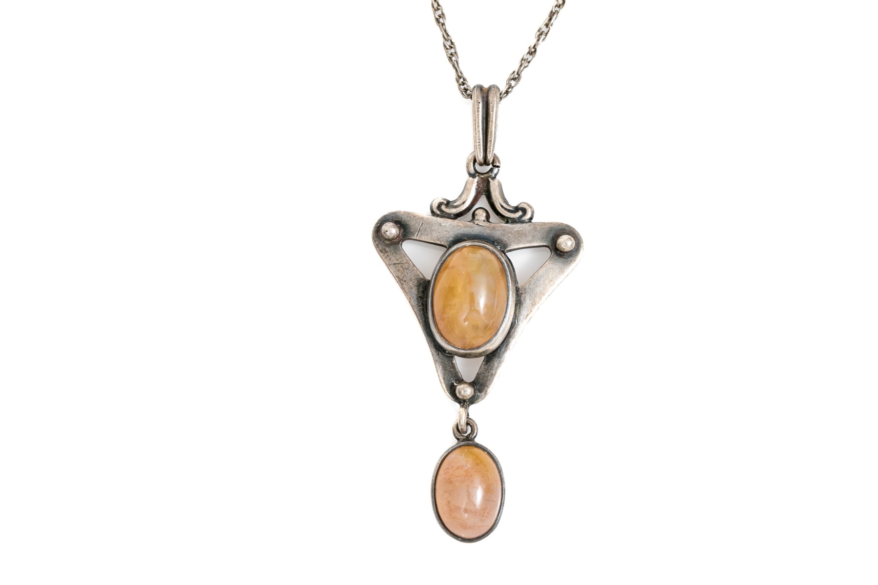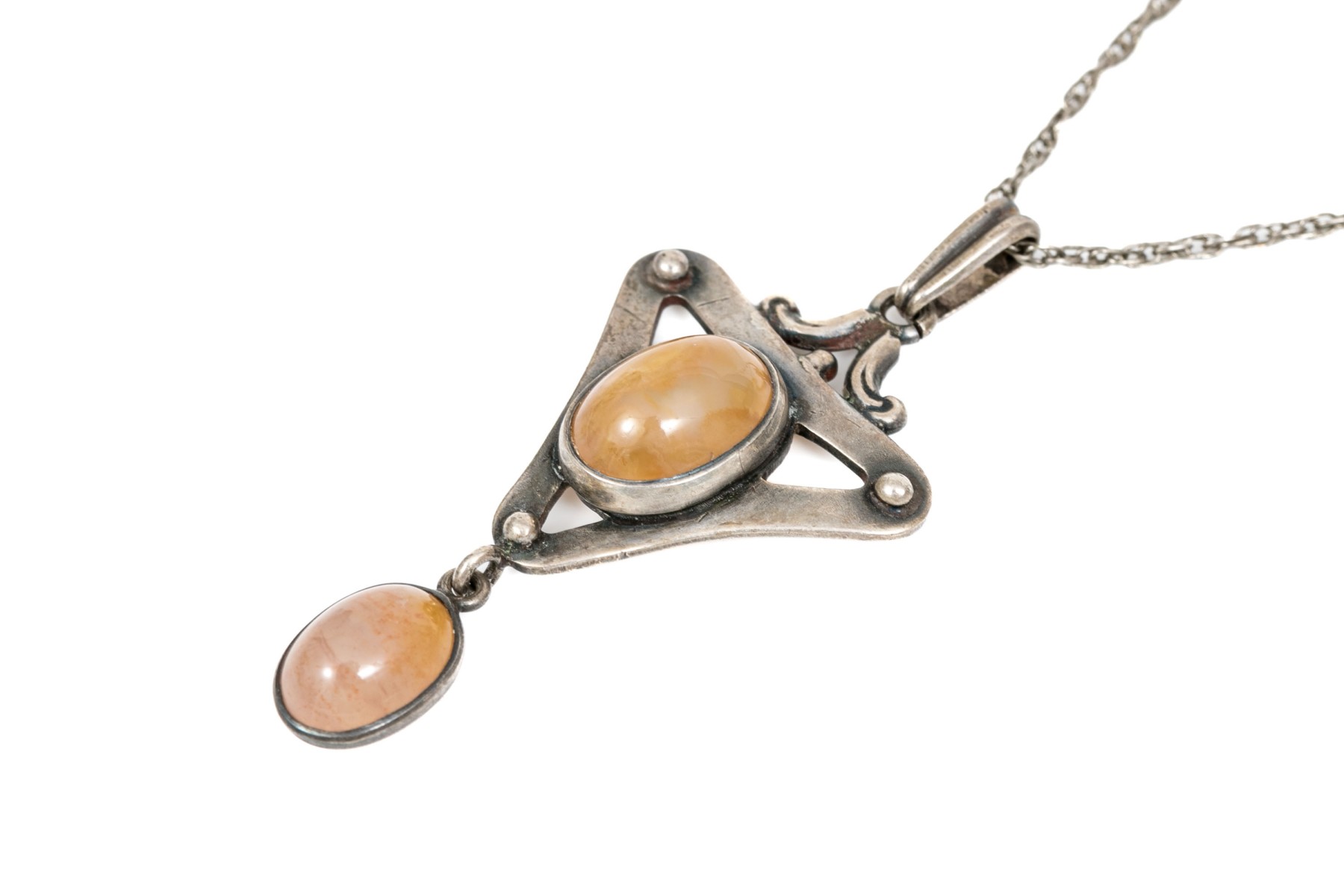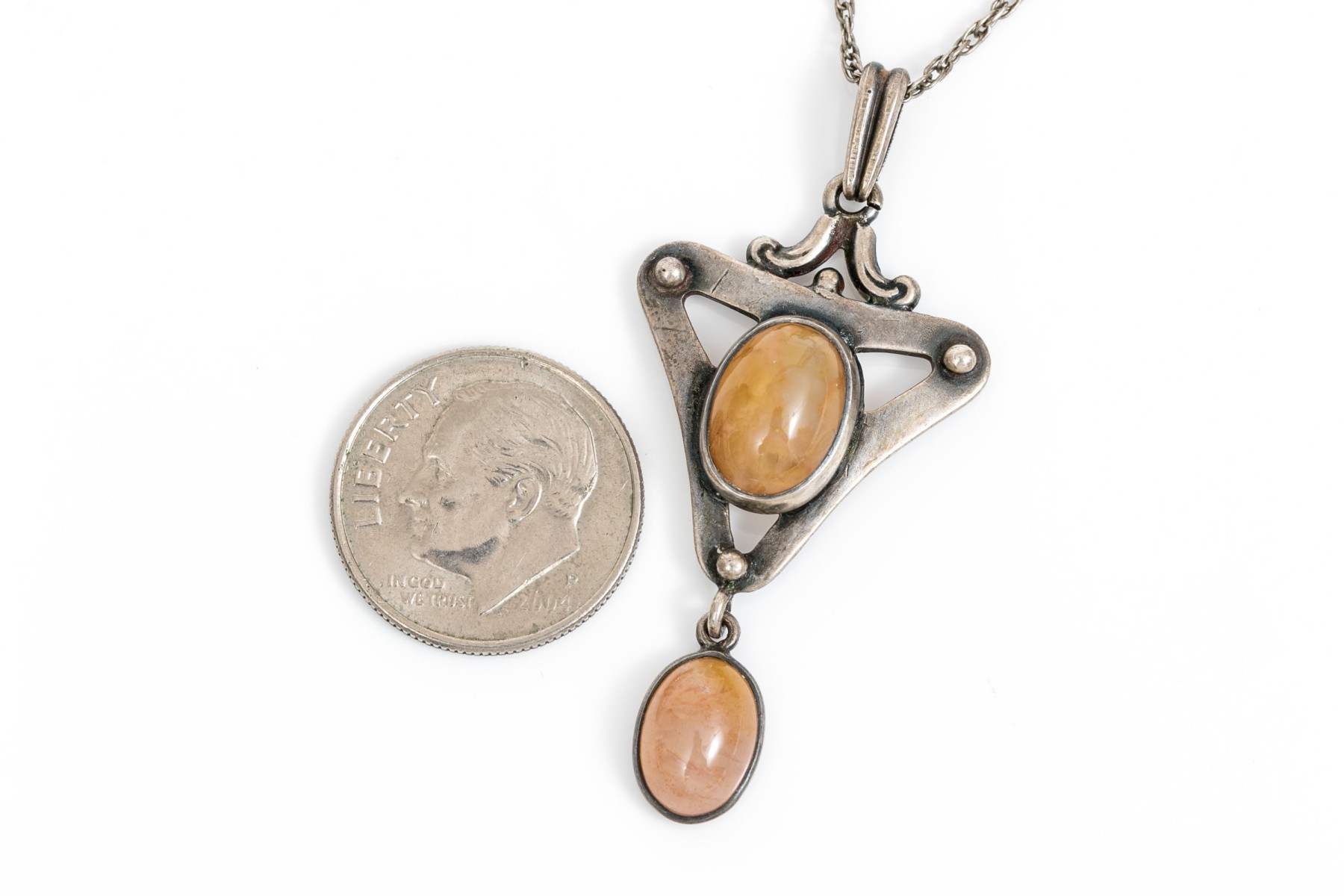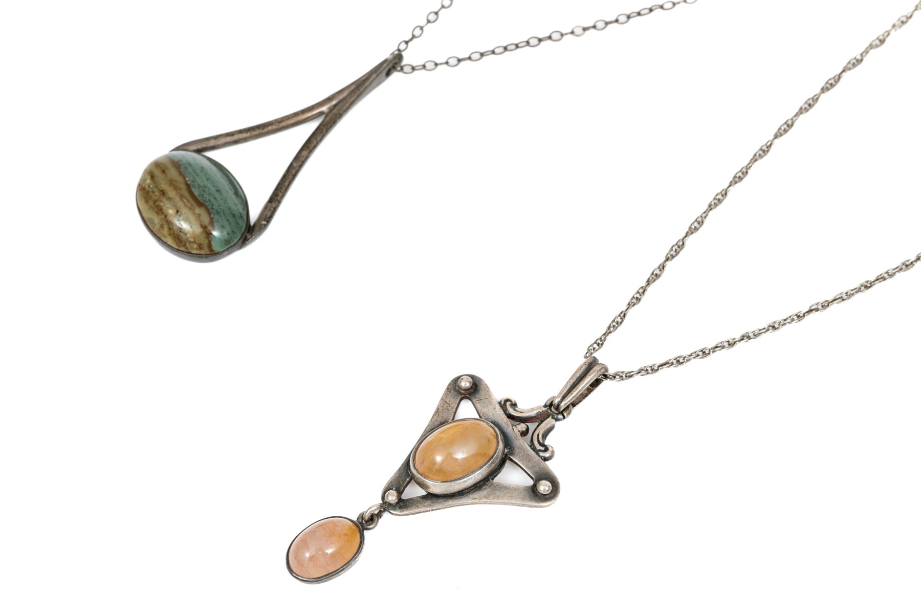 Sterling silver lovely pair of complementary chalcedony and agate pendants, with chains