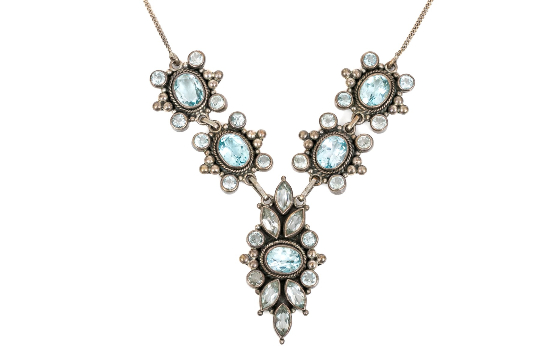 Sterling Silver Lovely Pale Blue Topaz Cluster Necklace #307351. Black Rock Galleries provides high end estate liquidation services through online estate auctions and a 50,000 sq ft designer showroom. estate liquidator, estate sale, online auction, antiques, fine art, liquidation, clean outs, auction, consignment, interior design, fine jewelry, collectibles, appraisals, estate appraisals, estate services, decor, furniture, furniture consignment, antique center, consignment shop. We offer appraisal services and specialize in fine art, jewelry, antiques and decorative arts. Sell with us. Black Rock Galleries is the tri-state's largest estate liquidator serving New England and the greater New York City area. We are the trusted source for expert appraisals, auction services, estate sales, and consignments. Black Rock Galleries is the east coast's largest and most trusted estate liquidator, with locations in Connecticut, greater Boston, MA and Raleigh, NC, Fairfield, Southport, Apex, TX. We are the best source for expert appraisals, auction services, estate sales and consignments. We have served thousands of families and estates with compassion, professionalism and expertise. BRG works with attorneys, executors, realtors and families to bring the greatest return on personal and estate property in the current market. Our unique combination of services make us the easy choice to get the job done in a timely and stress-free manner. We are with you from the initial consultation to the final clean out. Our house-built online auction software platform offers clients a dynamic approach to liquidating their personal property. This venue is most successful in bringing the best return with the least amount of disruption for our clients. See our services page for a complete description of this offering. Sterling Silver Lovely Pale Blue Topaz Cluster Necklace #307351