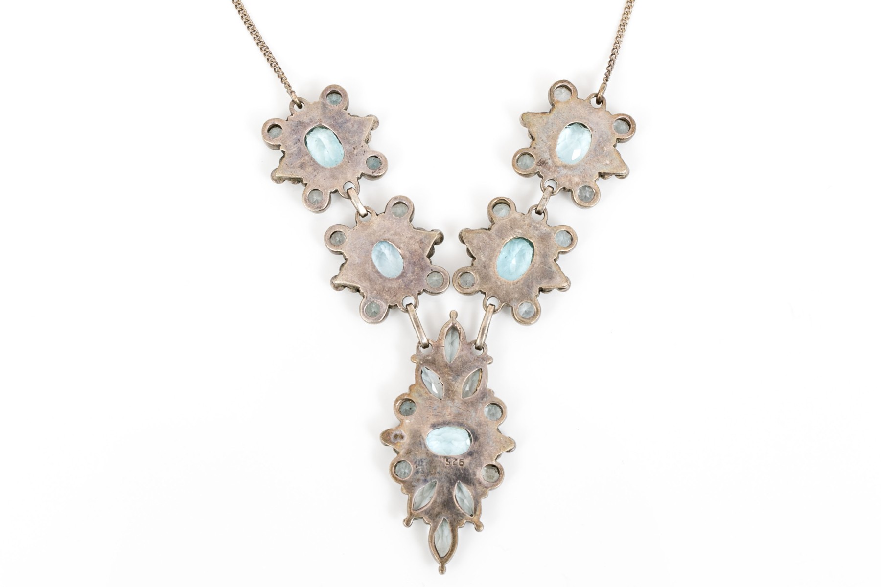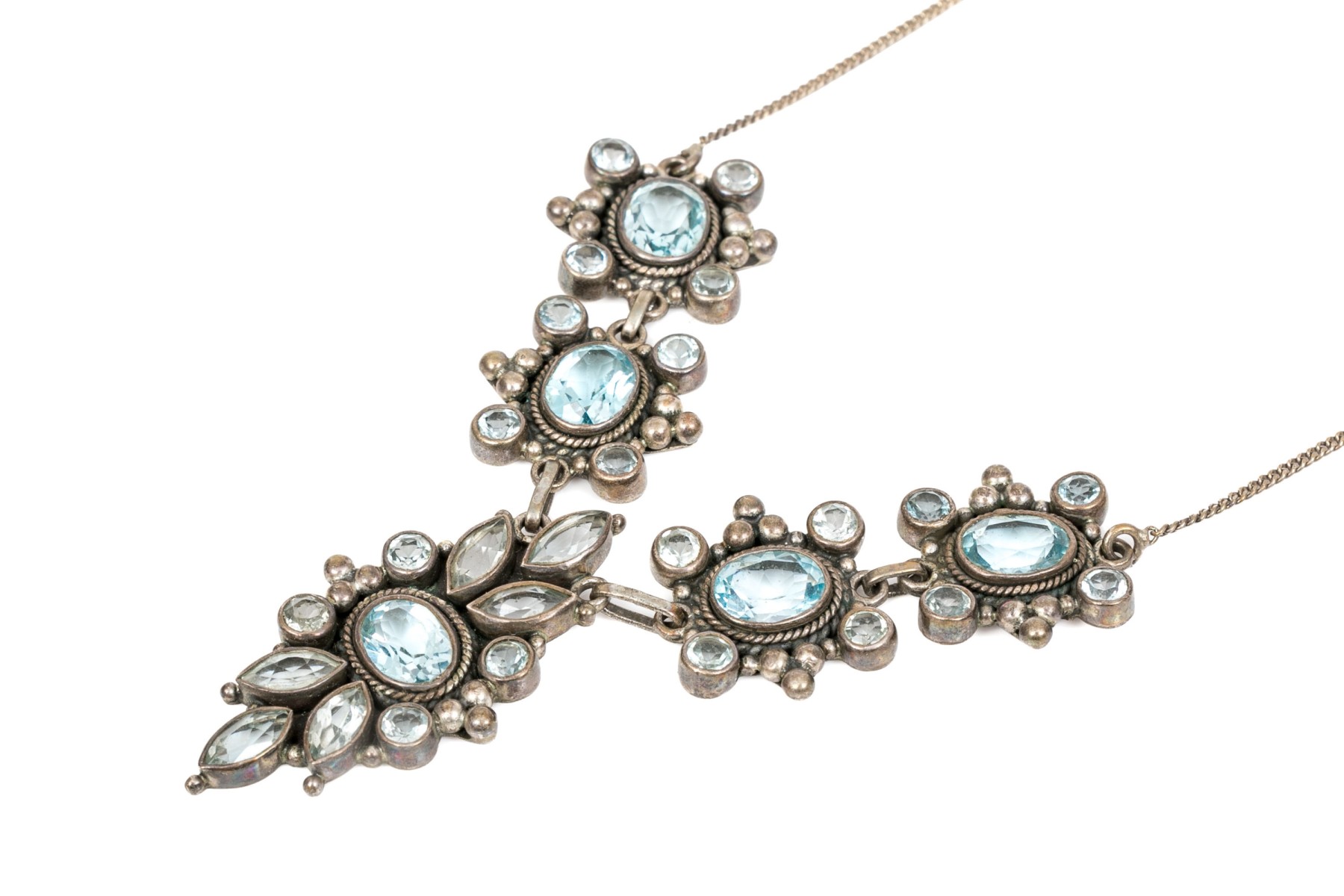 Sterling silver lovely pale blue topaz cluster necklace, bezel set and finished with a spring ring style clasp