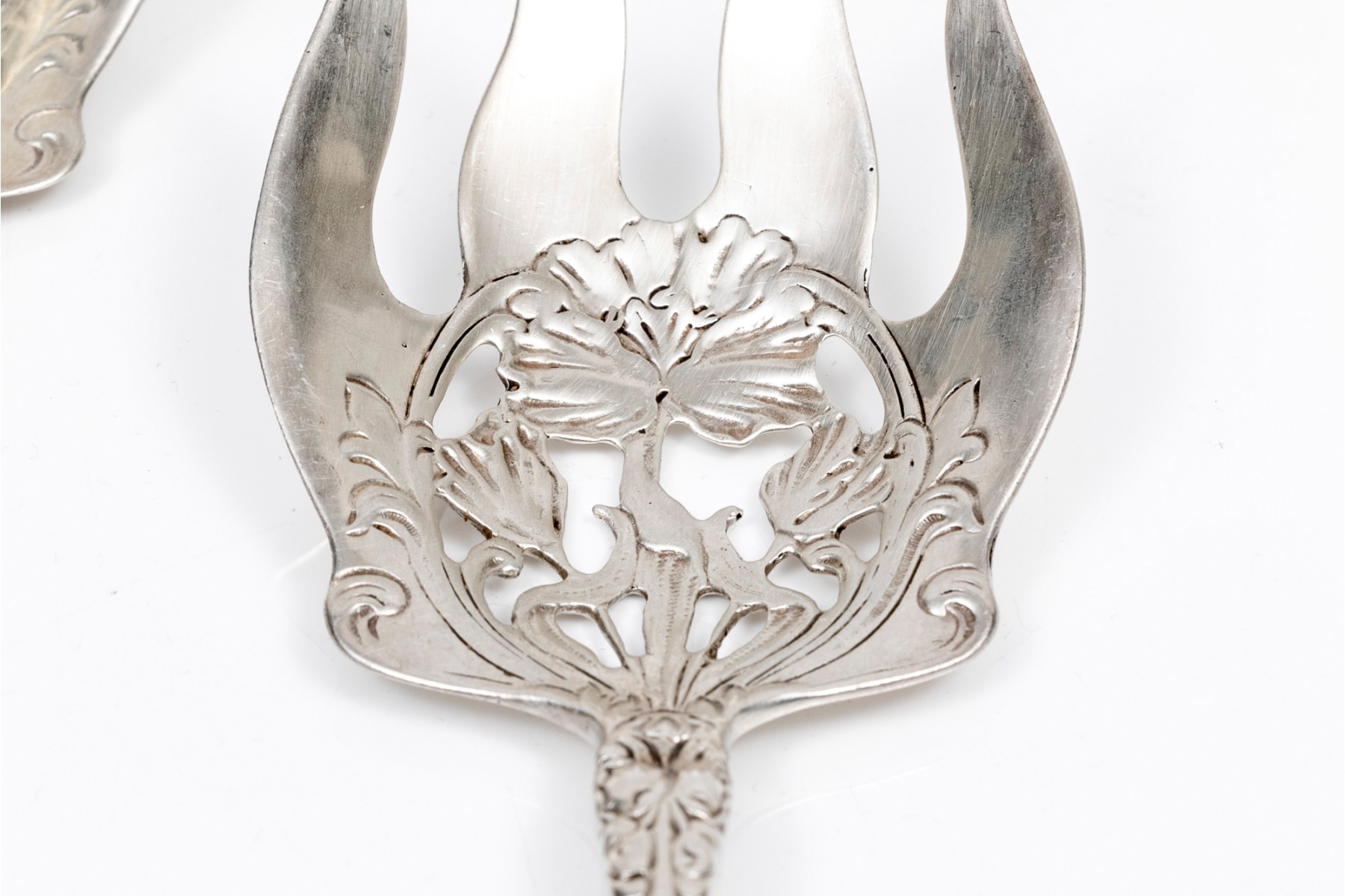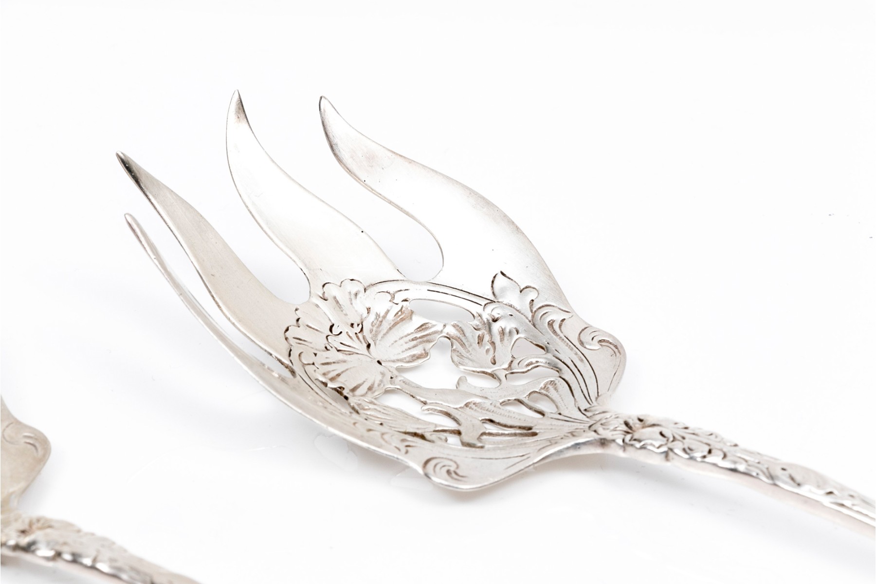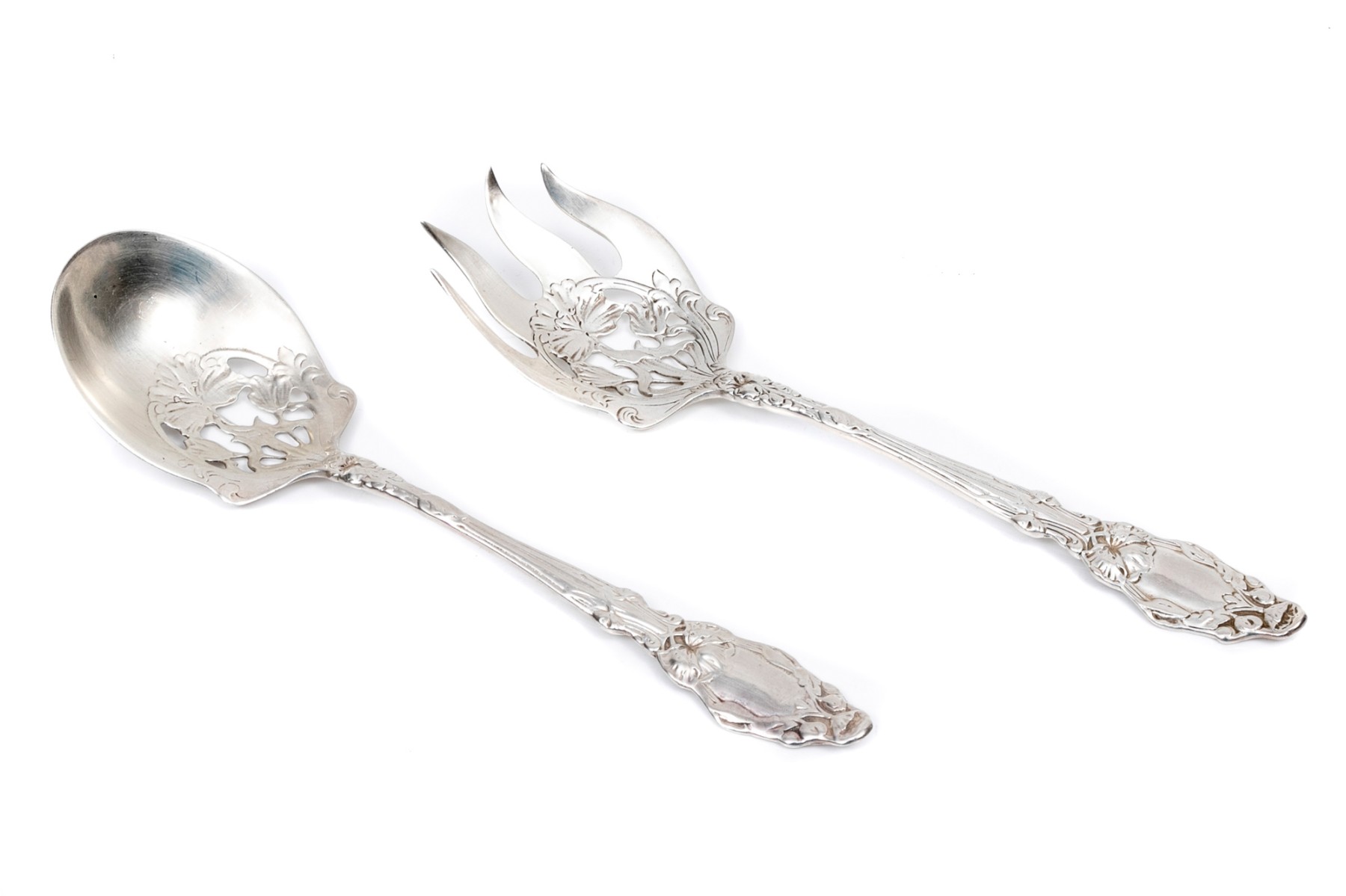 Sterling silver lovely vintage pierced flower motif serving fork and spoon