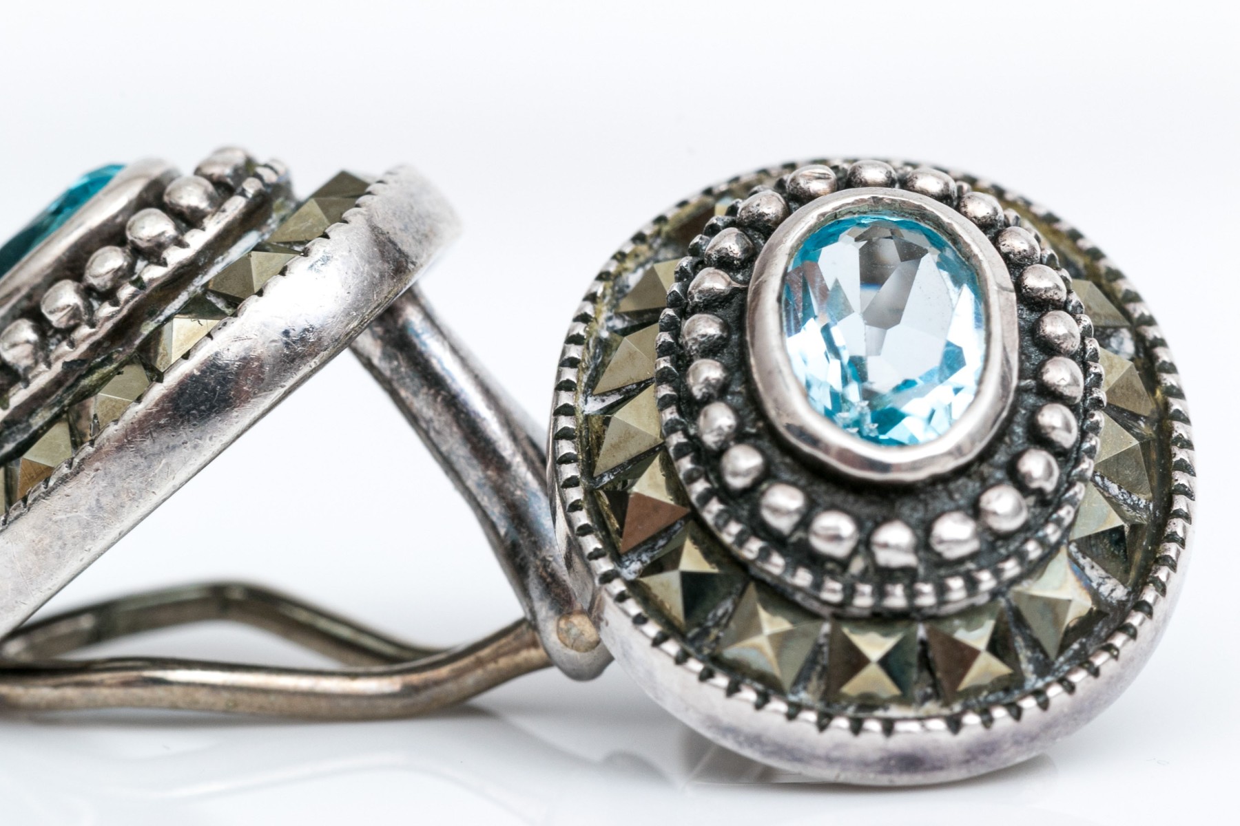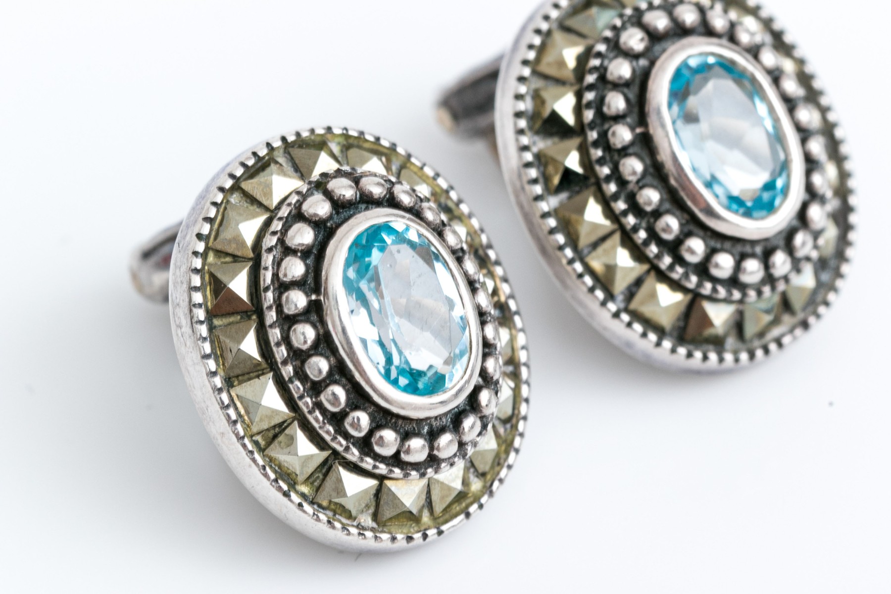 Sterling Silver Oval Blue Topaz Earrings, Bead And Pyramid Bezeled #327551. Black Rock Galleries provides high end estate liquidation services through online estate auctions and a 50,000 sq ft designer showroom. estate liquidator, estate sale, online auction, antiques, fine art, liquidation, clean outs, auction, consignment, interior design, fine jewelry, collectibles, appraisals, estate appraisals, estate services, decor, furniture, furniture consignment, antique center, consignment shop. We offer appraisal services and specialize in fine art, jewelry, antiques and decorative arts. Sell with us. Black Rock Galleries is the tri-state's largest estate liquidator serving New England and the greater New York City area. We are the trusted source for expert appraisals, auction services, estate sales, and consignments. Black Rock Galleries is the east coast's largest and most trusted estate liquidator, with locations in Connecticut, greater Boston, MA and Raleigh, NC, Fairfield, Southport, Apex, TX. We are the best source for expert appraisals, auction services, estate sales and consignments. We have served thousands of families and estates with compassion, professionalism and expertise. BRG works with attorneys, executors, realtors and families to bring the greatest return on personal and estate property in the current market. Our unique combination of services make us the easy choice to get the job done in a timely and stress-free manner. We are with you from the initial consultation to the final clean out. Our house-built online auction software platform offers clients a dynamic approach to liquidating their personal property. This venue is most successful in bringing the best return with the least amount of disruption for our clients. See our services page for a complete description of this offering. Sterling Silver Oval Blue Topaz Earrings, Bead And Pyramid Bezeled #327551