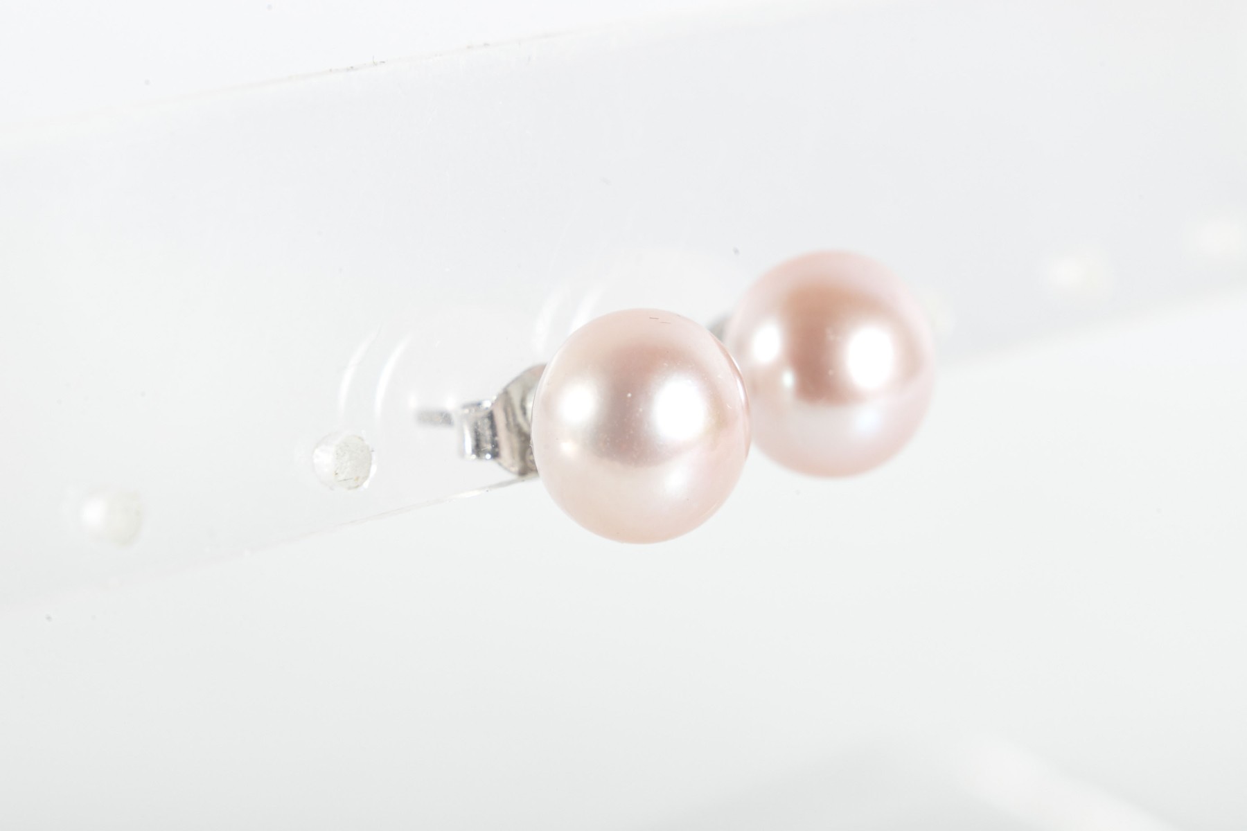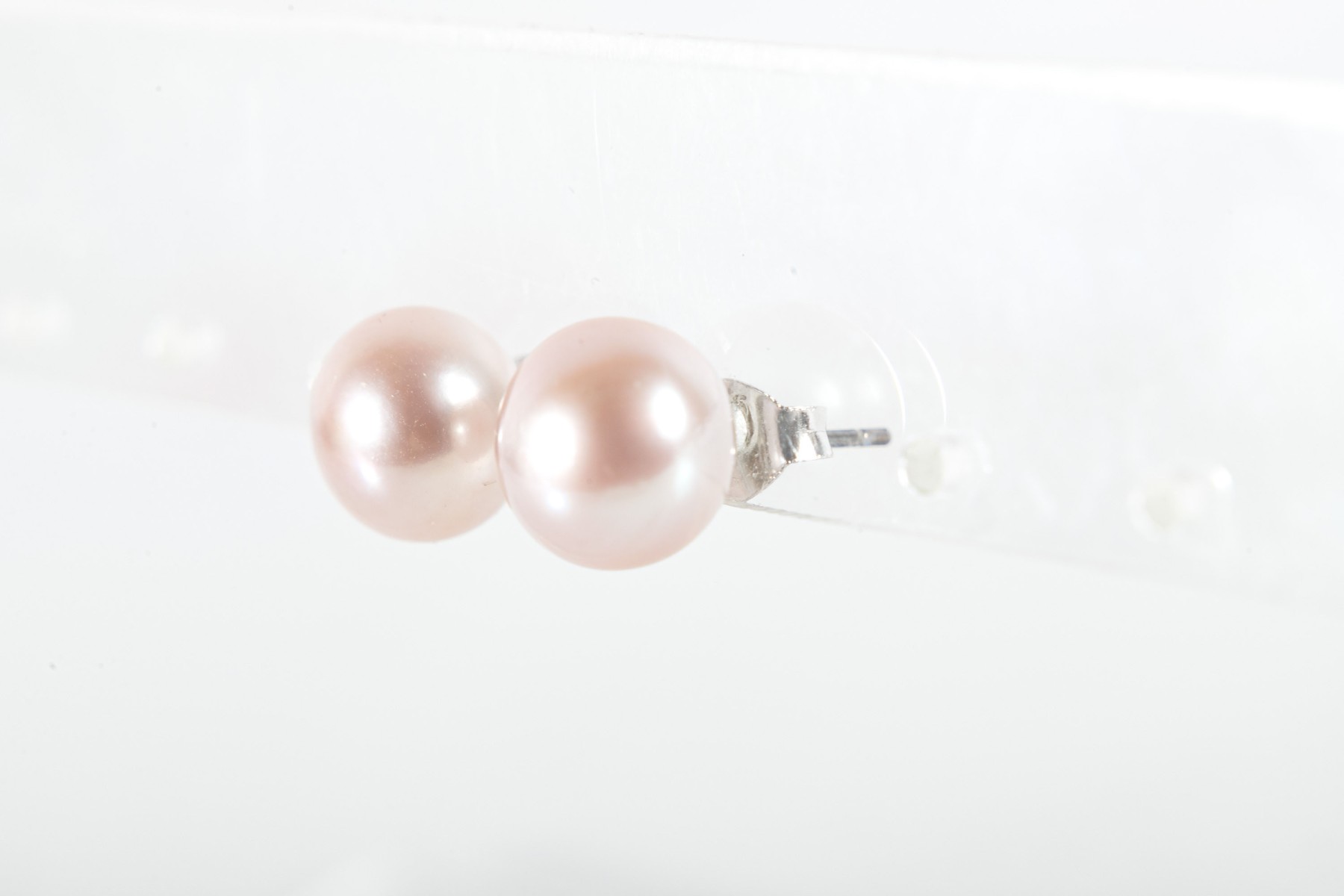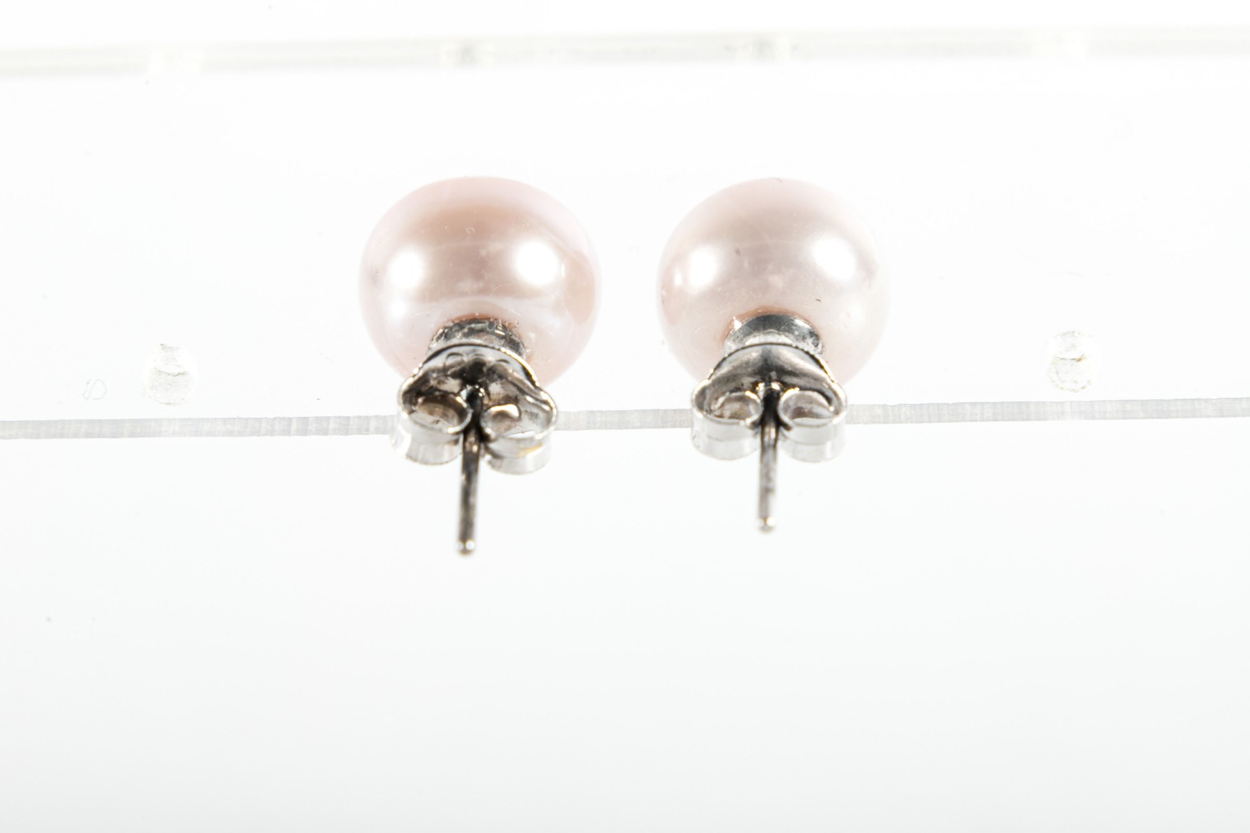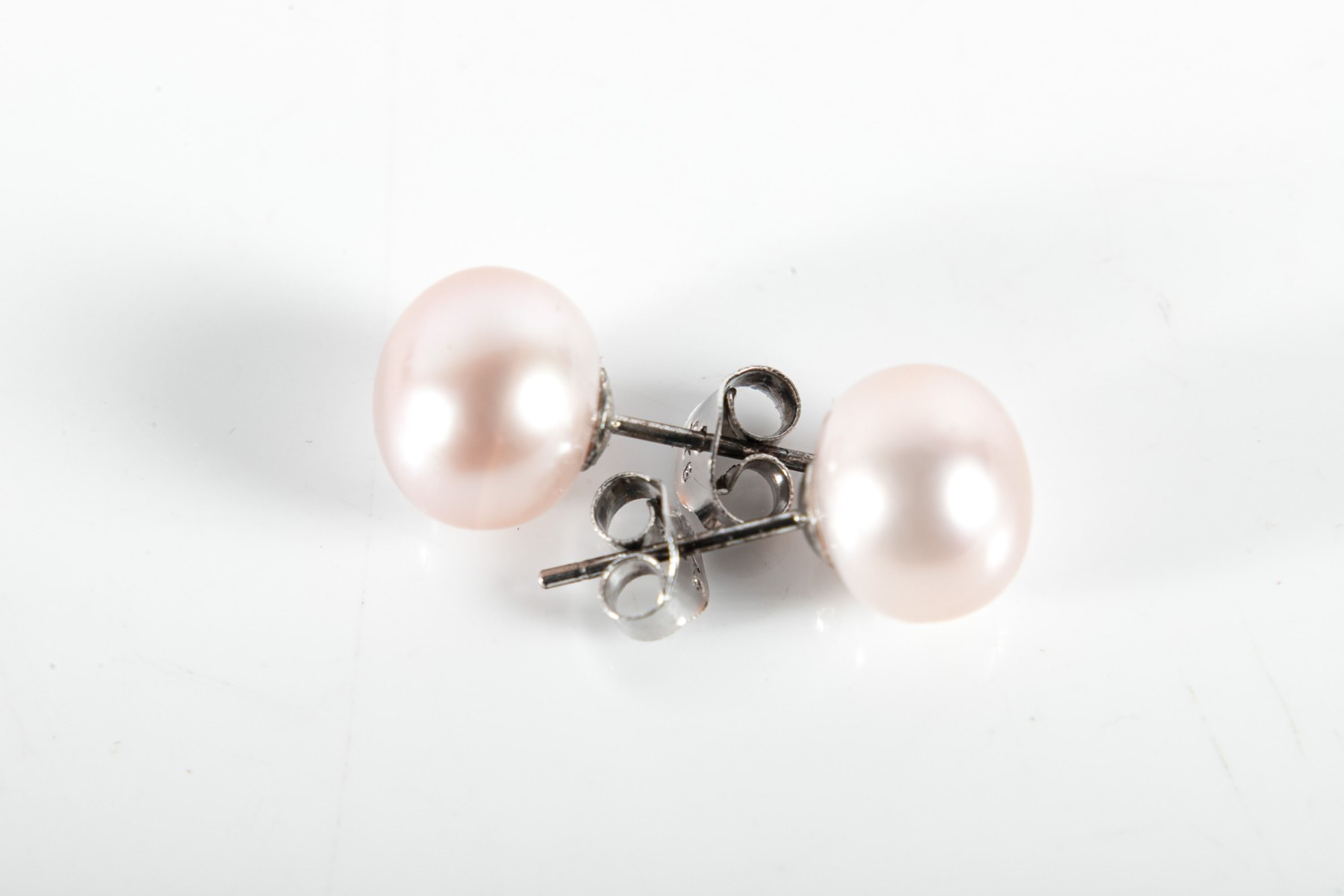 A simple and pretty pair of sterling silver studs displaying pale pink cultured pearls.