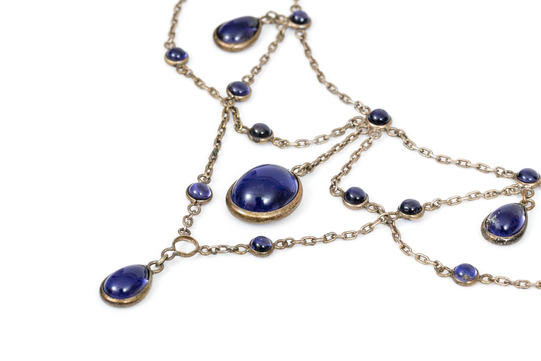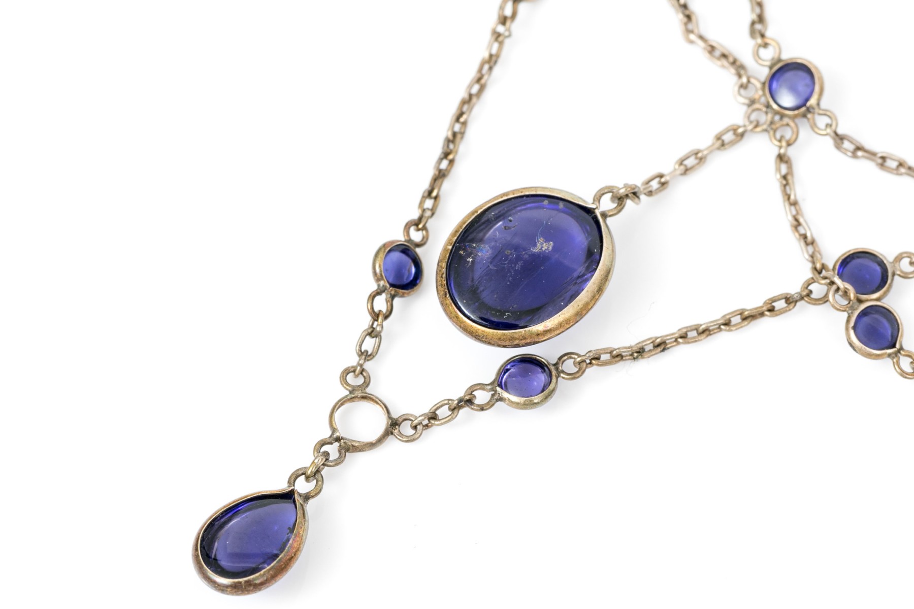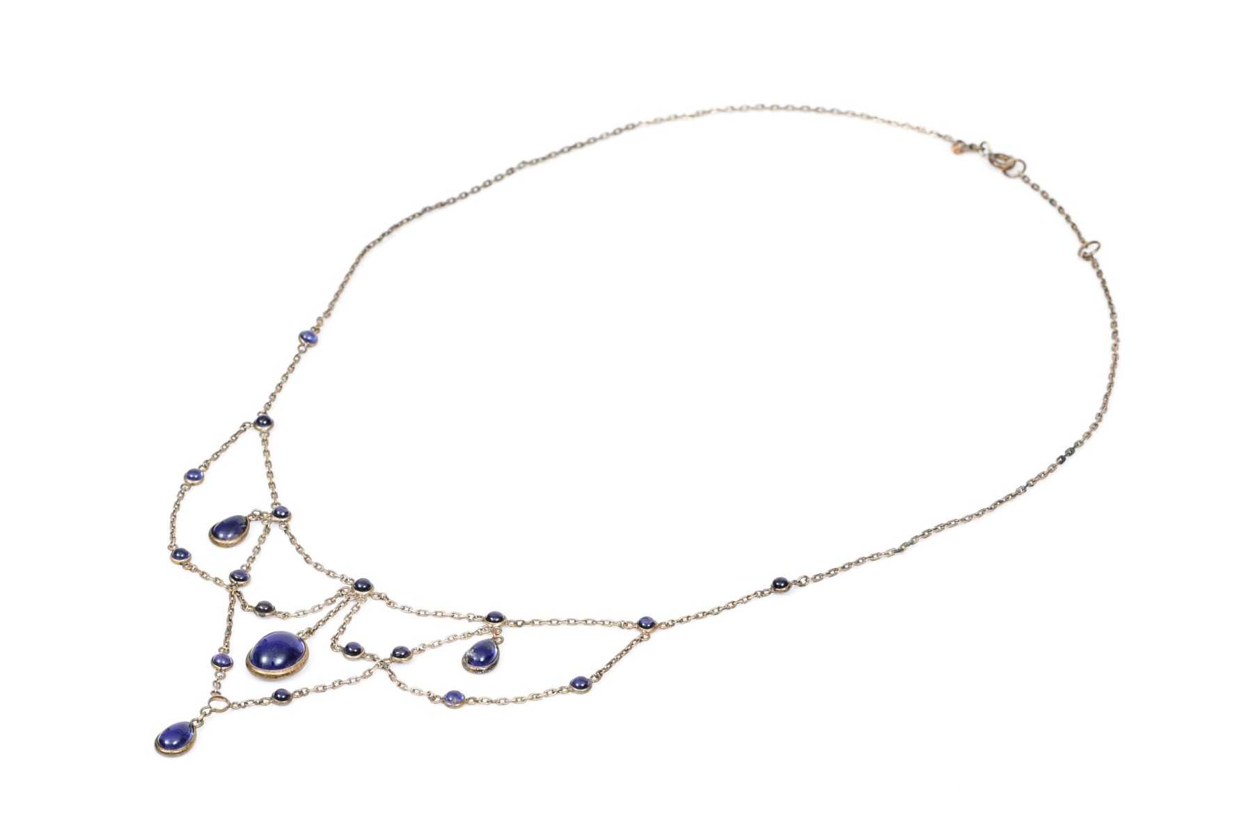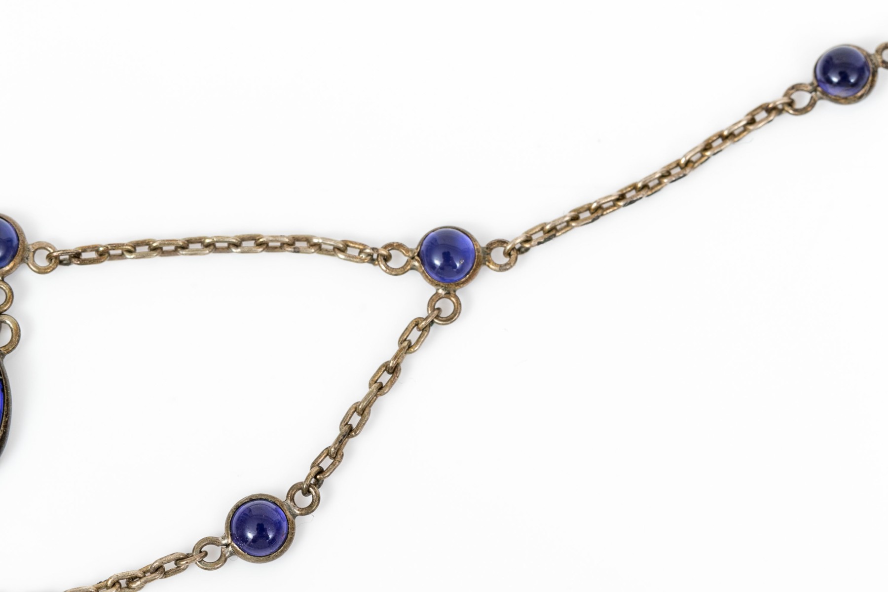 Sterling silver pretty blue glass festooned necklace, finished with a spring ring clasp