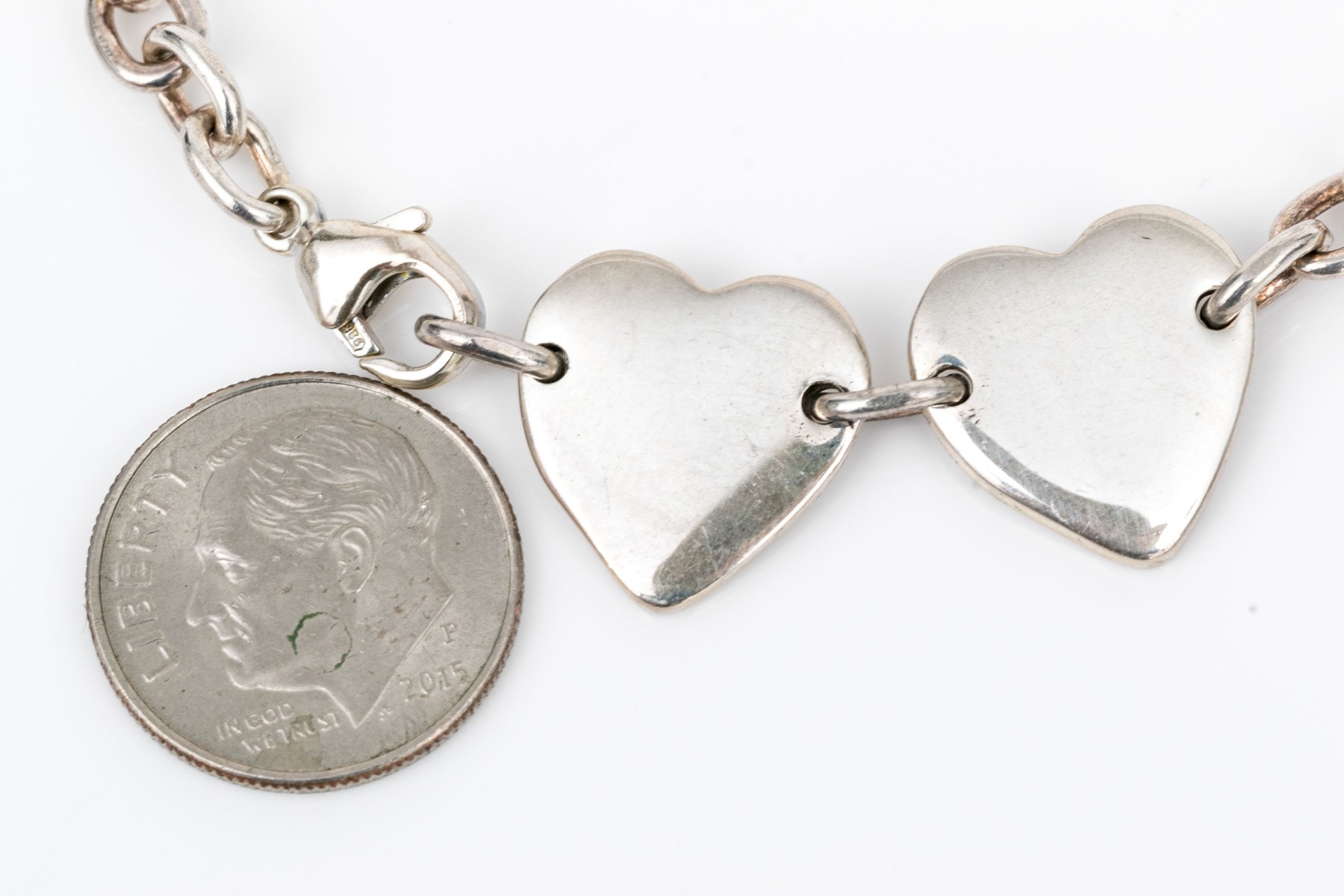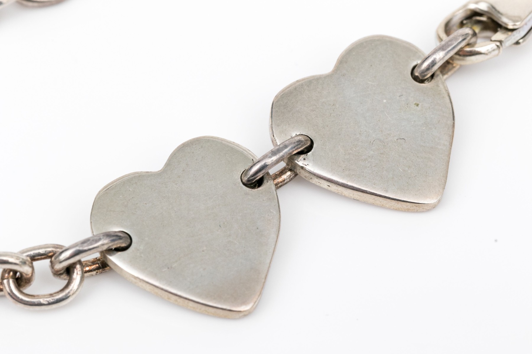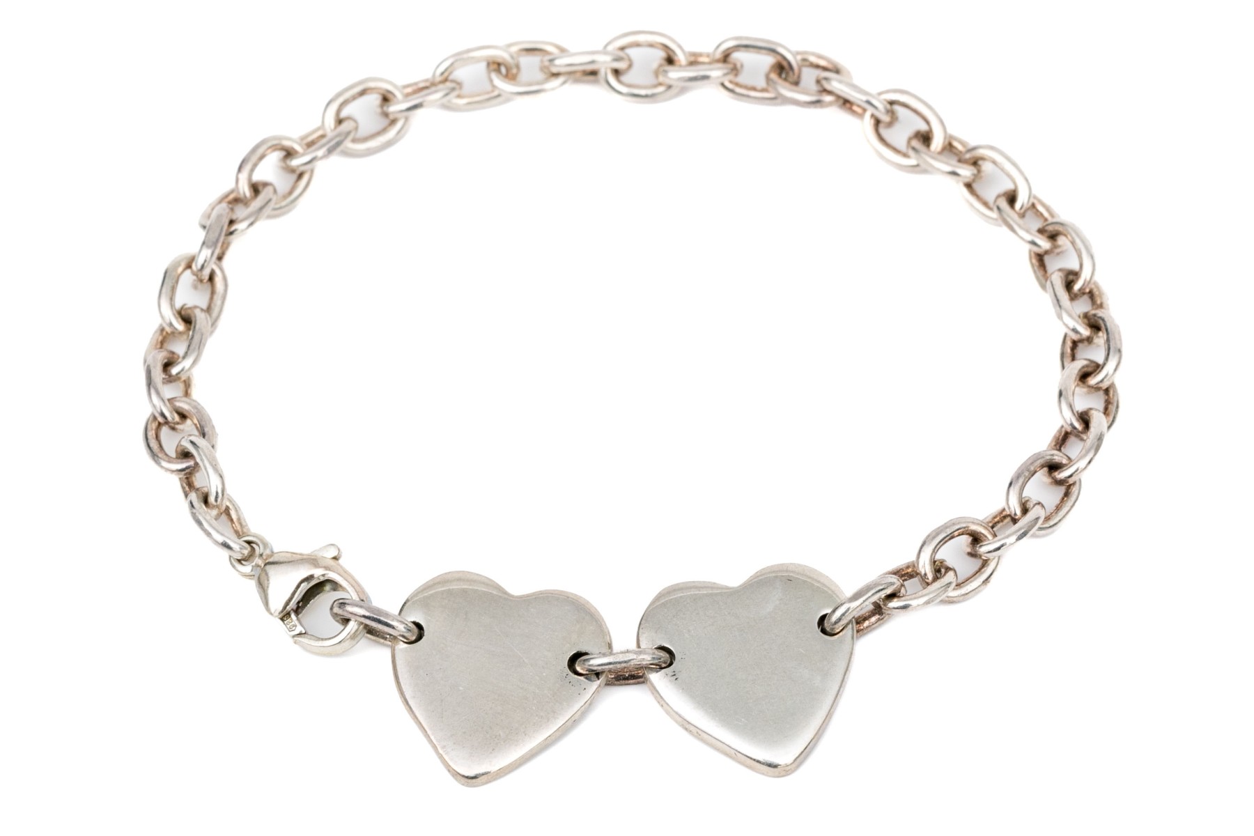 Sterling silver pretty double heart Id style bracelet, finished with a lobster claw clasp