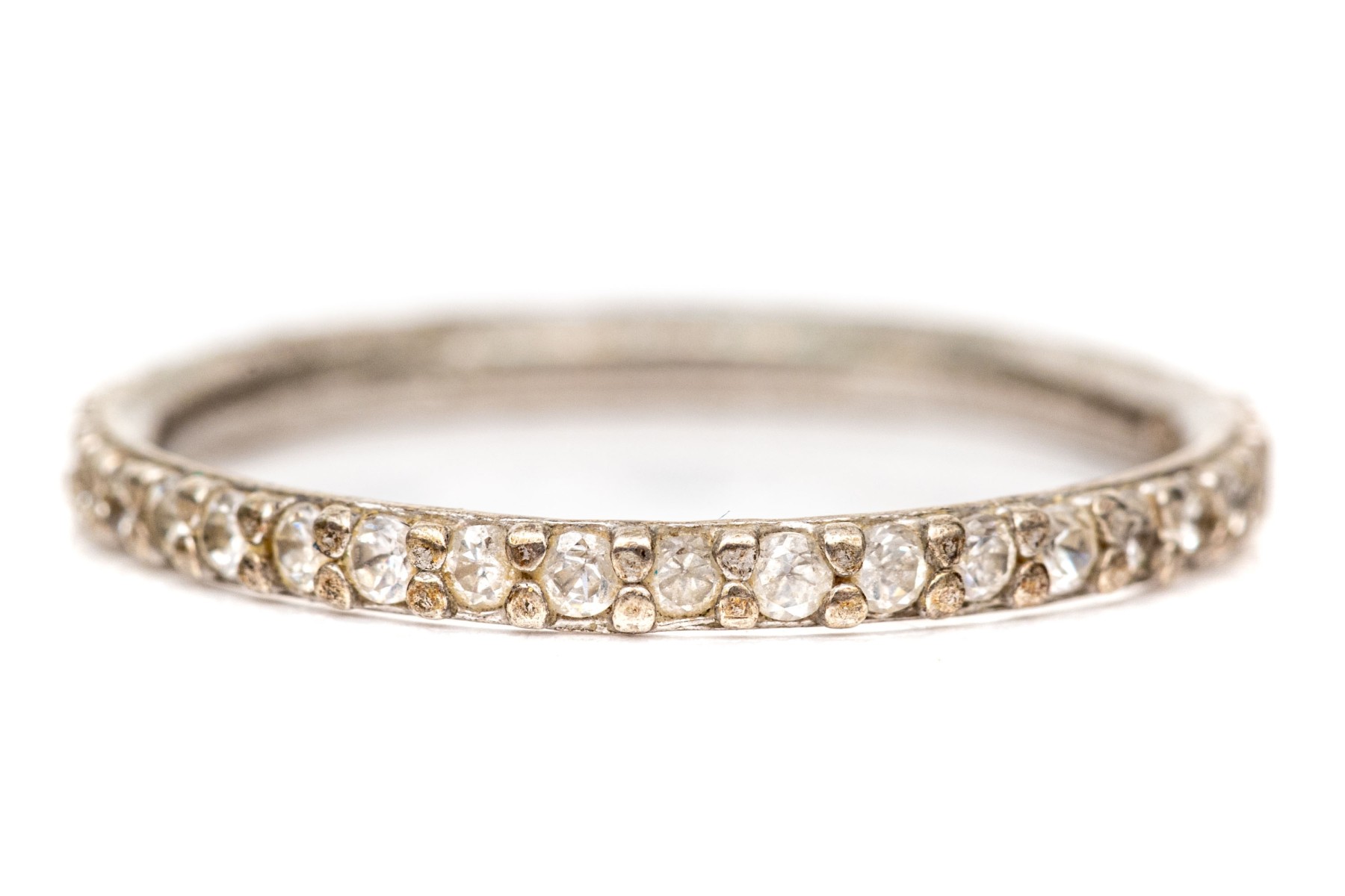 Sterling silver prong set cz eternity band, size 7, please see sizing note