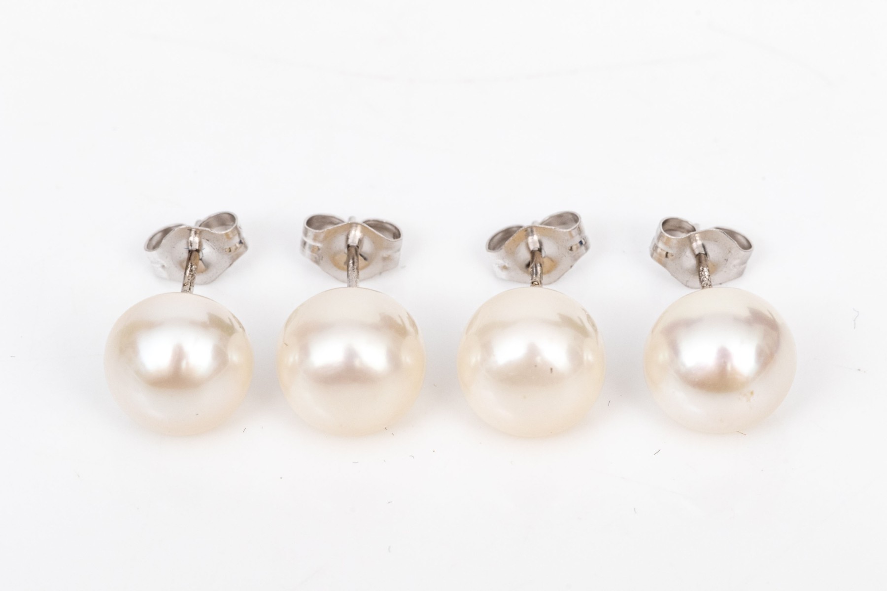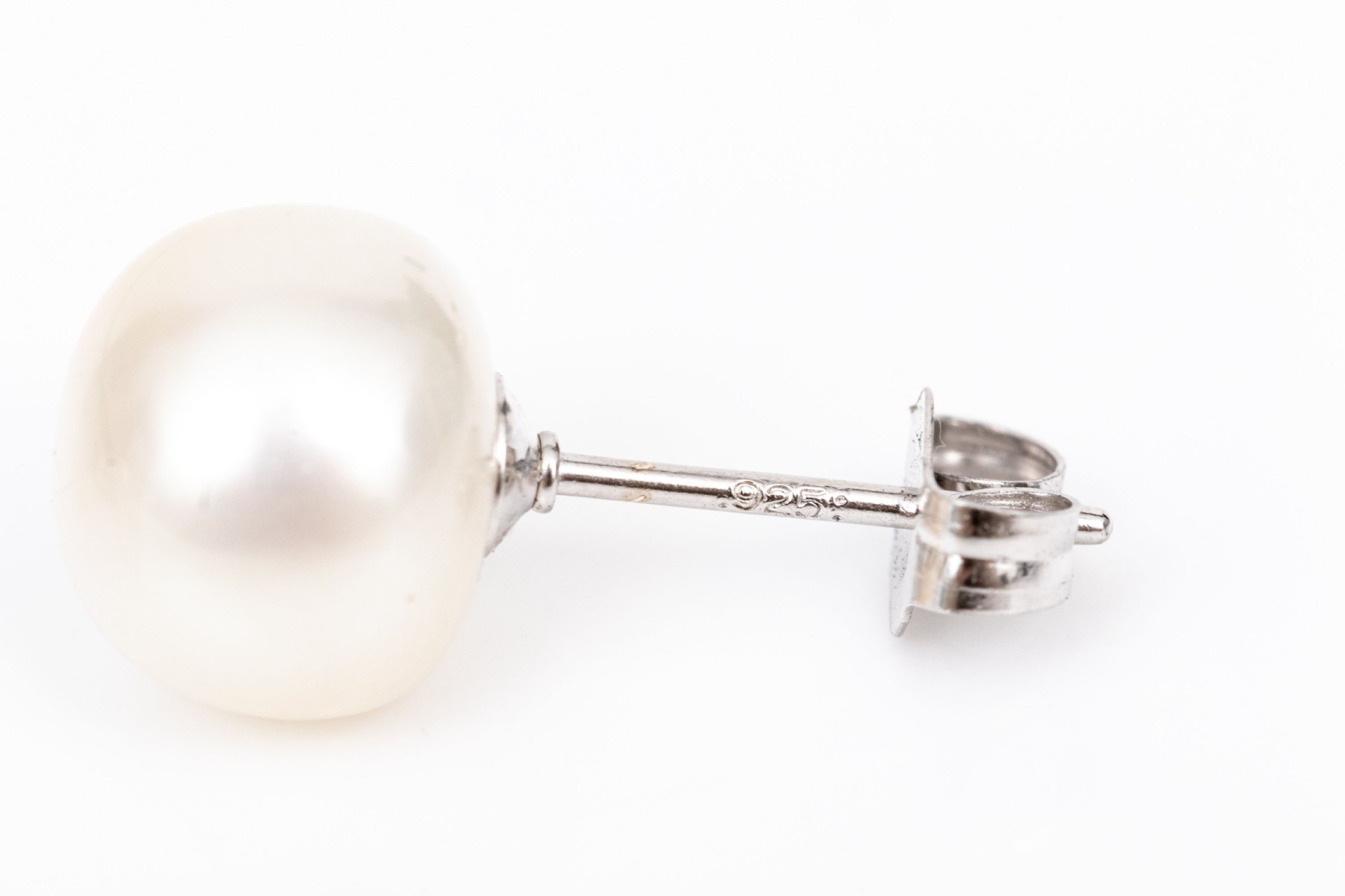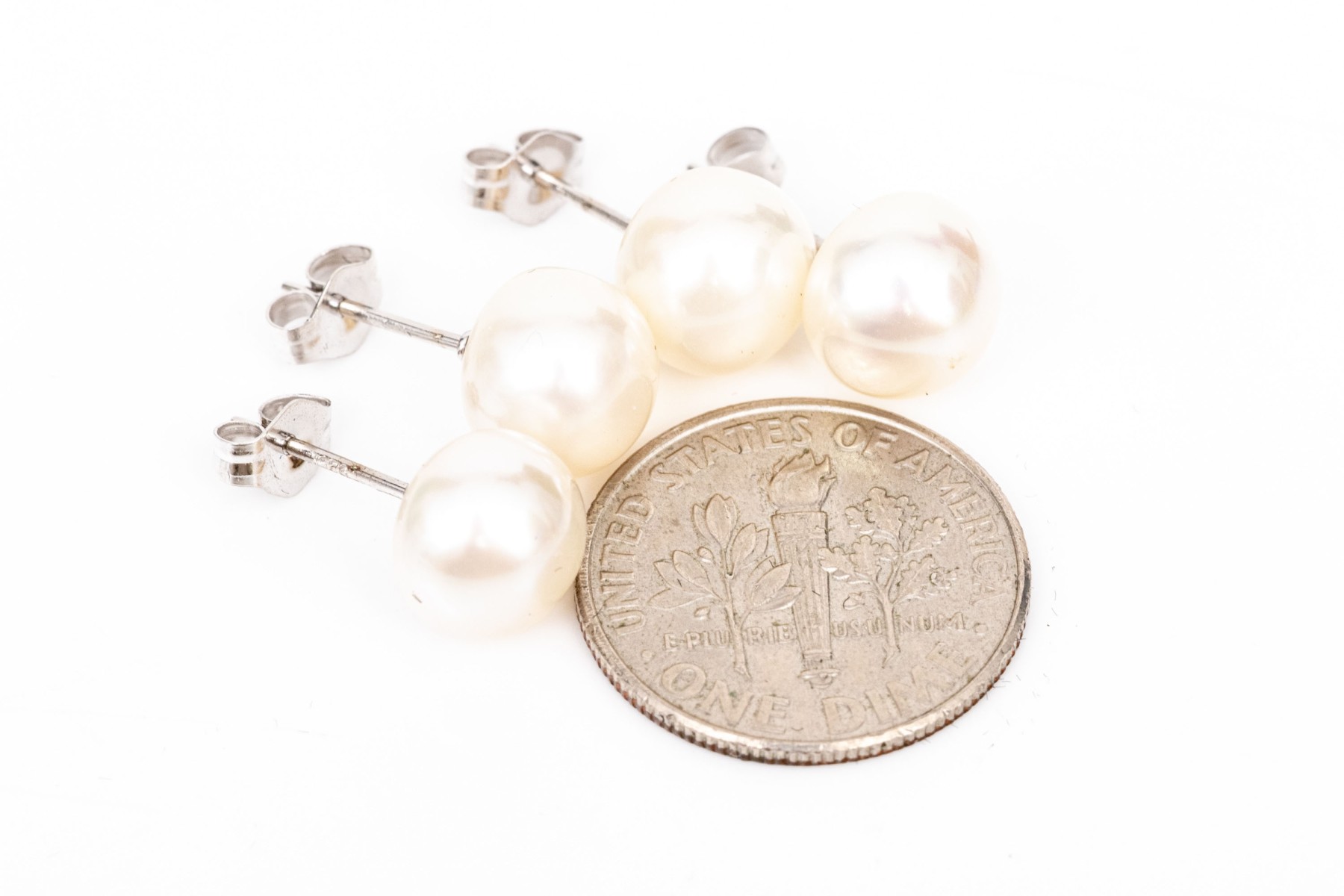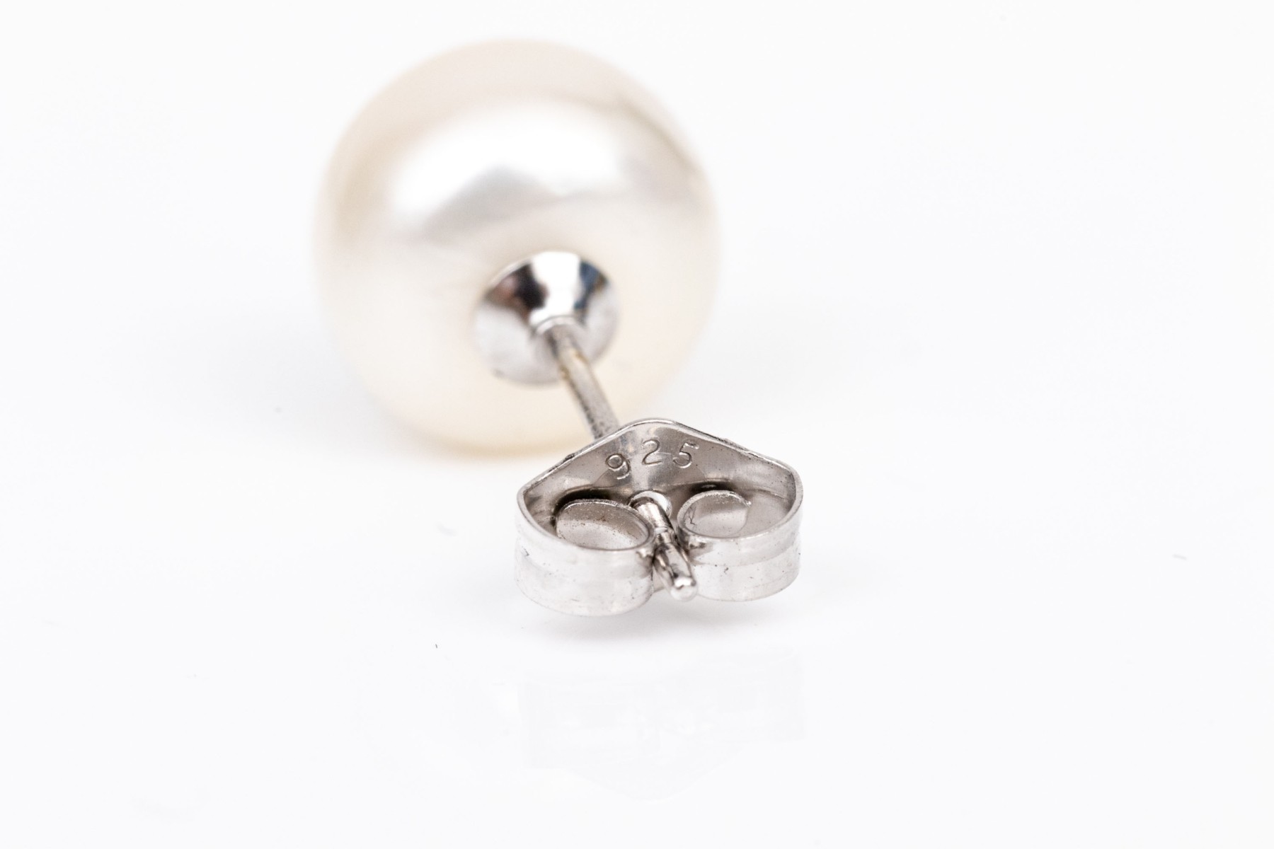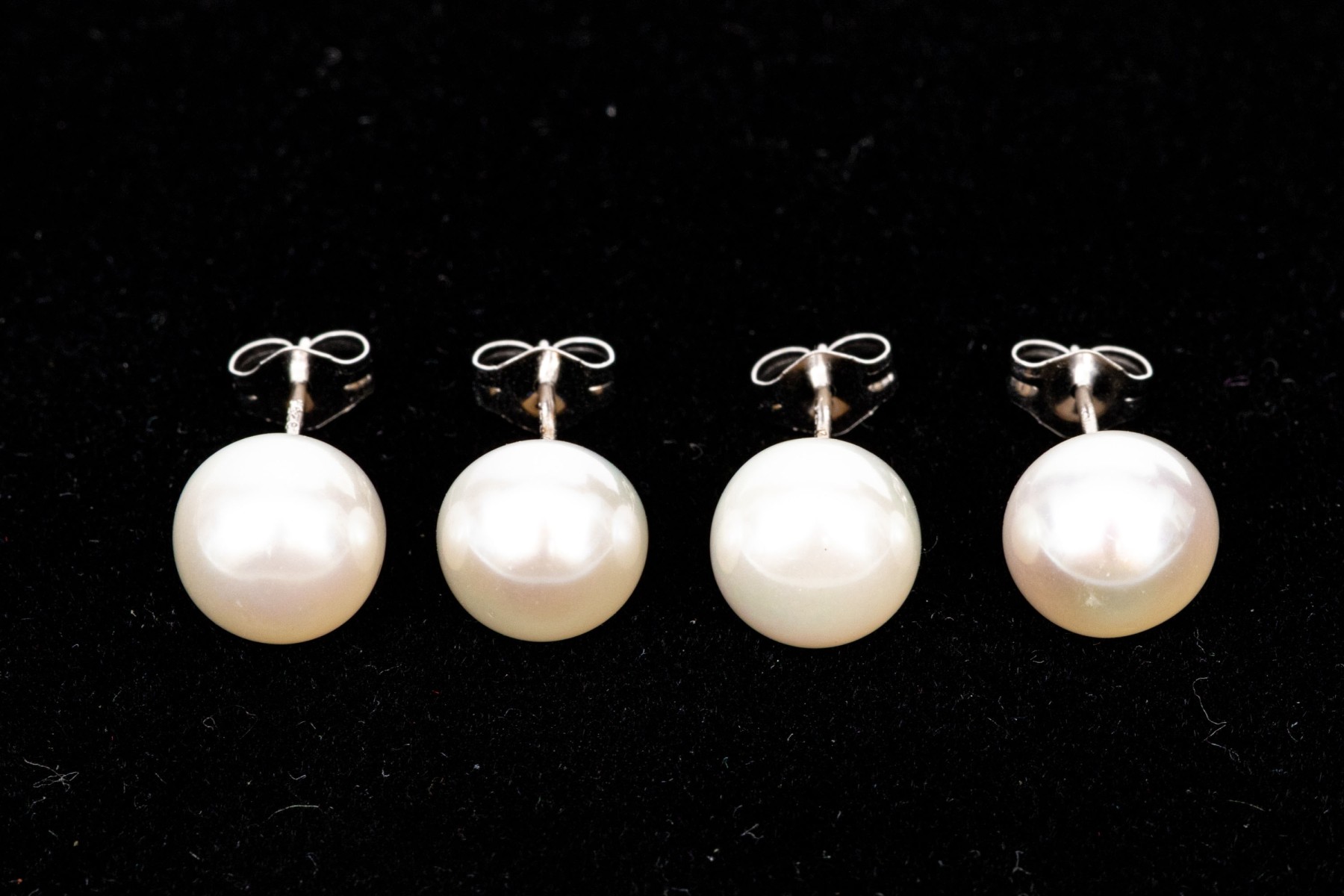 Two pairs of 8.25mm cultured freshwater pearl stud earrings with sterling silver posts, finished with clutch style backs