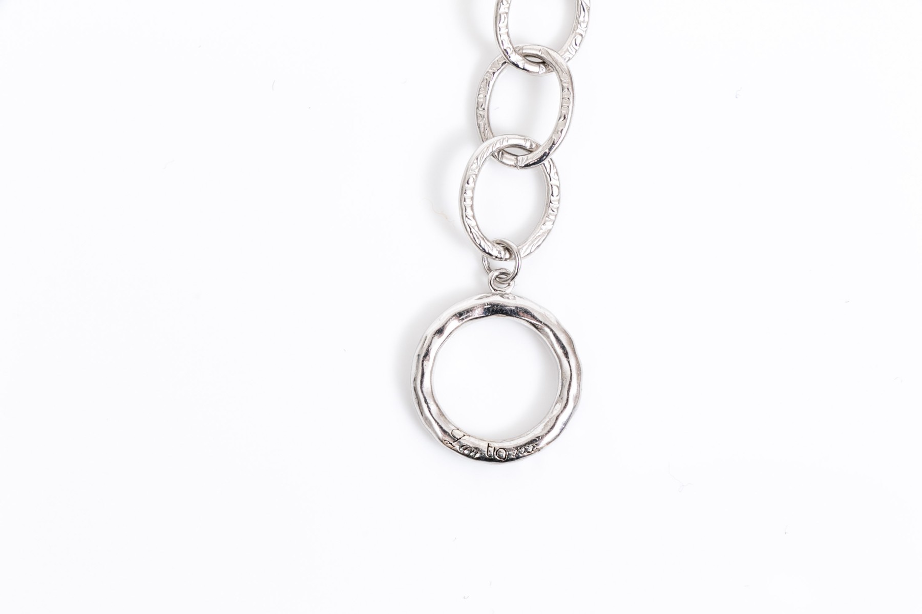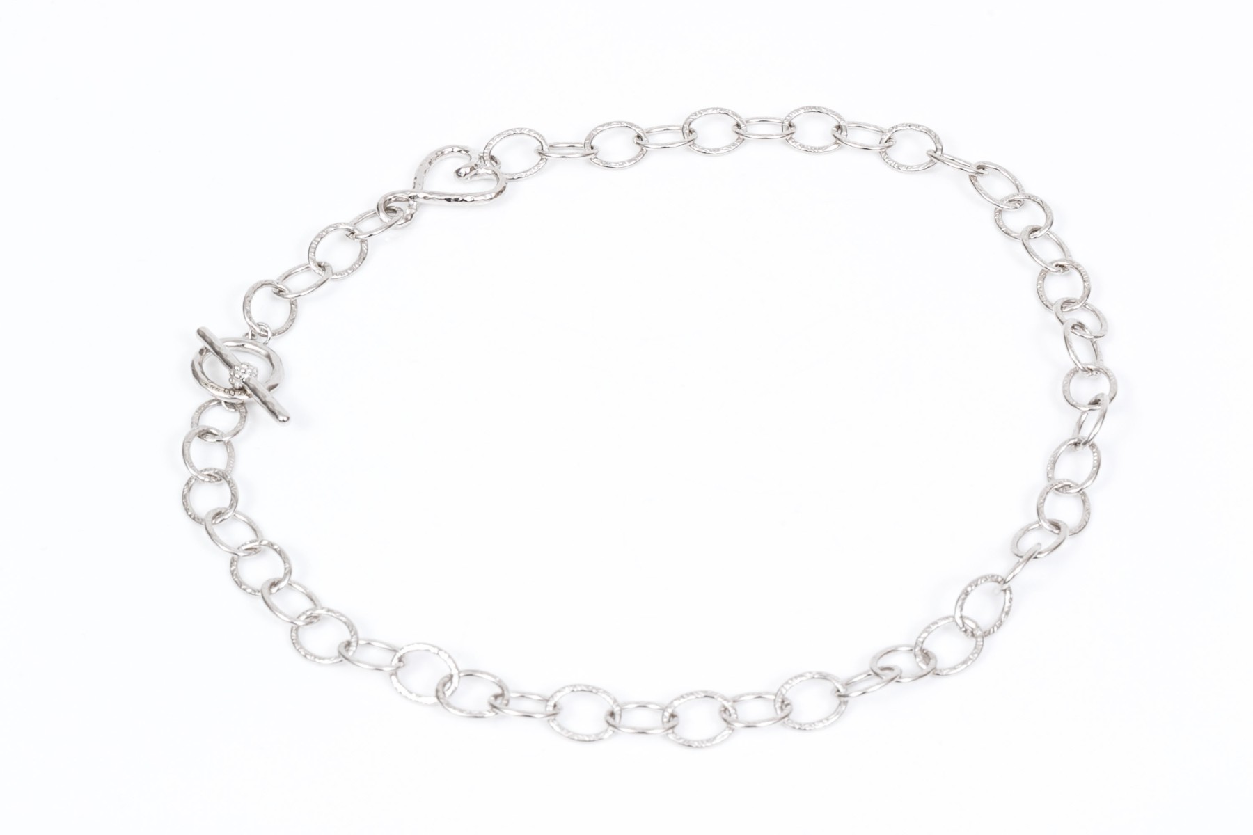 Sterling silver striking chain necklace with single heart for link, toggle clasp