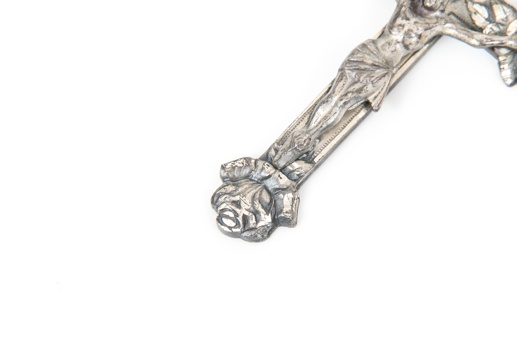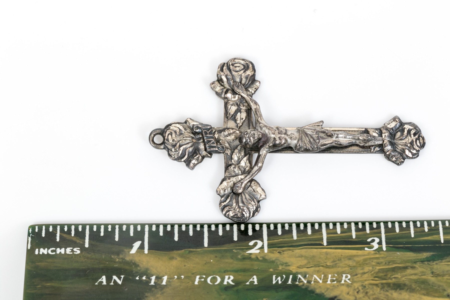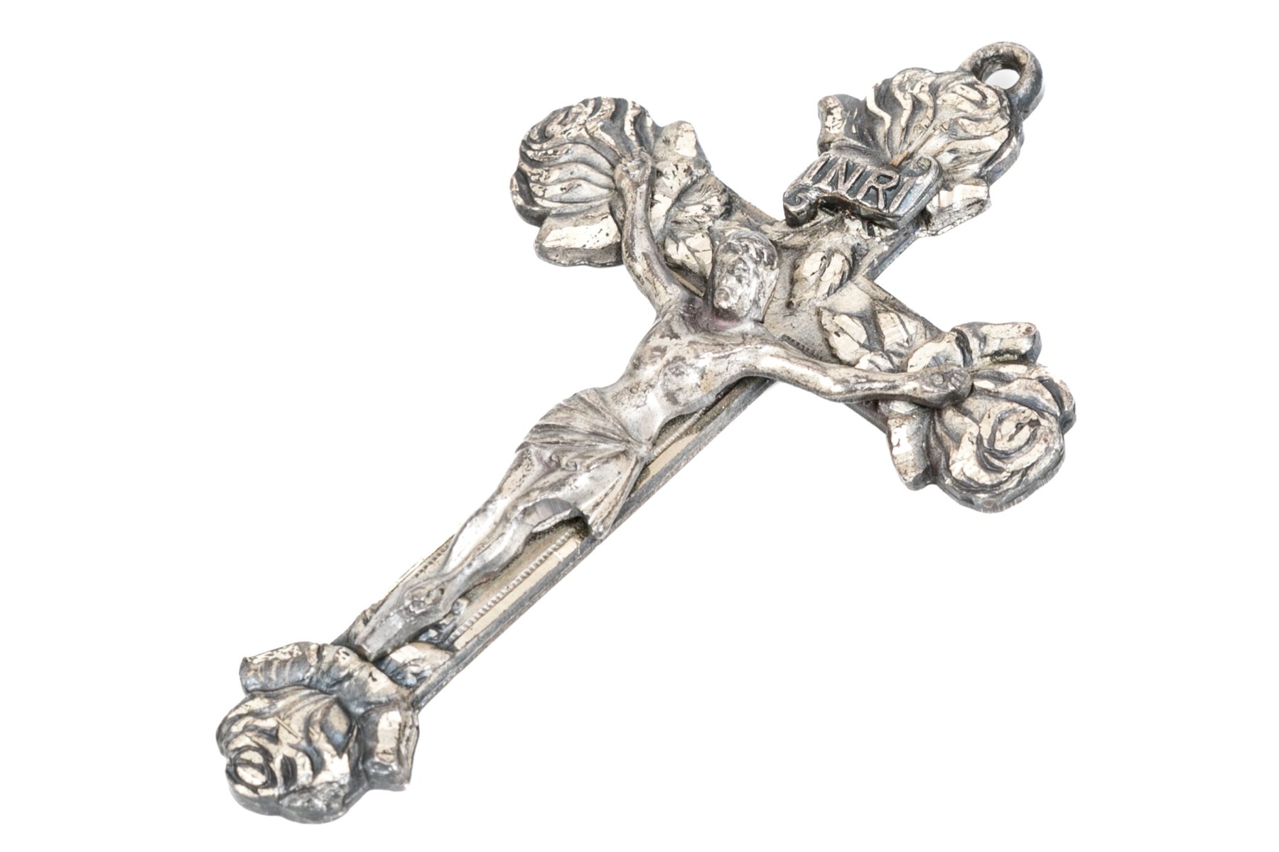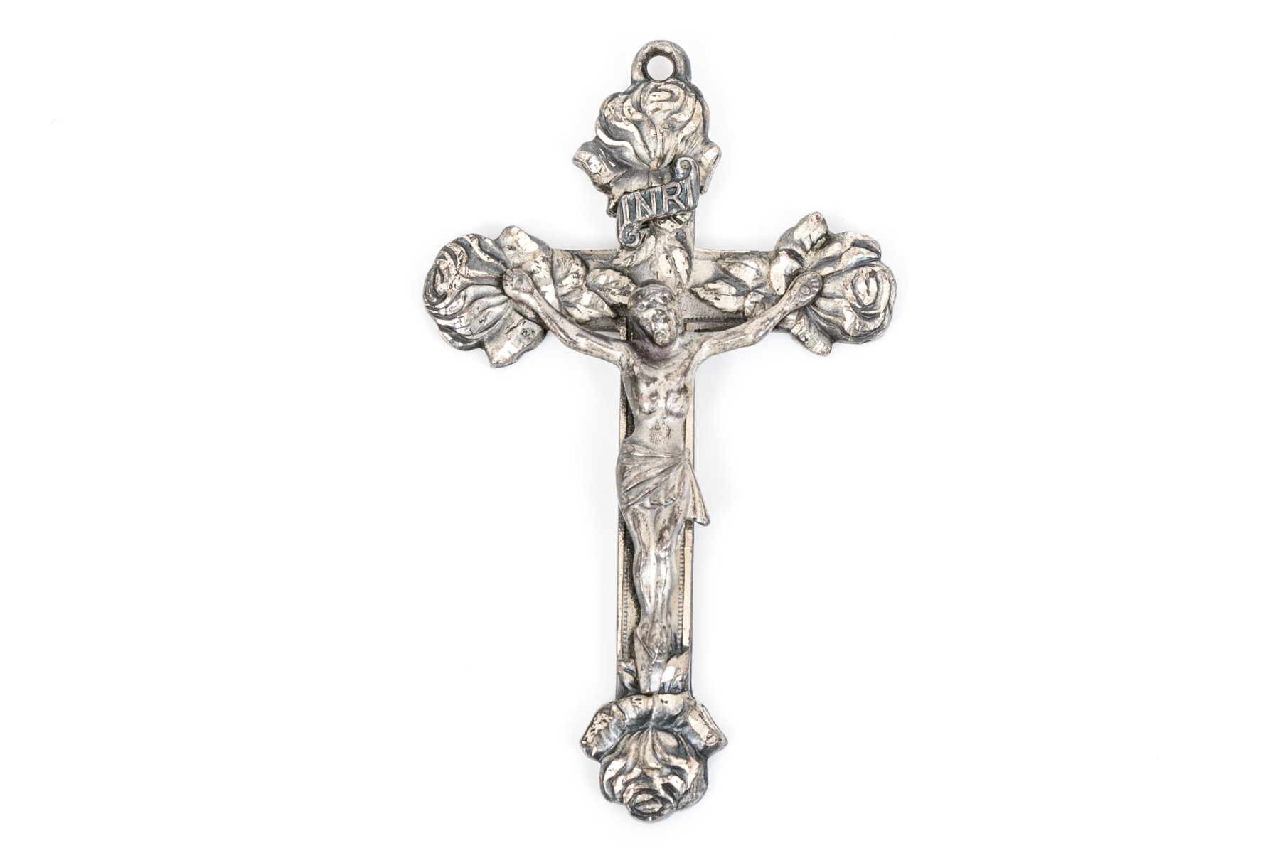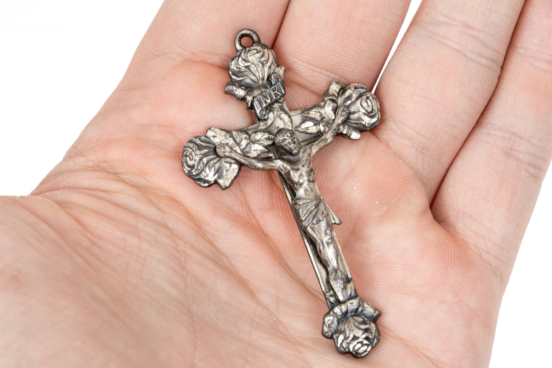 Sterling silver striking large diamond cut crucifix, rose motif ends