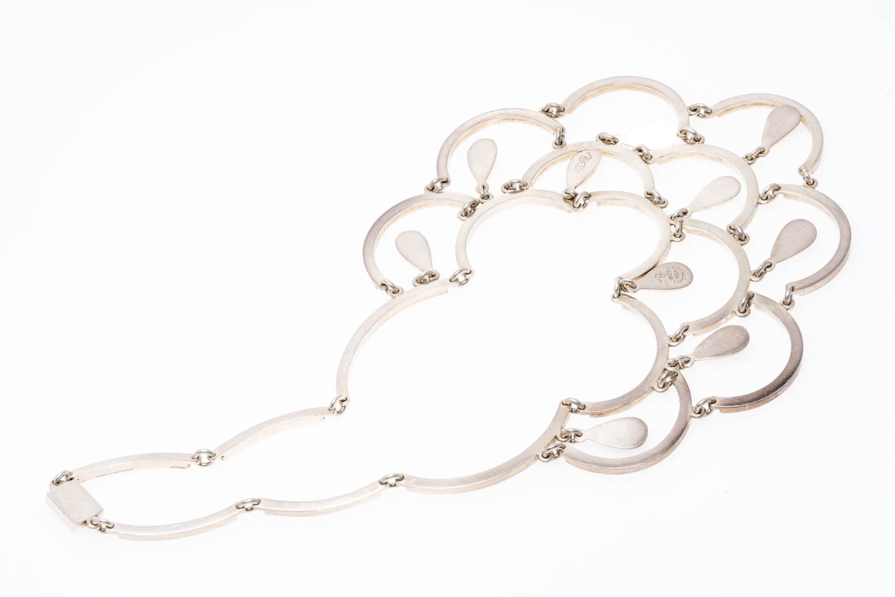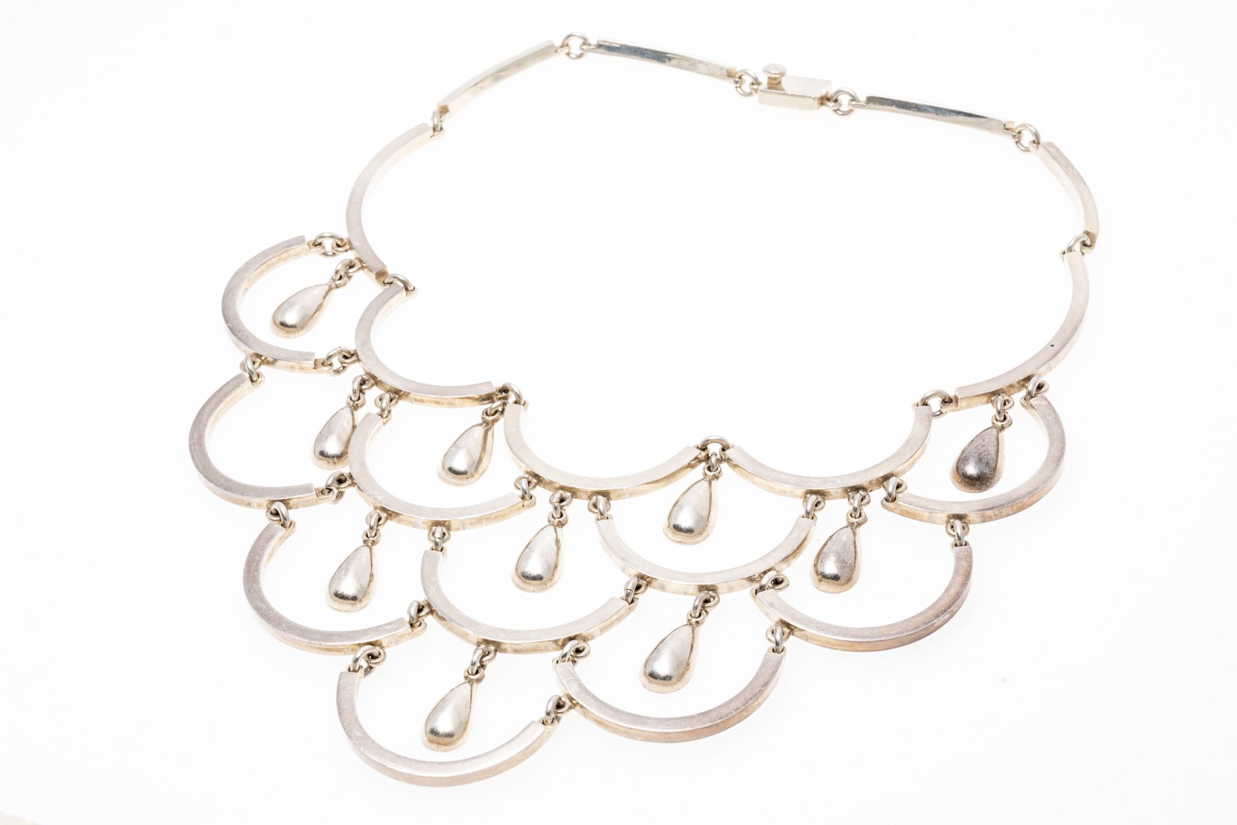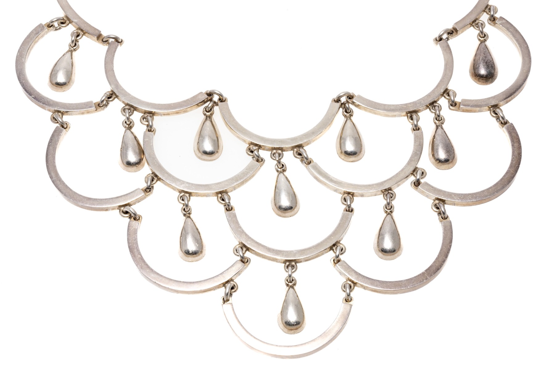 Sterling silver stunning scalloped chandelier style bib choker necklace. The necklace is finished by a box style clasp