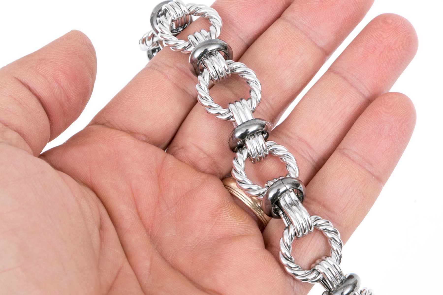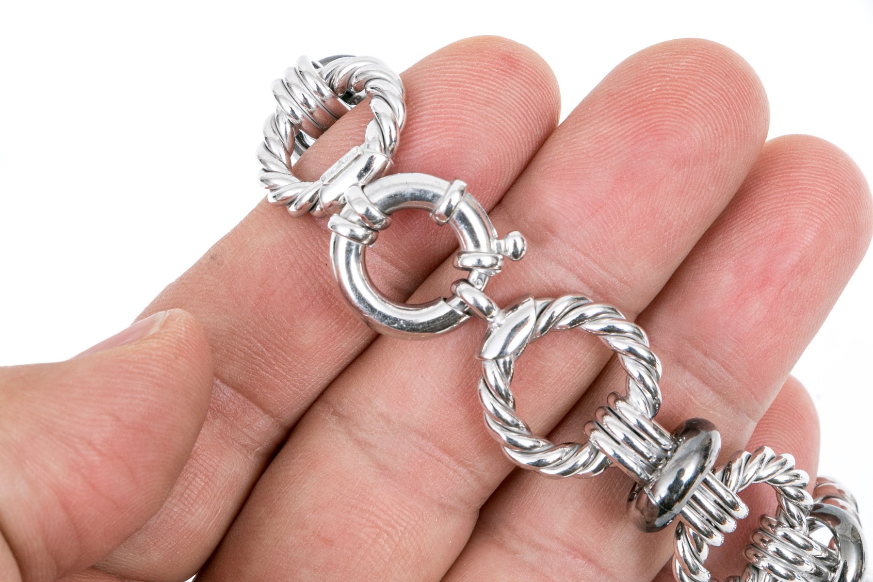 Sterling Silver Twist Chain Bracelet #244047. Black Rock Galleries provides high end estate liquidation services through online estate auctions and a 50,000 sq ft designer showroom. estate liquidator, estate sale, online auction, antiques, fine art, liquidation, clean outs, auction, consignment, interior design, fine jewelry, collectibles, appraisals, estate appraisals, estate services, decor, furniture, furniture consignment, antique center, consignment shop. We offer appraisal services and specialize in fine art, jewelry, antiques and decorative arts. Sell with us. Black Rock Galleries is the tri-state's largest estate liquidator serving New England and the greater New York City area. We are the trusted source for expert appraisals, auction services, estate sales, and consignments. Black Rock Galleries is the east coast's largest and most trusted estate liquidator, with locations in Connecticut, greater Boston, MA and Raleigh, NC, Fairfield, Southport, Apex, TX. We are the best source for expert appraisals, auction services, estate sales and consignments. We have served thousands of families and estates with compassion, professionalism and expertise. BRG works with attorneys, executors, realtors and families to bring the greatest return on personal and estate property in the current market. Our unique combination of services make us the easy choice to get the job done in a timely and stress-free manner. We are with you from the initial consultation to the final clean out. Our house-built online auction software platform offers clients a dynamic approach to liquidating their personal property. This venue is most successful in bringing the best return with the least amount of disruption for our clients. See our services page for a complete description of this offering. Sterling Silver Twist Chain Bracelet #244047