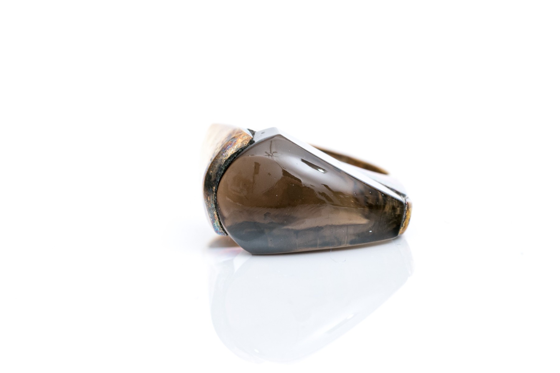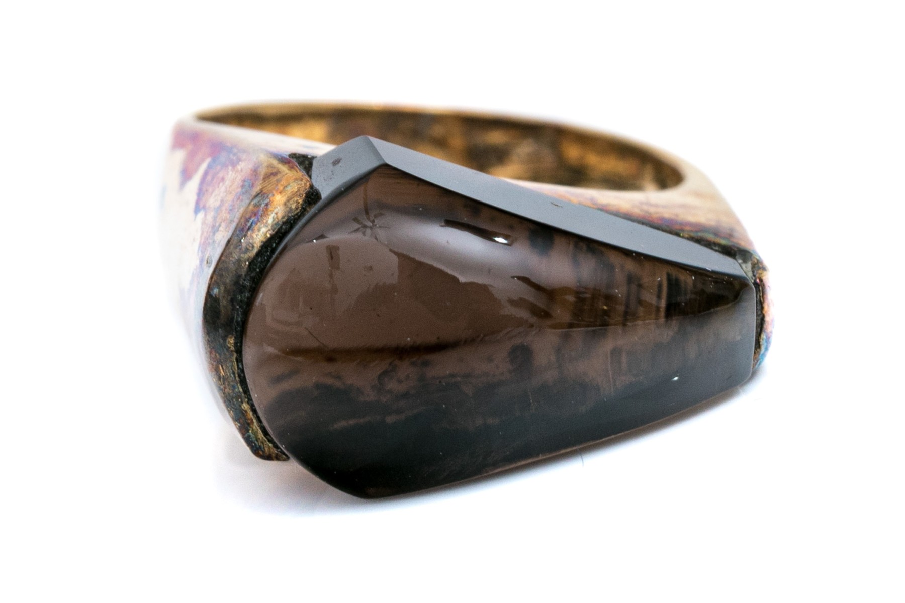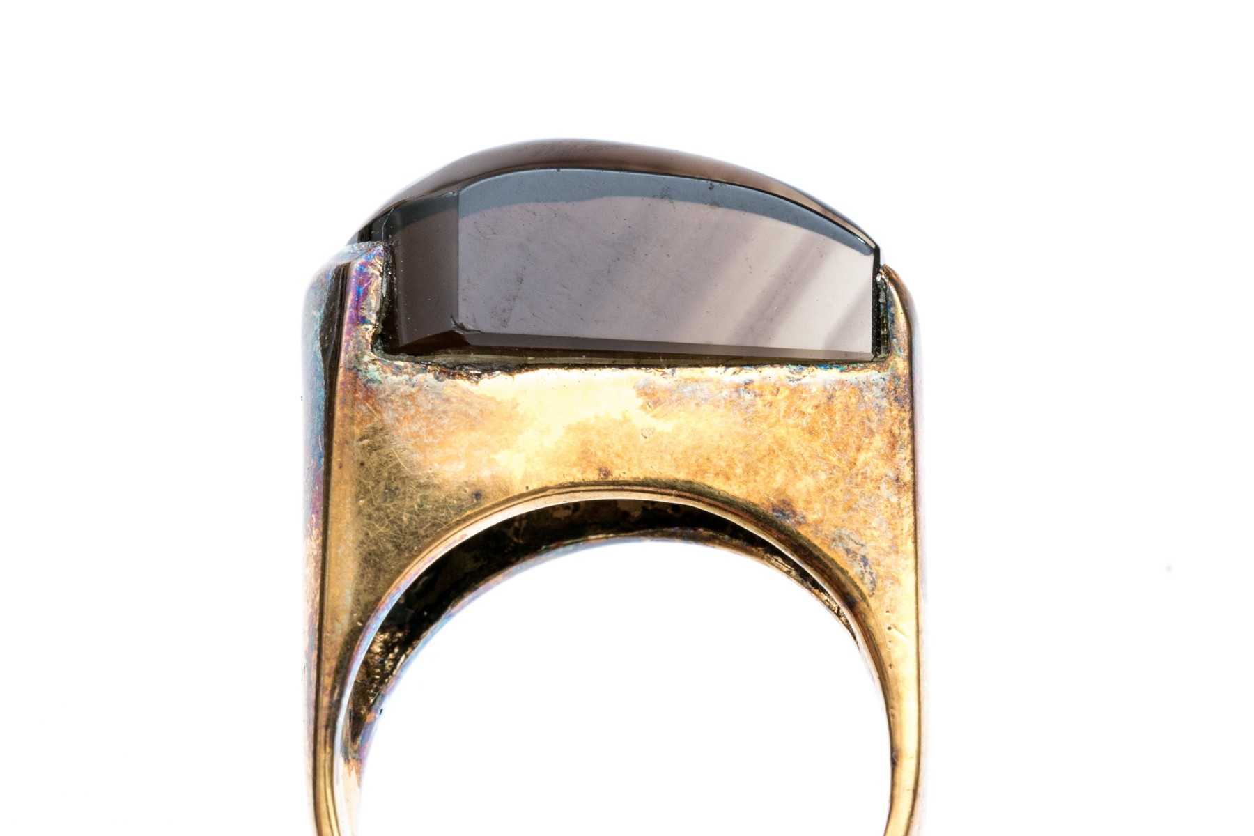 Sterling silver vermeil contemporary fantasy cut smoky quartz ring, size 5