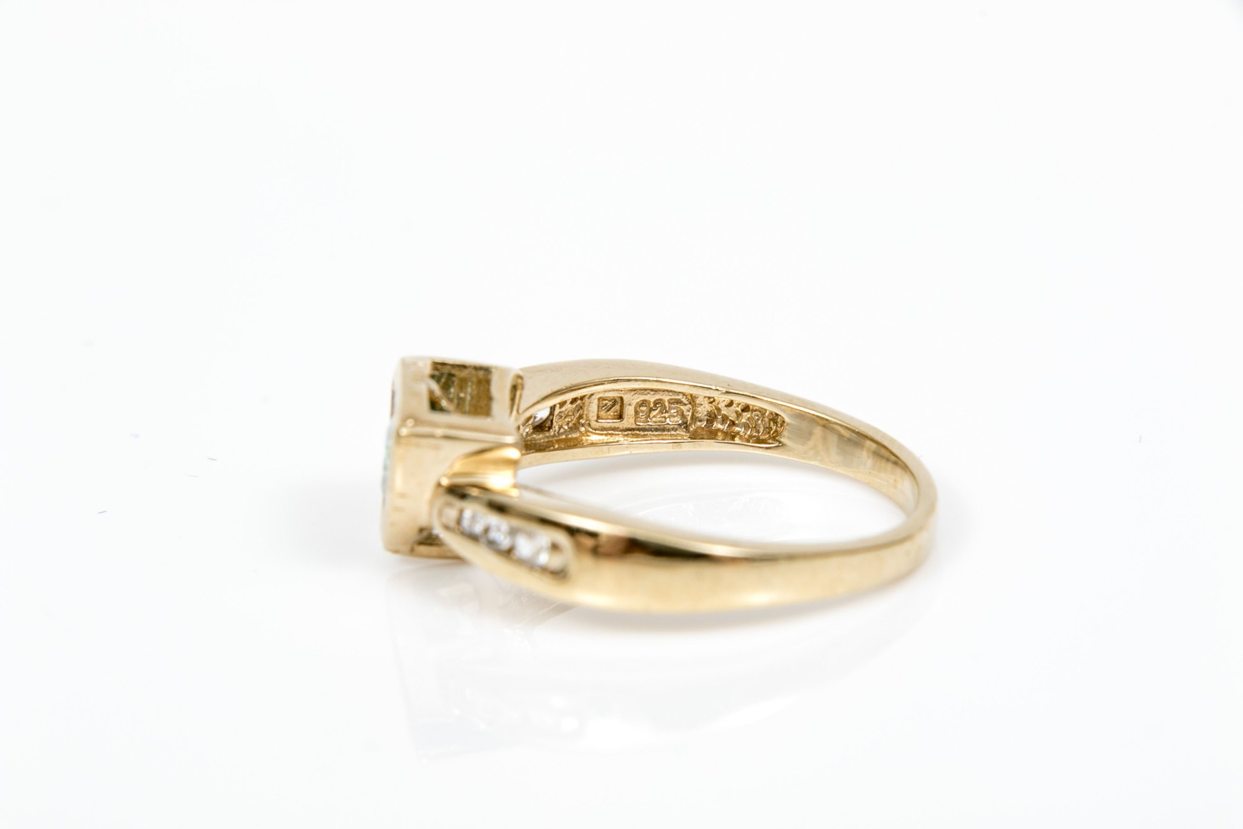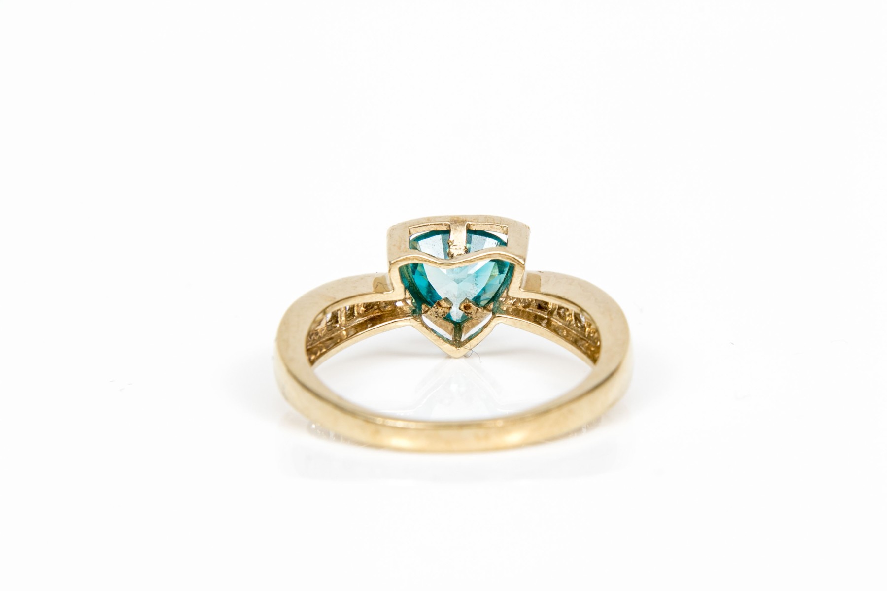 Sterling silver vermeil contemporary trillion blue topaz with white topaz ring, size 6