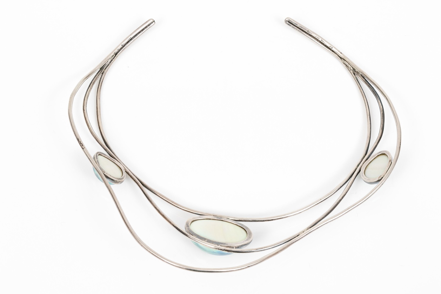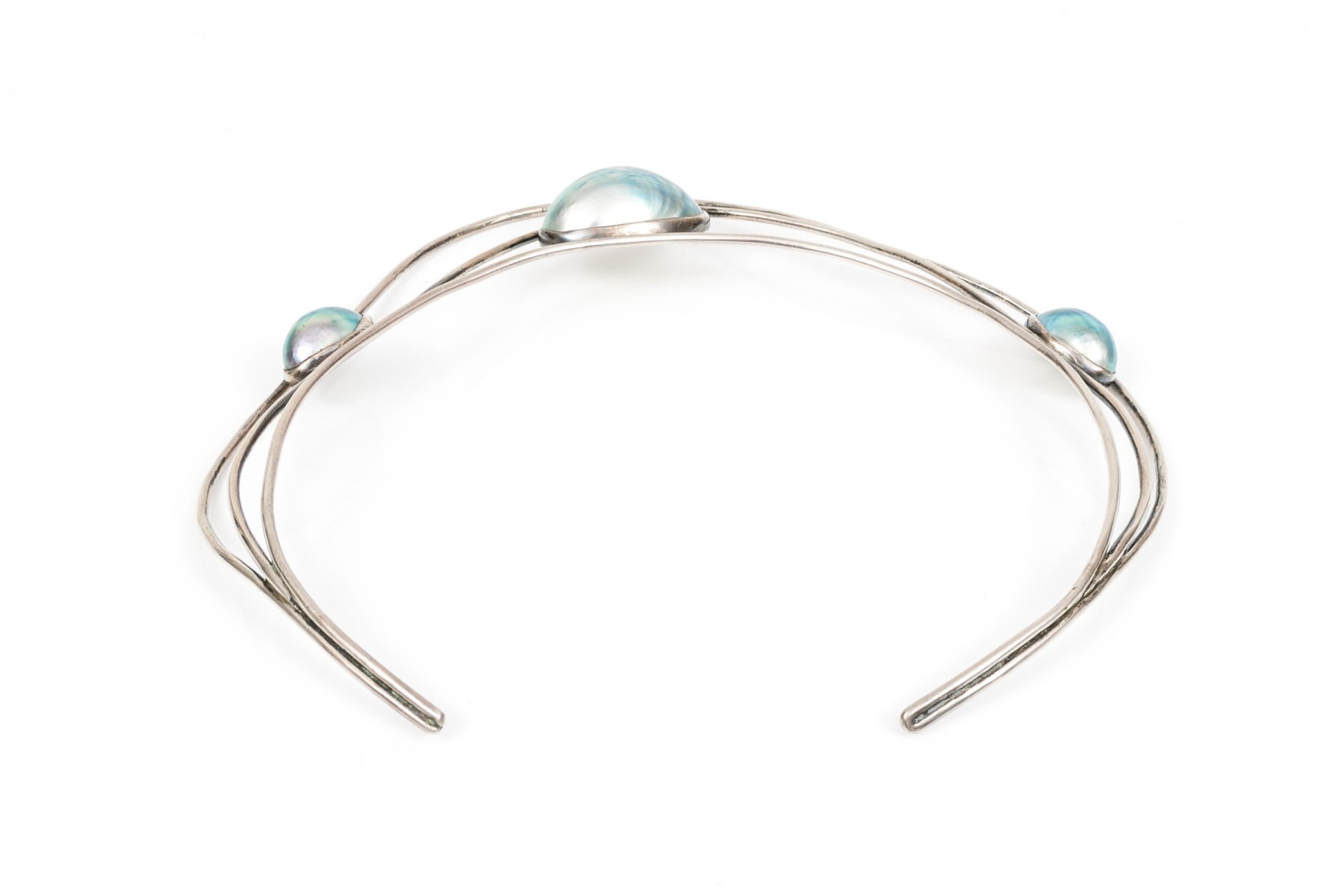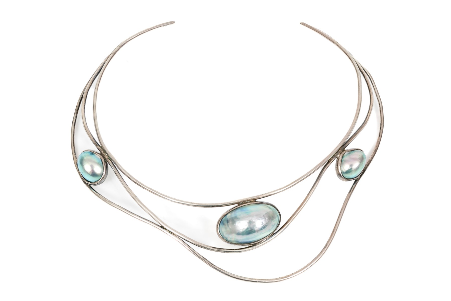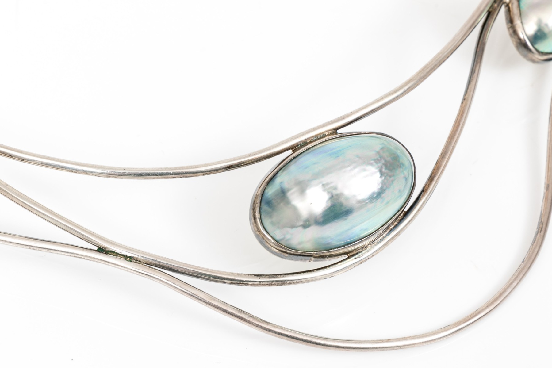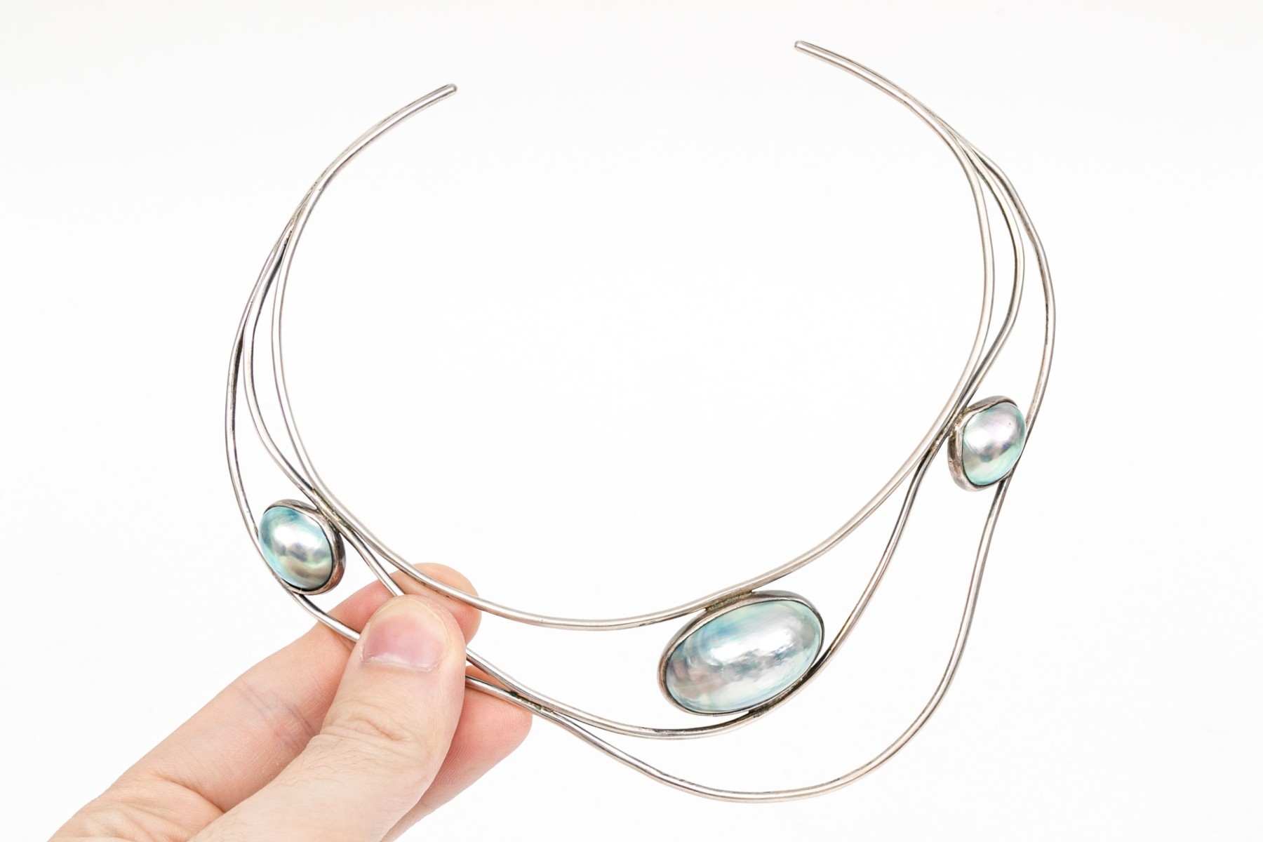 Sterling silver wide fabulous wide cultured grey mabe pearl wire choker