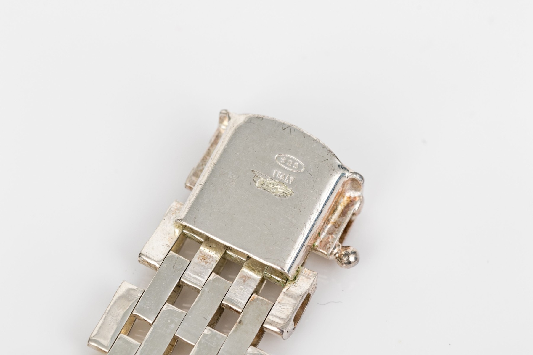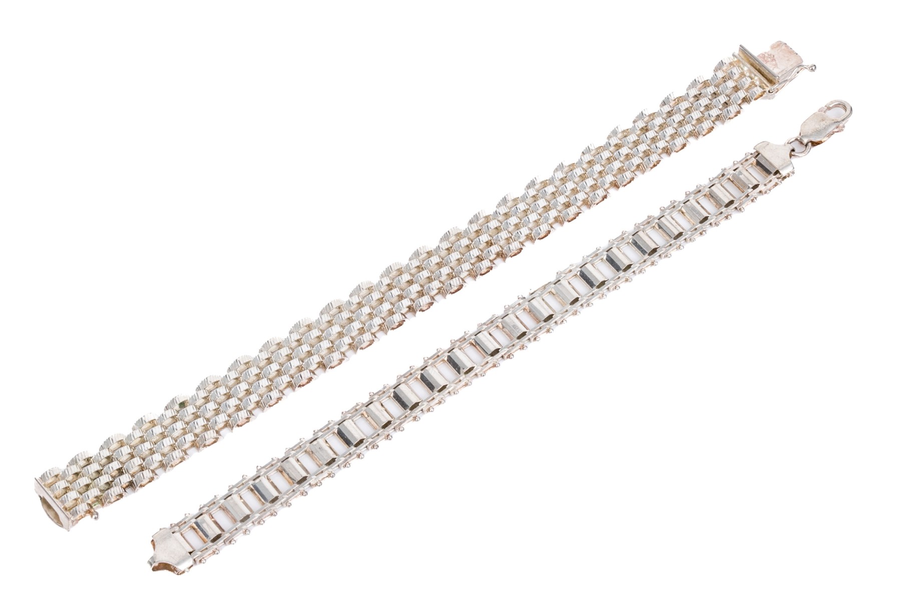 Sterling silver woven bracelet paired with a sterling silver link style bracelet, finished with a hidden box style clasp and a figure eight safety clasp and lobster claw clasp