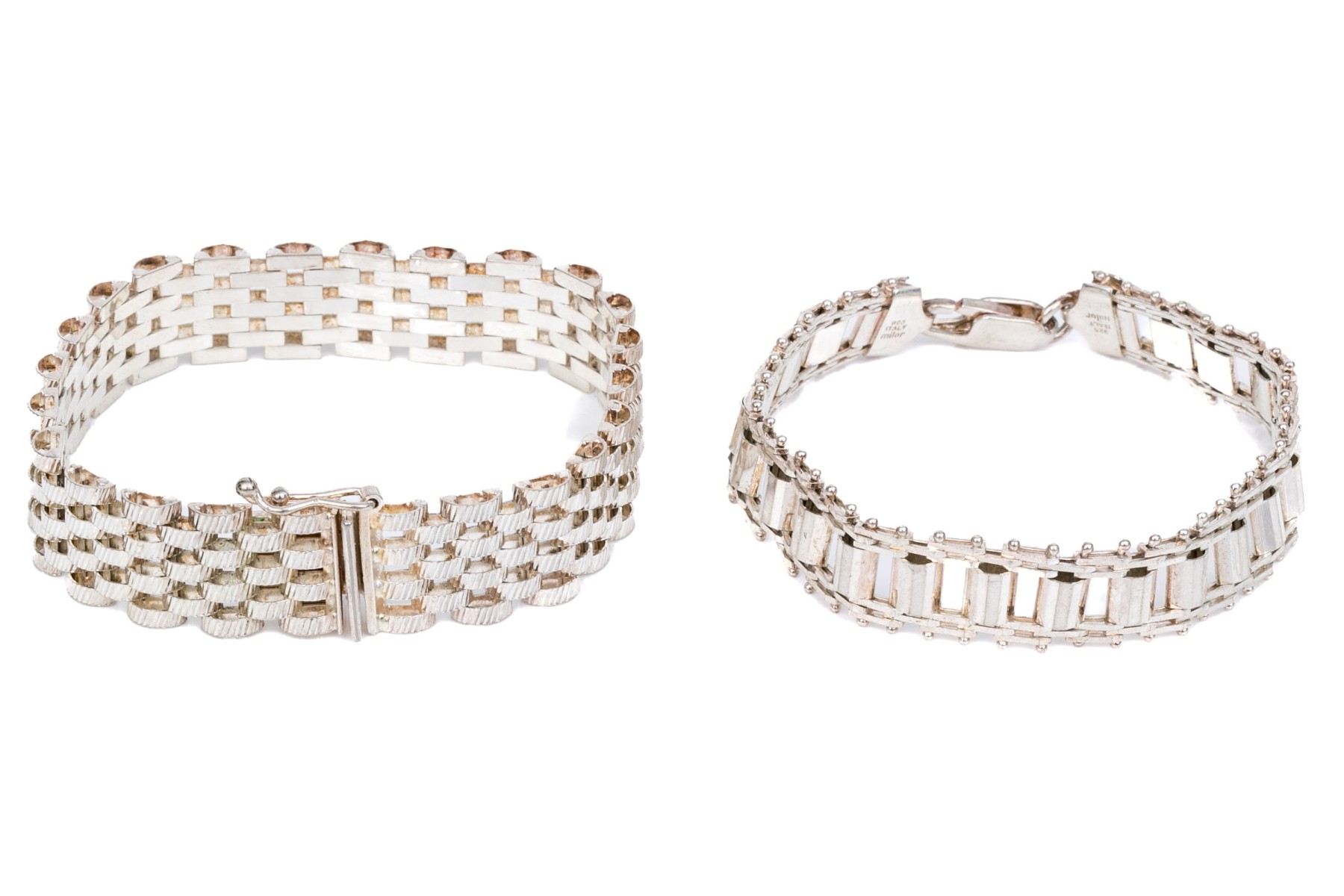 Sterling Silver Woven Bracelet Paired With A Sterling Silver Link Style Bracelet #344902. Black Rock Galleries provides high end estate liquidation services through online estate auctions and a 50,000 sq ft designer showroom. estate liquidator, estate sale, online auction, antiques, fine art, liquidation, clean outs, auction, consignment, interior design, fine jewelry, collectibles, appraisals, estate appraisals, estate services, decor, furniture, furniture consignment, antique center, consignment shop. We offer appraisal services and specialize in fine art, jewelry, antiques and decorative arts. Sell with us. Black Rock Galleries is the tri-state's largest estate liquidator serving New England and the greater New York City area. We are the trusted source for expert appraisals, auction services, estate sales, and consignments. Black Rock Galleries is the east coast's largest and most trusted estate liquidator, with locations in Connecticut, greater Boston, MA and Raleigh, NC, Fairfield, Southport, Apex, TX. We are the best source for expert appraisals, auction services, estate sales and consignments. We have served thousands of families and estates with compassion, professionalism and expertise. BRG works with attorneys, executors, realtors and families to bring the greatest return on personal and estate property in the current market. Our unique combination of services make us the easy choice to get the job done in a timely and stress-free manner. We are with you from the initial consultation to the final clean out. Our house-built online auction software platform offers clients a dynamic approach to liquidating their personal property. This venue is most successful in bringing the best return with the least amount of disruption for our clients. See our services page for a complete description of this offering. Sterling Silver Woven Bracelet Paired With A Sterling Silver Link Style Bracelet #344902