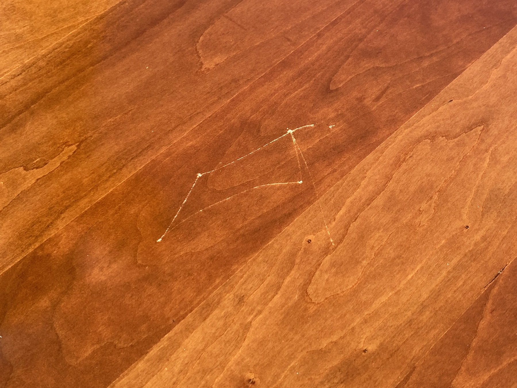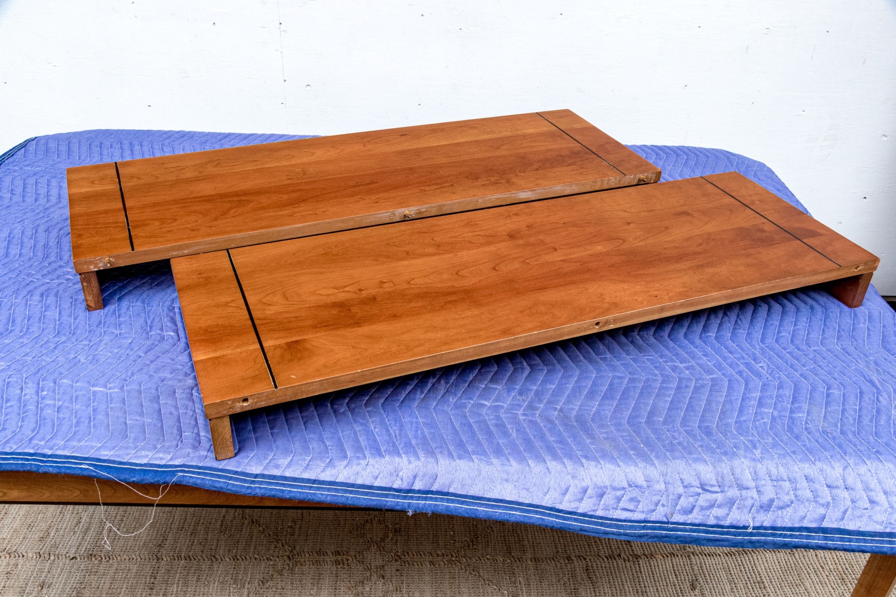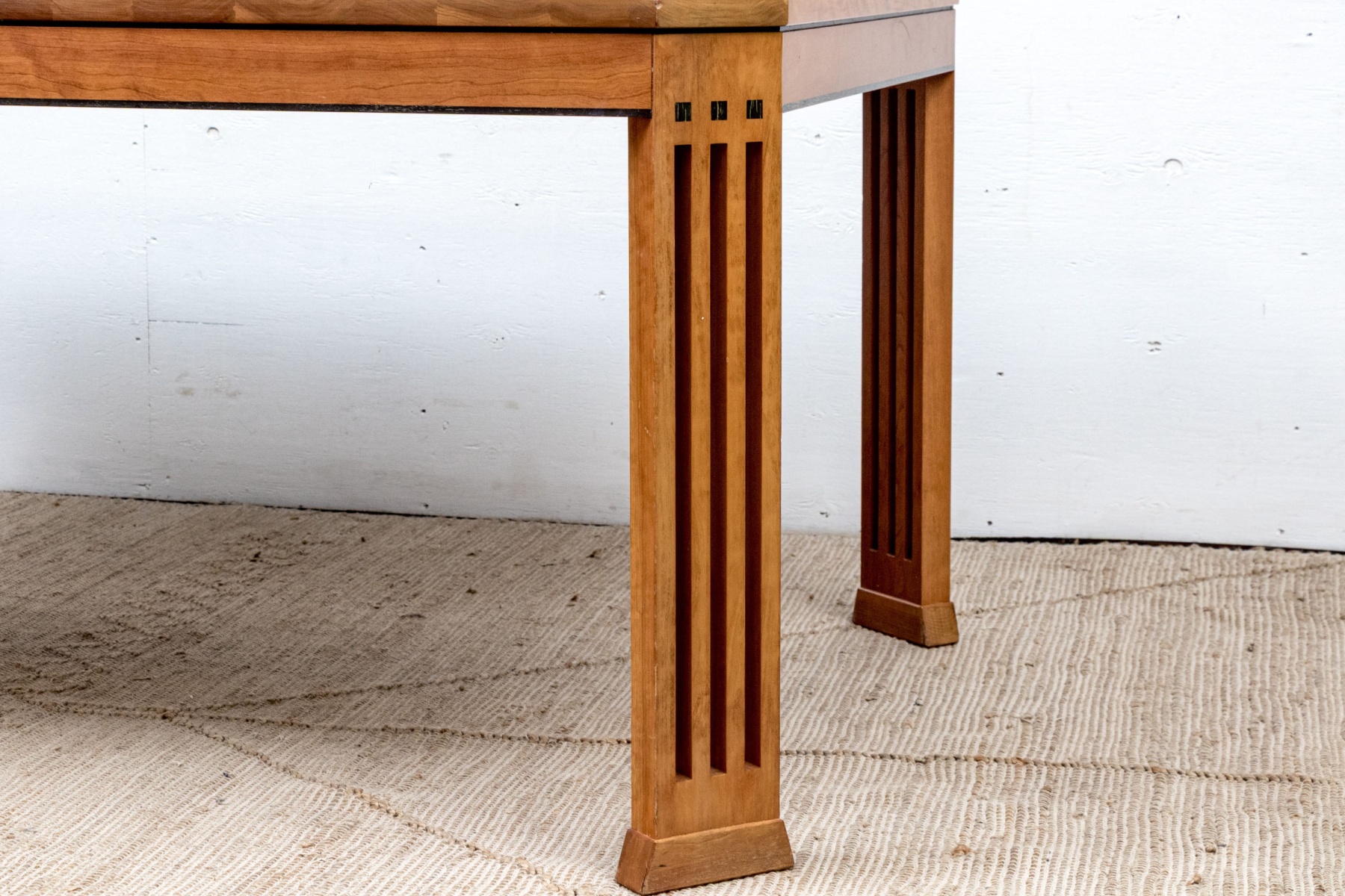 There is a fracture to one corner of the end of the table which can be seen but is completely stable. There is an area near one corner of the table top that has craquelure to the lacquer finish. Additional scuffs to the corners, trim and a scratch to one leg.