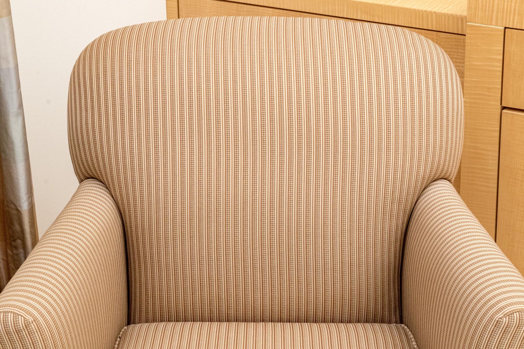 Presents well overall. A minor stain under the cushion that does not affect the outward appearance.