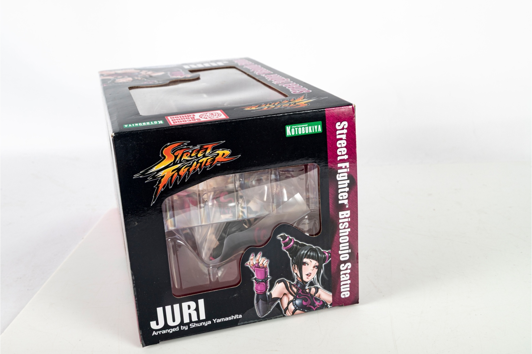 Dynamic Juri Han statue from Street Fighter, produced by Kotobukiya as part of the Bishoujo series and designed by renowned Japanese illustrator Shunya Yamashita. This “Second Round Edition” release showcases Juri in her iconic pose, highlighting her fierce energy and signature attitude.