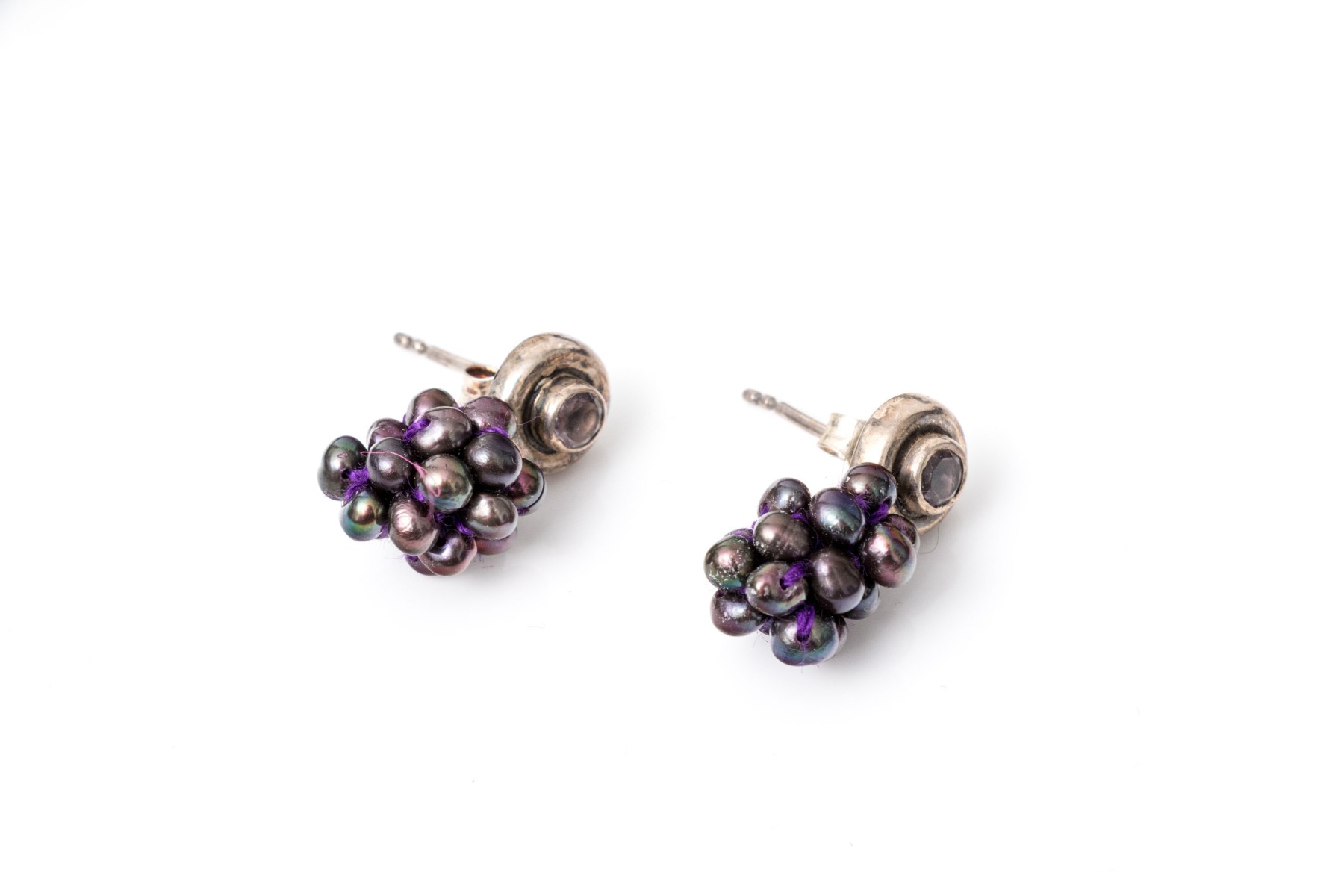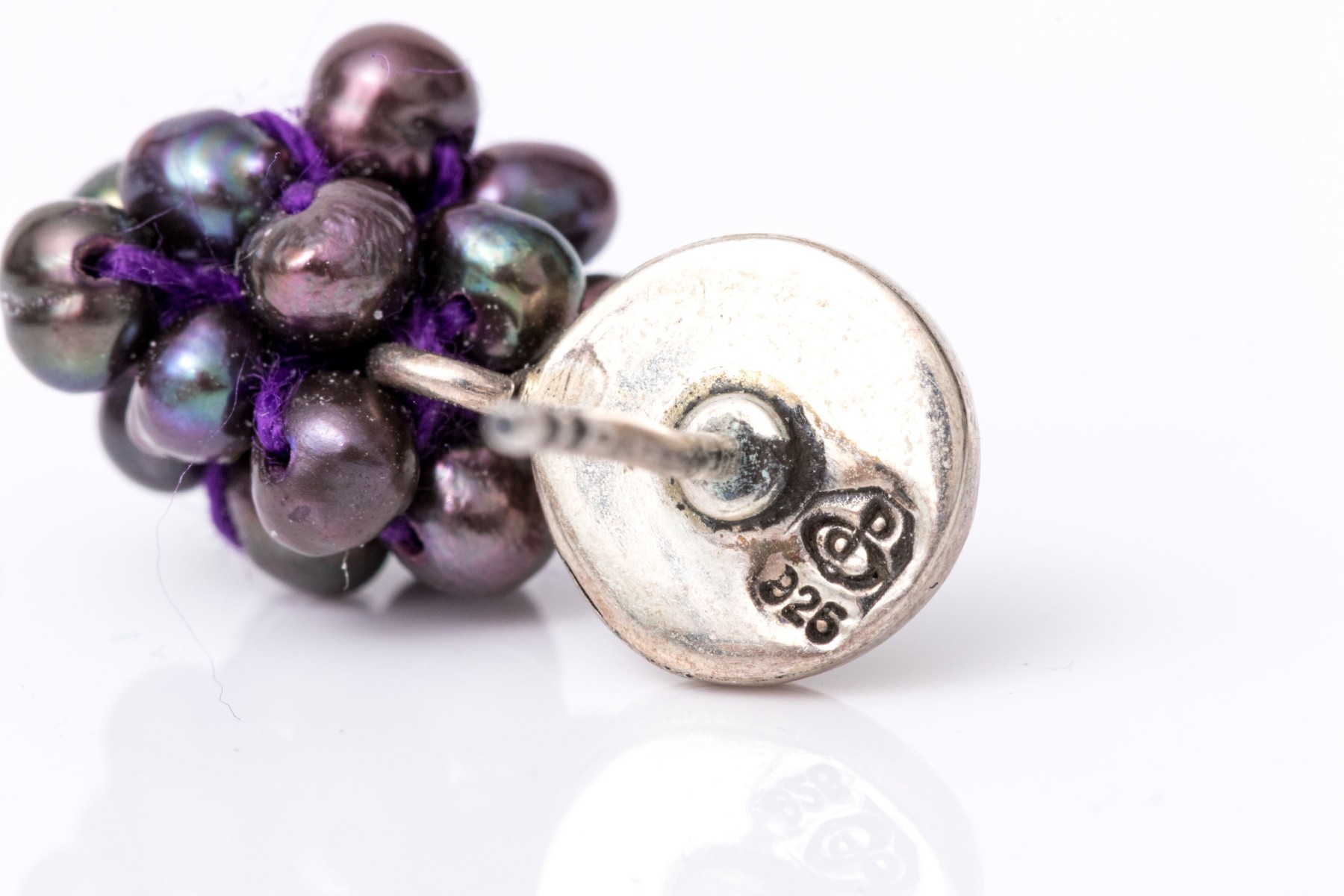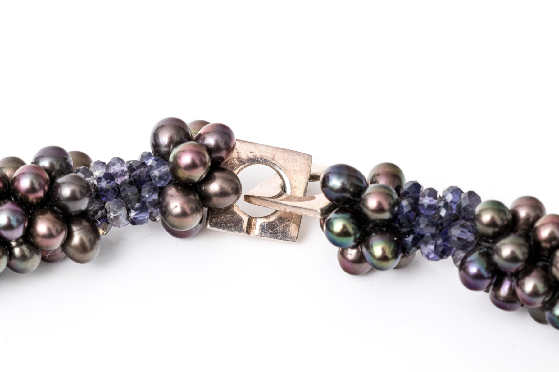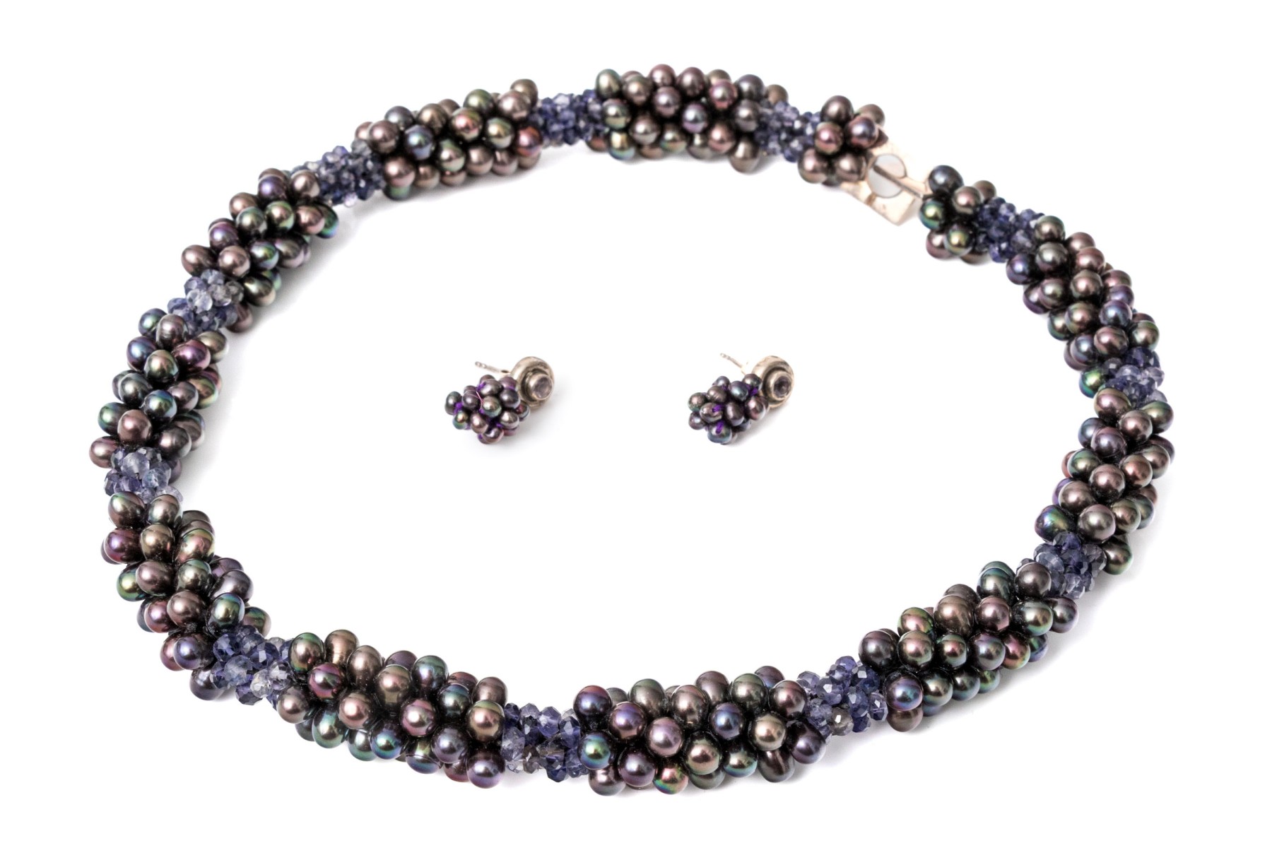 Striking black cultured freshwater pearl torsade with matching sterling silver earrings, post and clutch style
