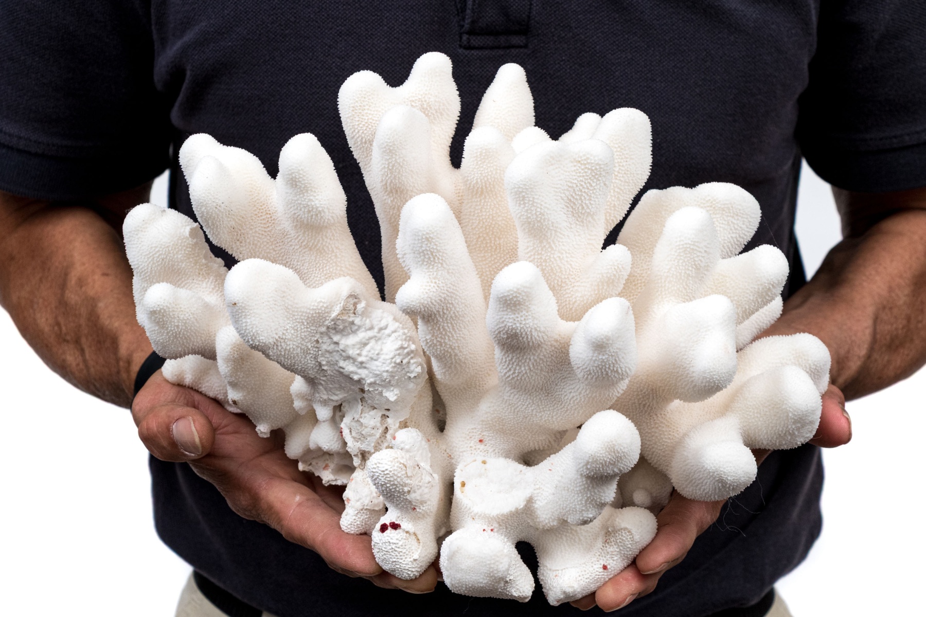 An impressive cluster of coral with a striking formation of lobed and finely textured undulating branches and deep valleys emerging from the center. The specimen displays with great style and naturalistic presence.