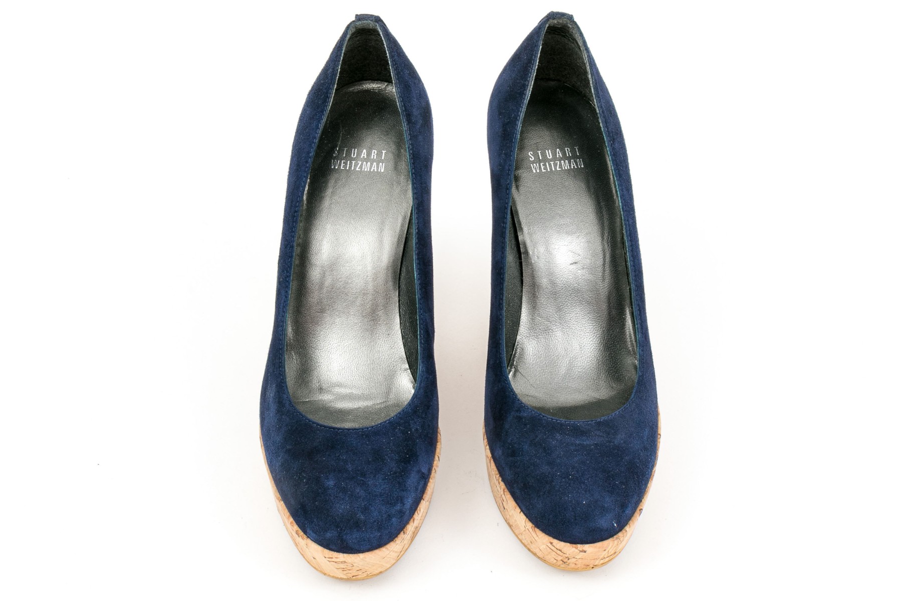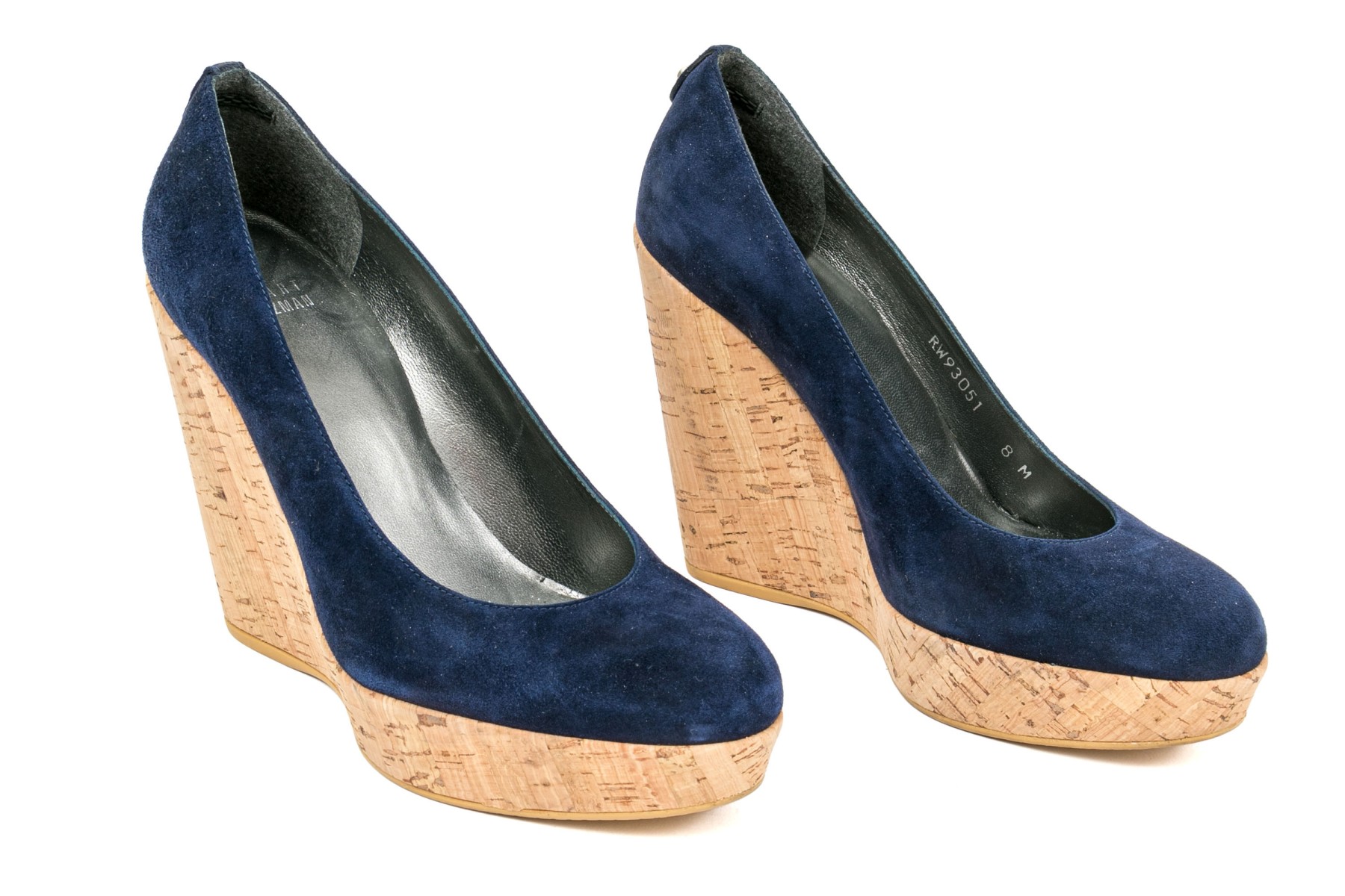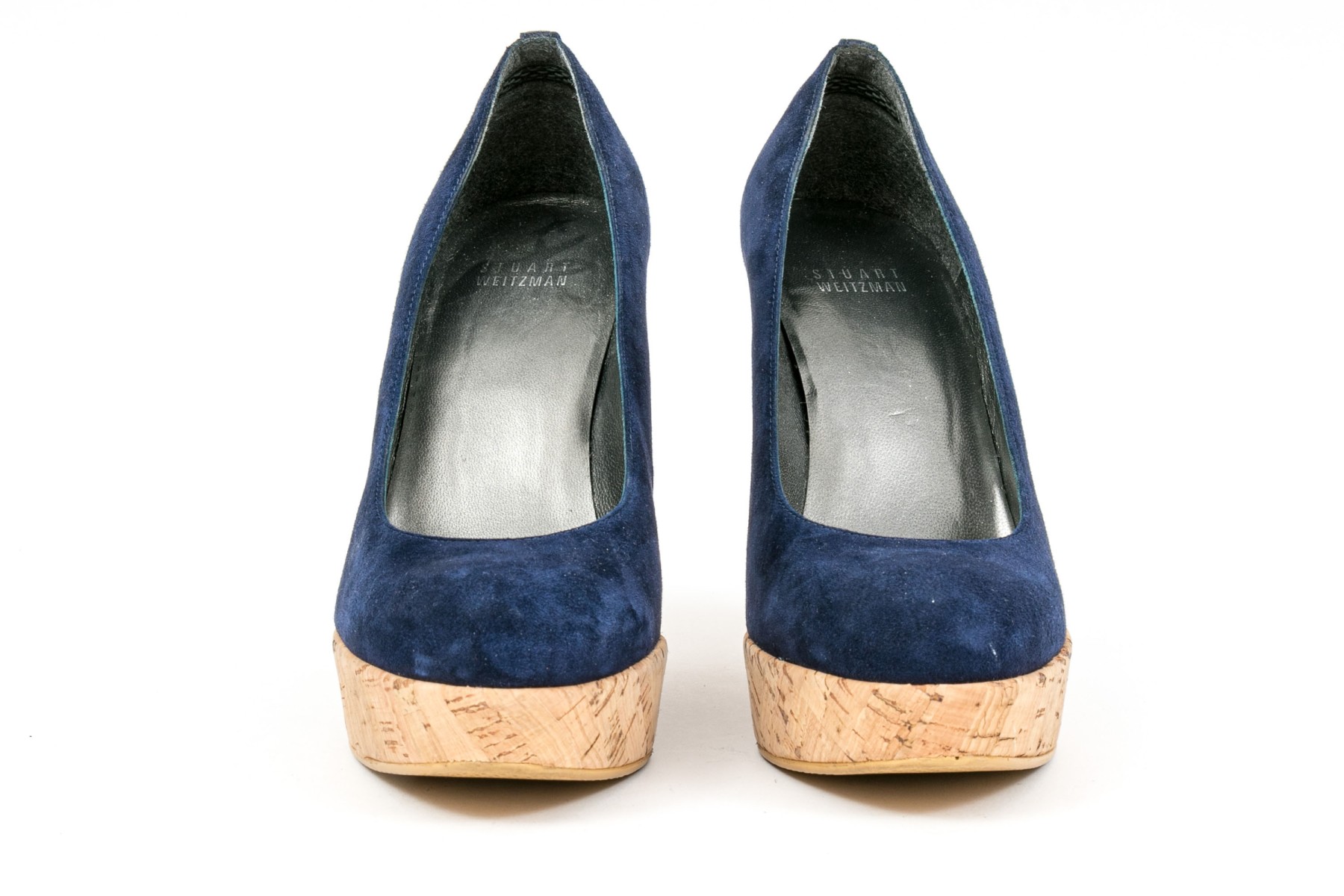 Stuart Weitzman beautiful blue suede platform cork wedge, size 8 M