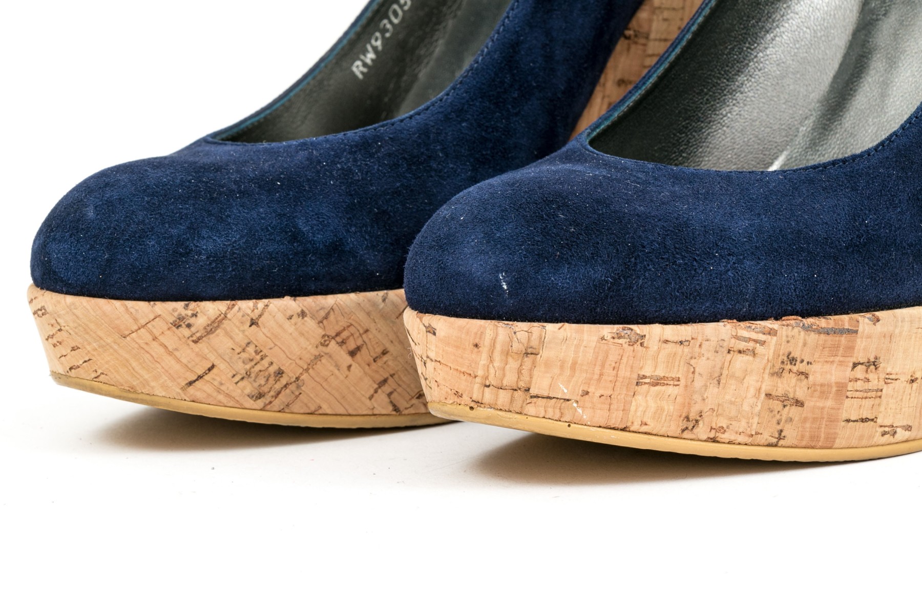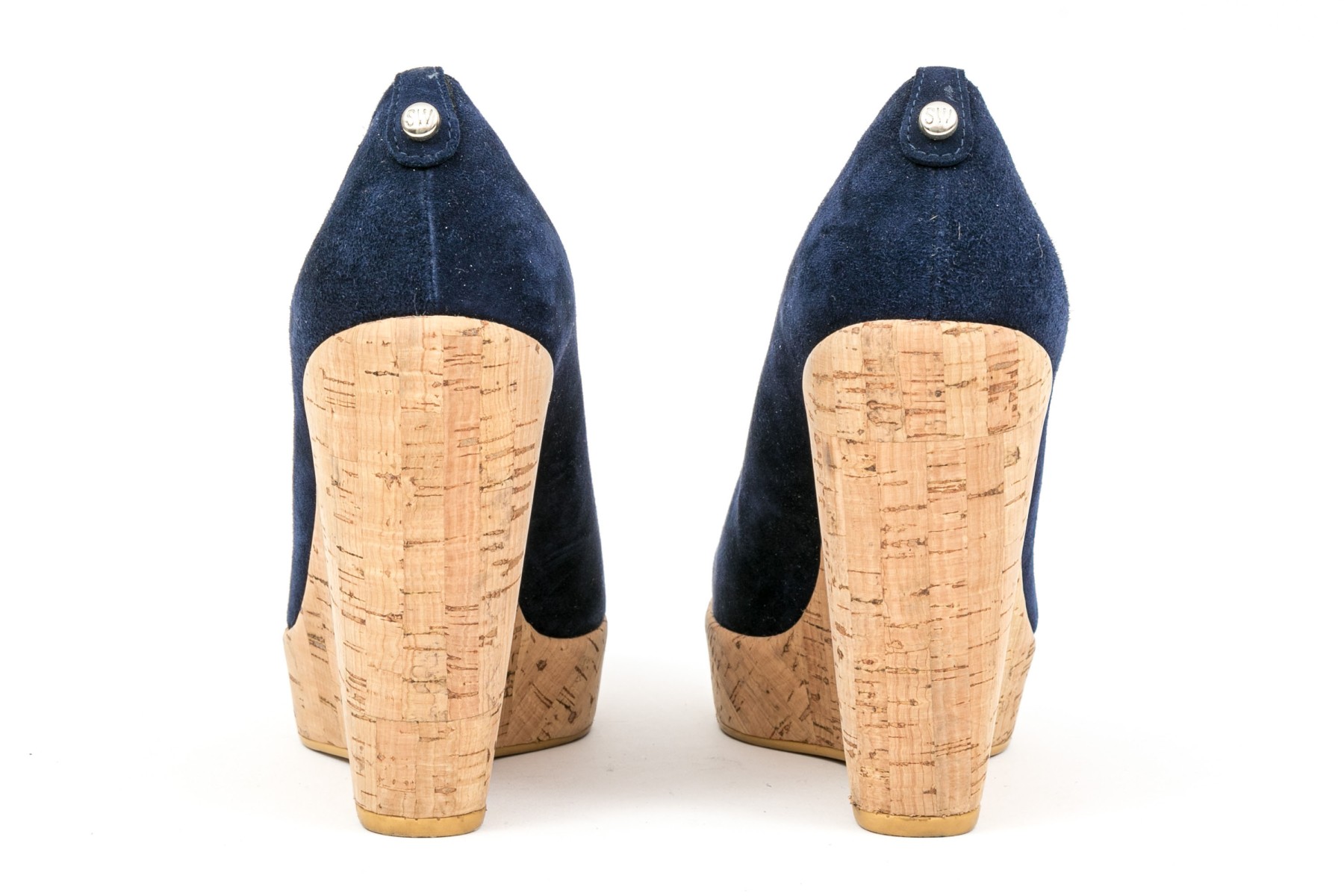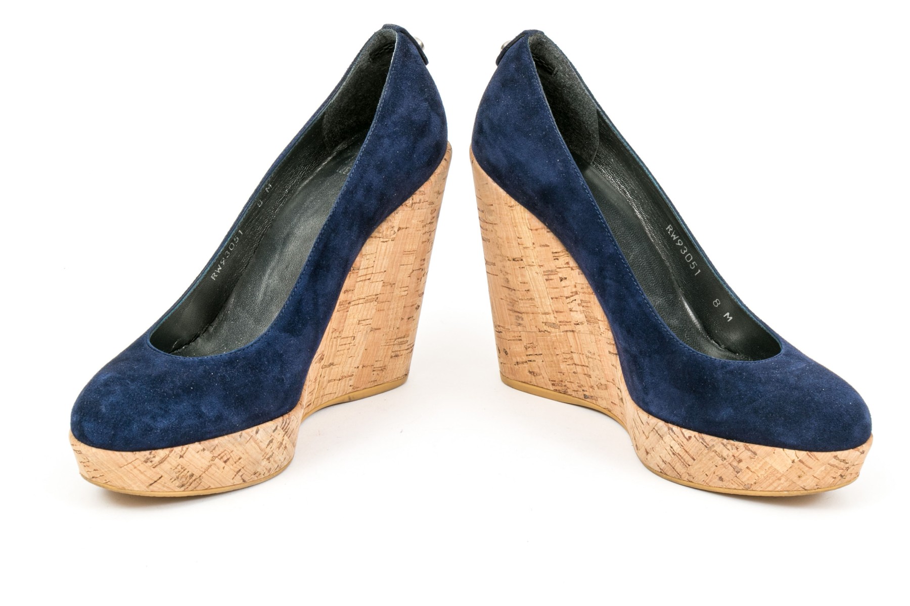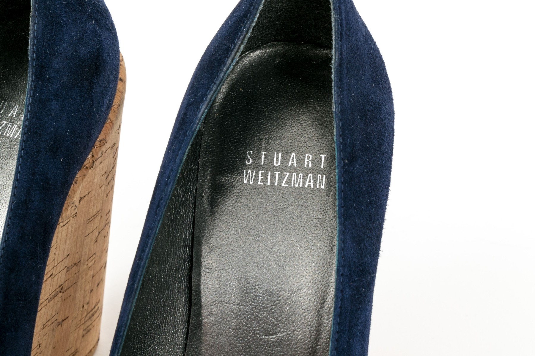 Stuart Weitzman beautiful blue suede platform cork wedge, size 8 M